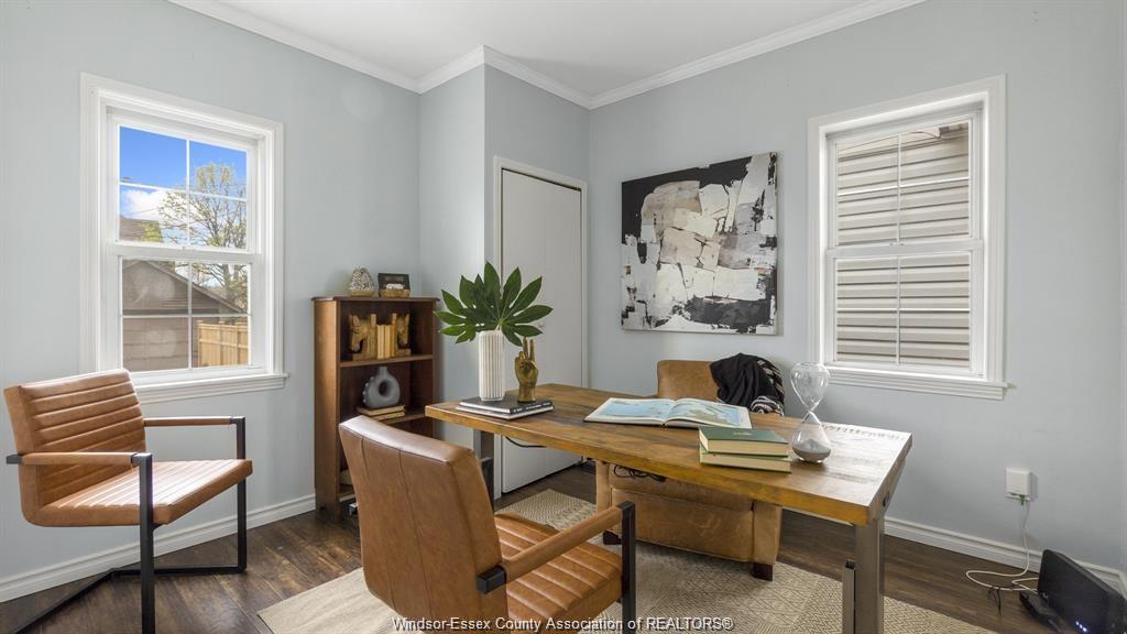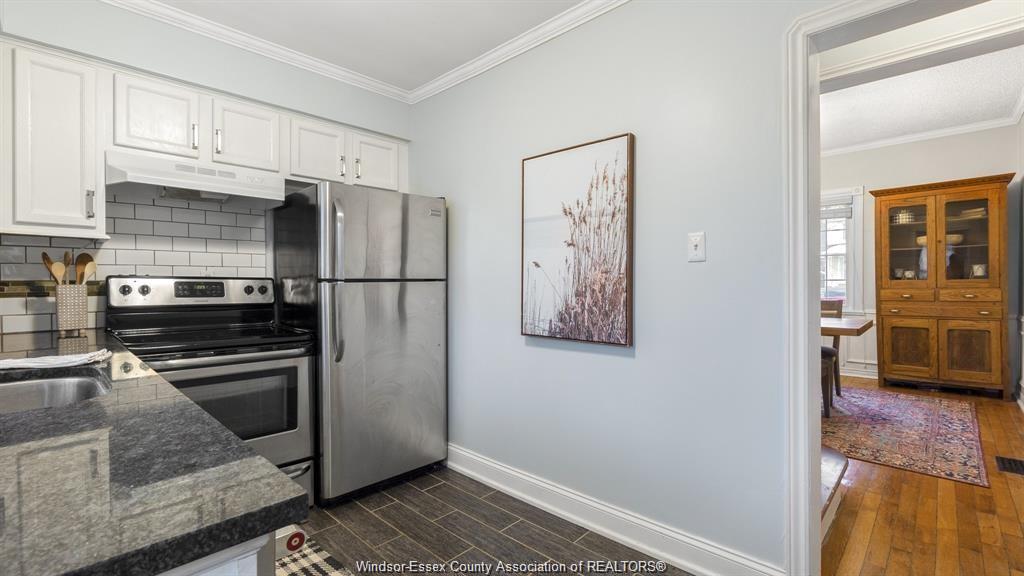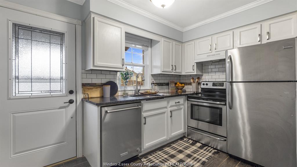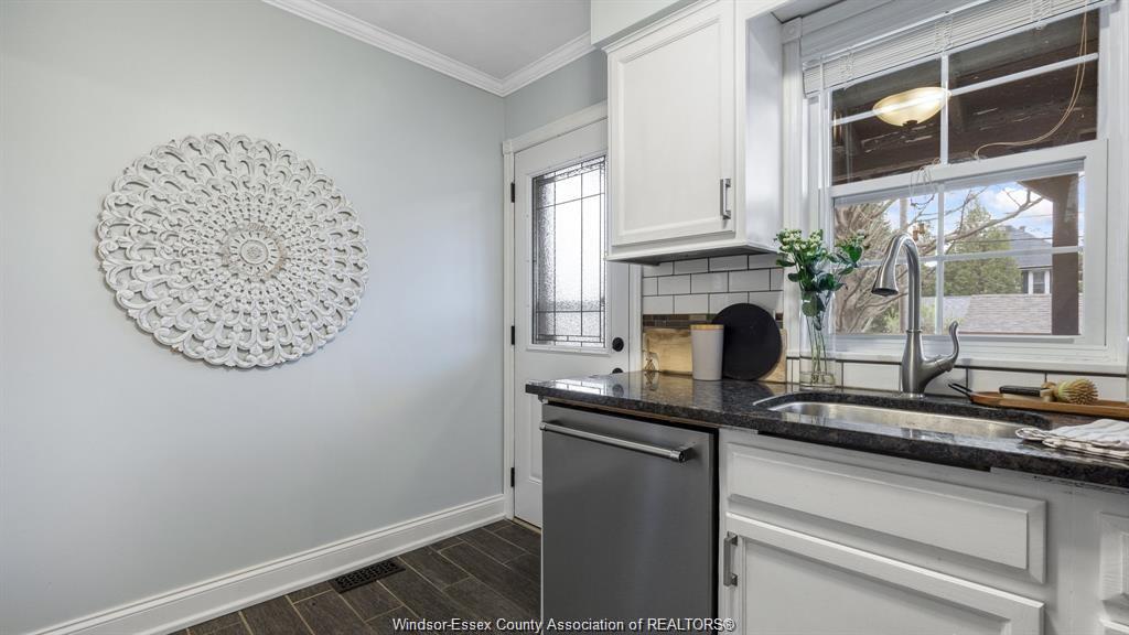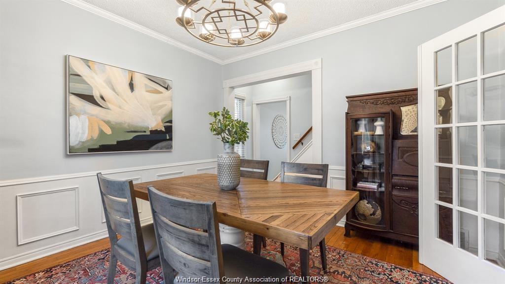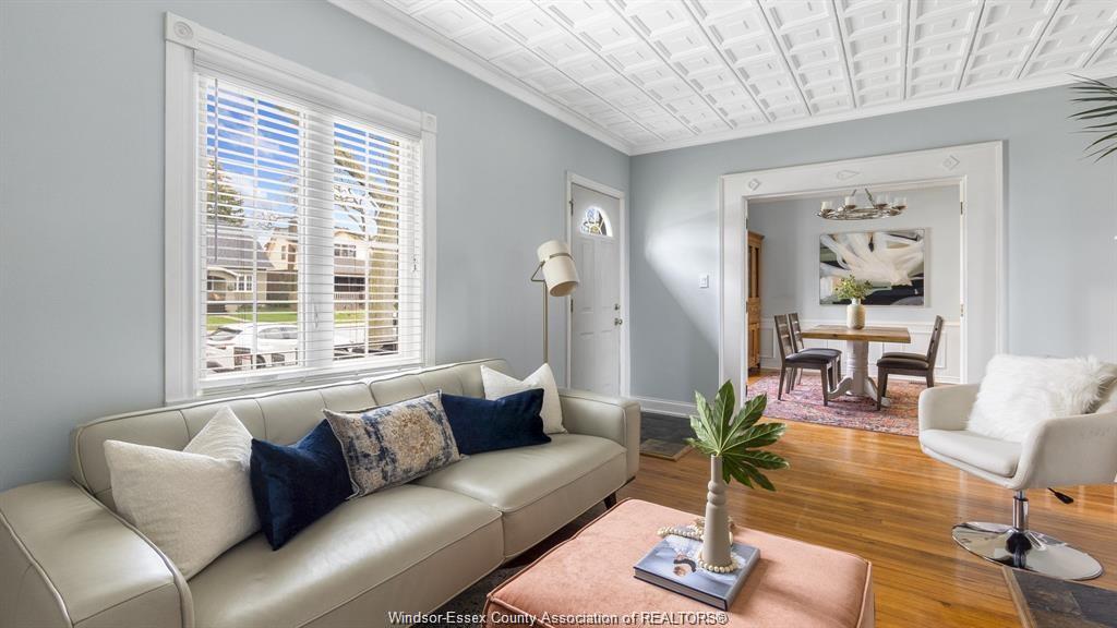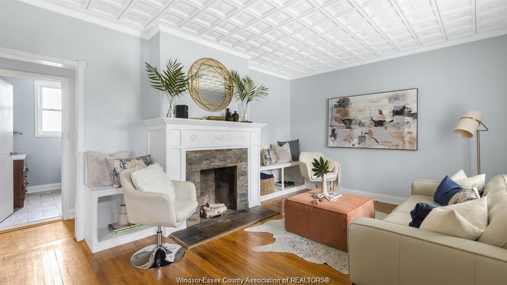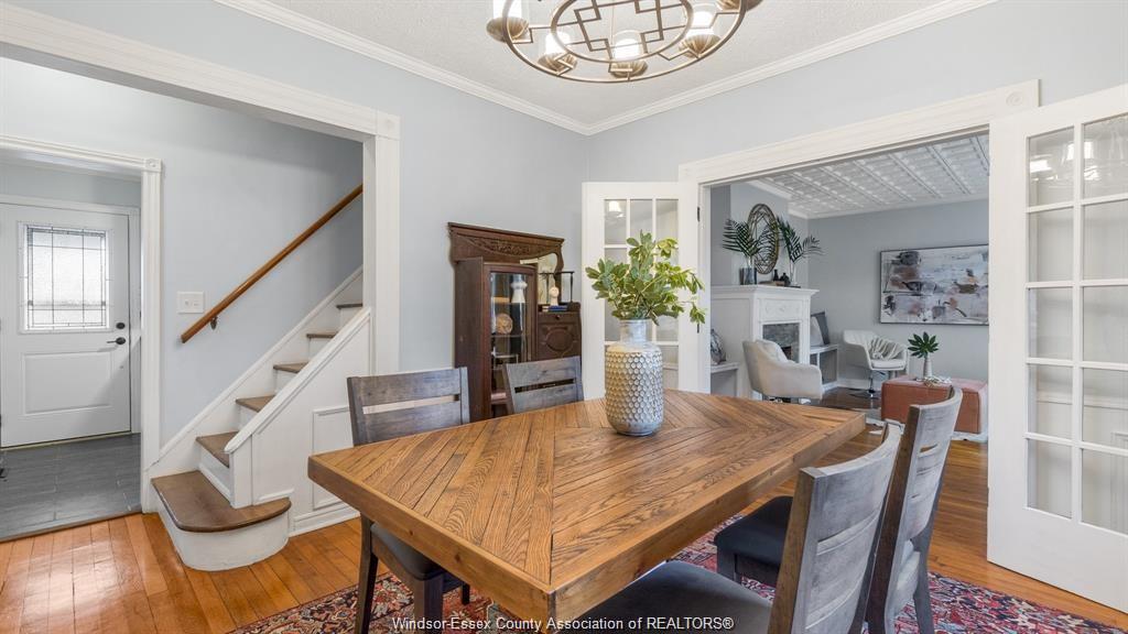 This adorable walkerville home will "wow" you with its perfect blend of modern upgrades and preserved charm. Enter into your cozy living room with real wood fireplace, built in shelves, coffered ceiling, and large windows. Host dinners in your formal dining room with french doors, wainscoting, and elegant lighting. Fresh modern kitchen includes granite counter tops, tile back splash, and stainless steel appliances. Large updated 4pc bath is conveniently located on the main floor along side one of the bedrooms. Upper floor features two large bedrooms with window alcoves and impressive closet space. Rear yard parking on a very quiet residential street in olde walkerville.