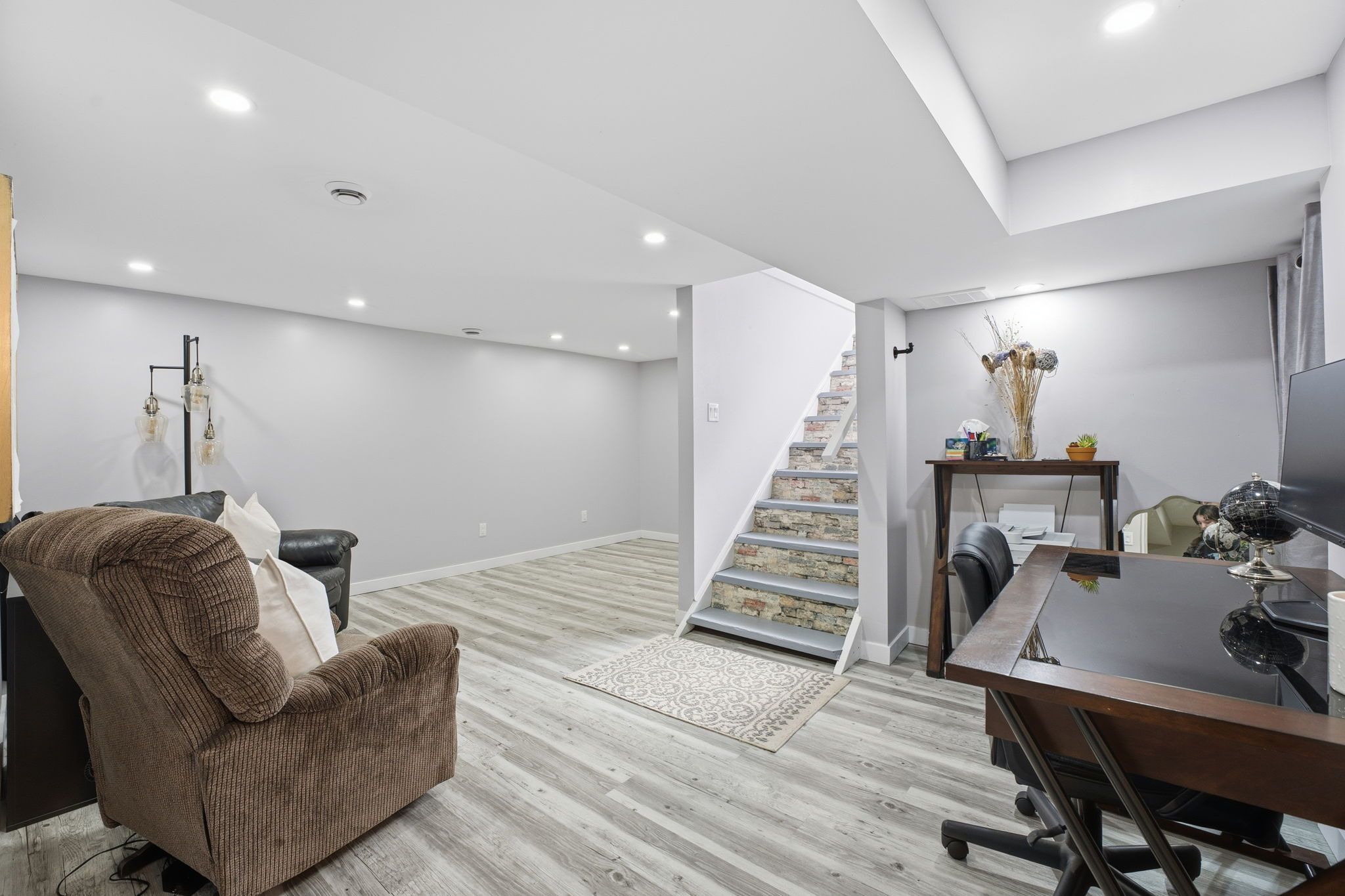 • Finished basement includes oversized bedroom and versatile recreation space.