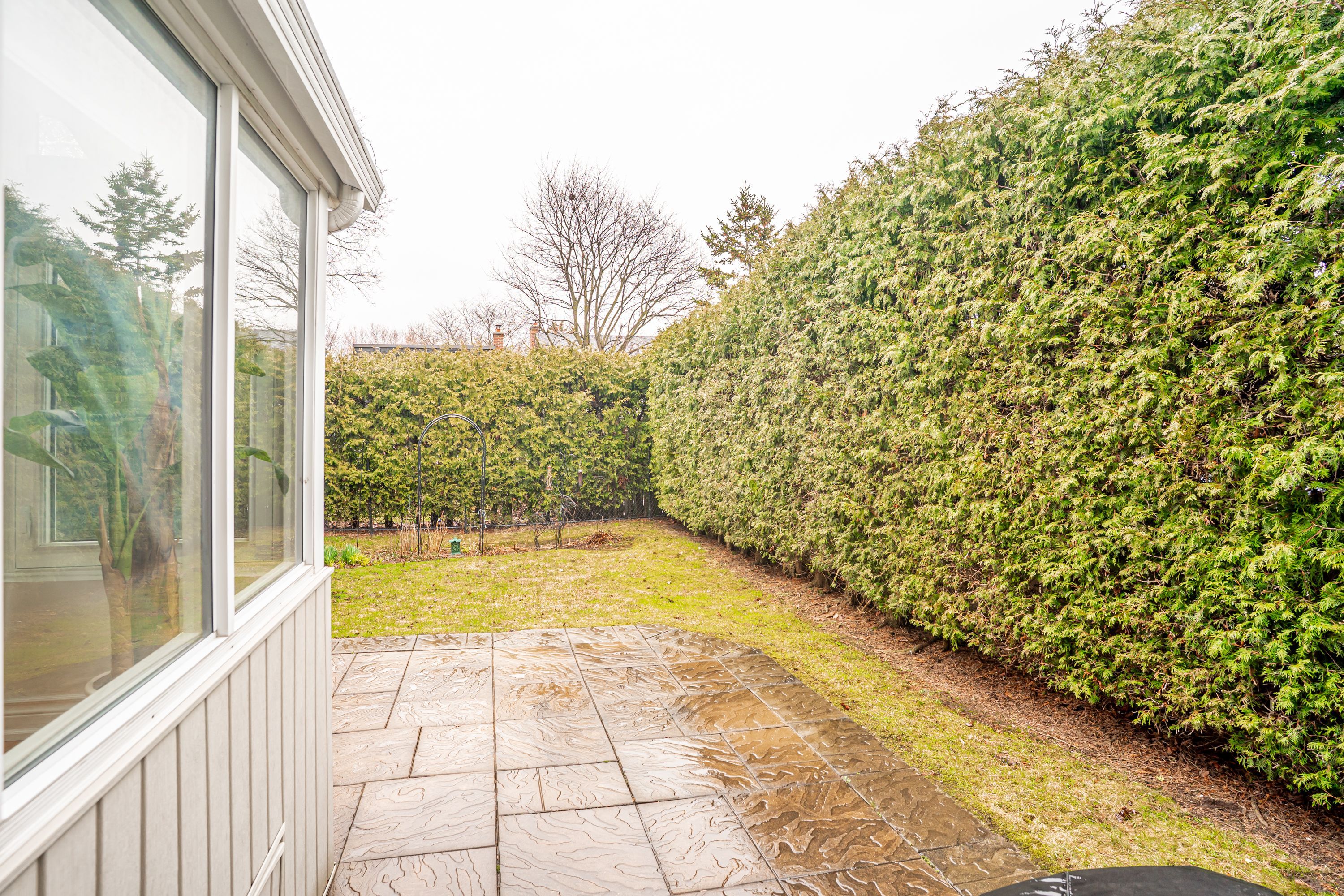 • Private backyard with mature trees, ideal for gatherings and relaxing.