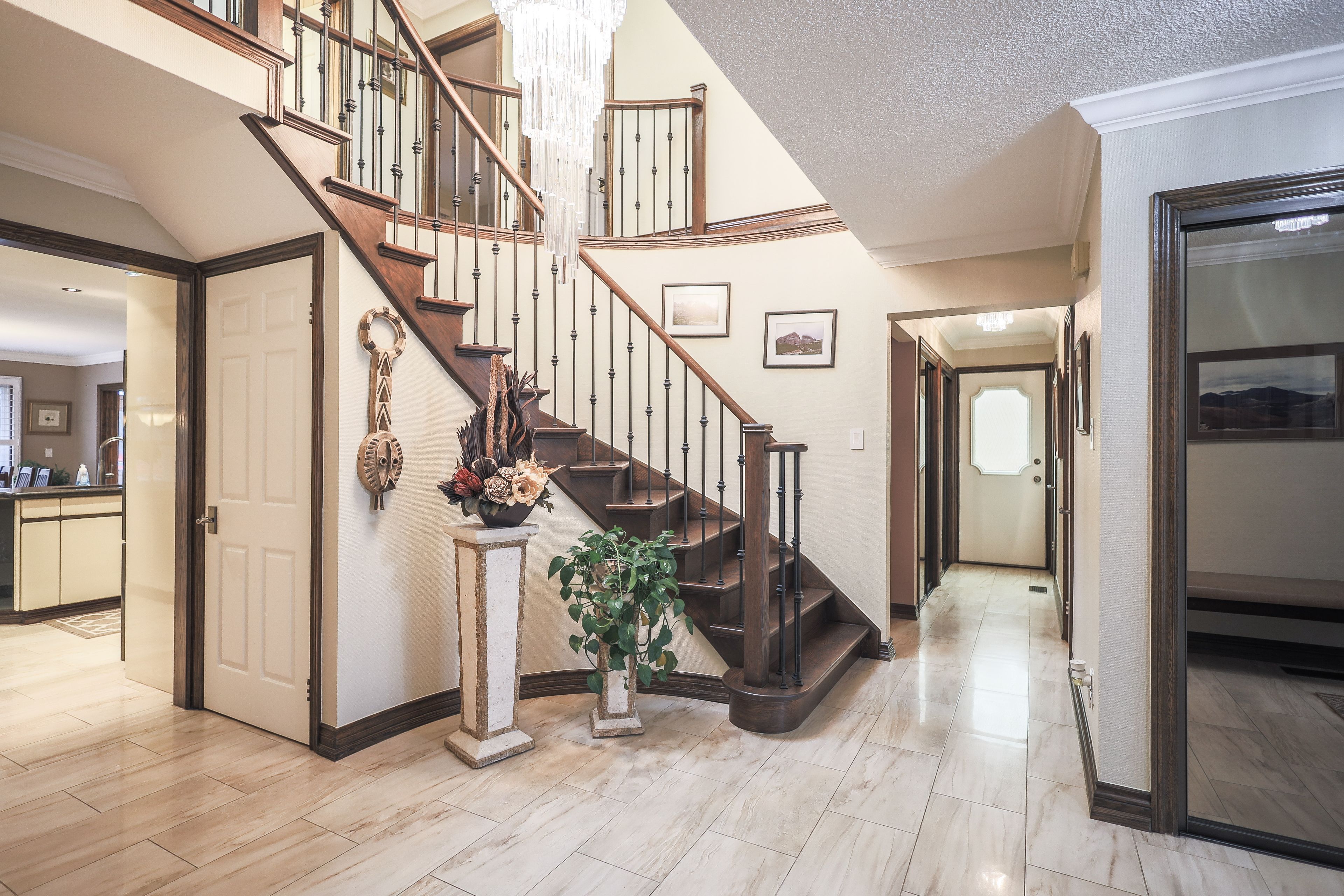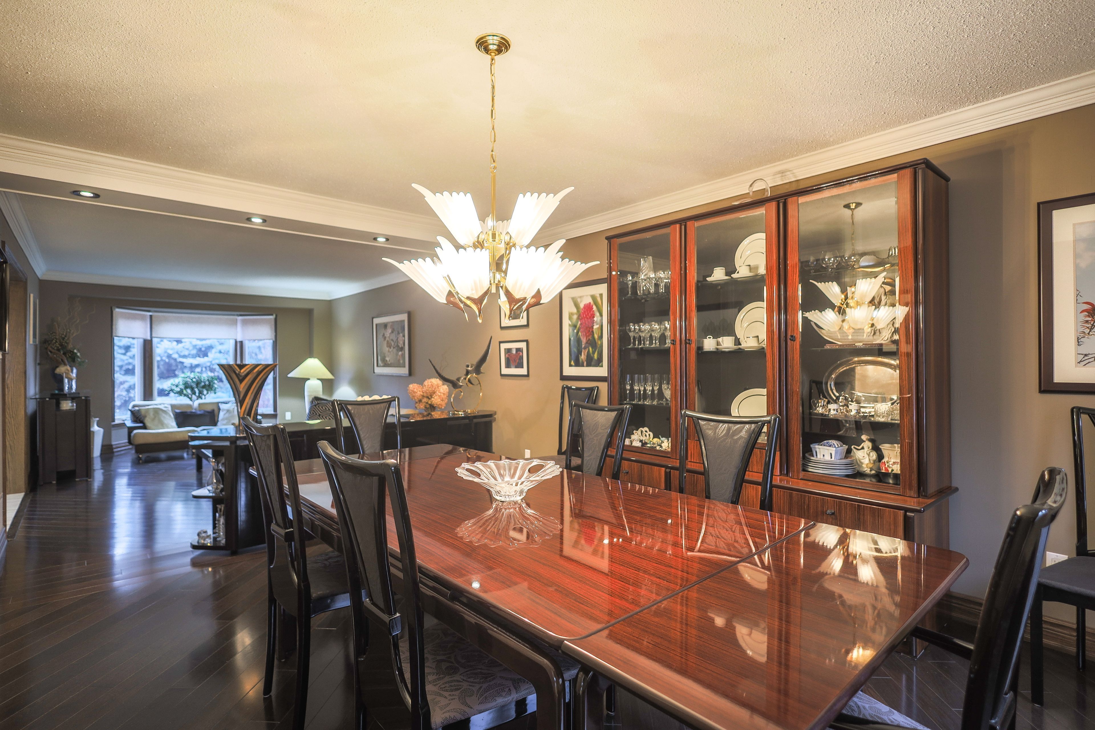 Absolutely sparkling clean and impeccably maintained, this 4-bedroom detached home is located in the highly desirable sawmill valley community on a massive lot, on one of mississauga's finest streets in the well-established erin mills neighborhood. An oversized double driveway offers parking for four vehicles, plus two more in the double garage. Professionally landscaped grounds lead to a covered front porch and impressive foyer featuring a spiral staircase, chandelier, and oversized mirrored closet. The main floor includes a bright living room with bay window and hardwood floors, and a spacious dining room ideal for entertaining. The family-sized kitchen features stone countertops, ceramic flooring, stainless steel appliances, and an extended breakfast area with california shutters. A sun-filled sunroom with brick flooring and raised walkout overlooks the backyard-both spaces extended from the original design to create exceptional gathering areas. The family room features a gas fireplace with floor-to-ceiling brick surround. A powder room and separate shower room complete the main level. Hardwood stairs lead to the second floor with hardwood throughout and a skylight above. The oversized primary bedroom includes a walk-in closet and 6-piece ensuite. All bedrooms are generously sized with ample closet space; one bedroom features a private 2-piece ensuite. A 4-piece main bath serves the upper level. The finished basement offers a large recreation room with wood-burning fireplace, a second kitchen, and banquet/cantina space-perfect for entertaining. Also included are an office, 3-piece bath with sauna, and a fully finished laundry room with double sink and extensive cabinetry. A remarkable home offering space, comfort, and a premium location.
