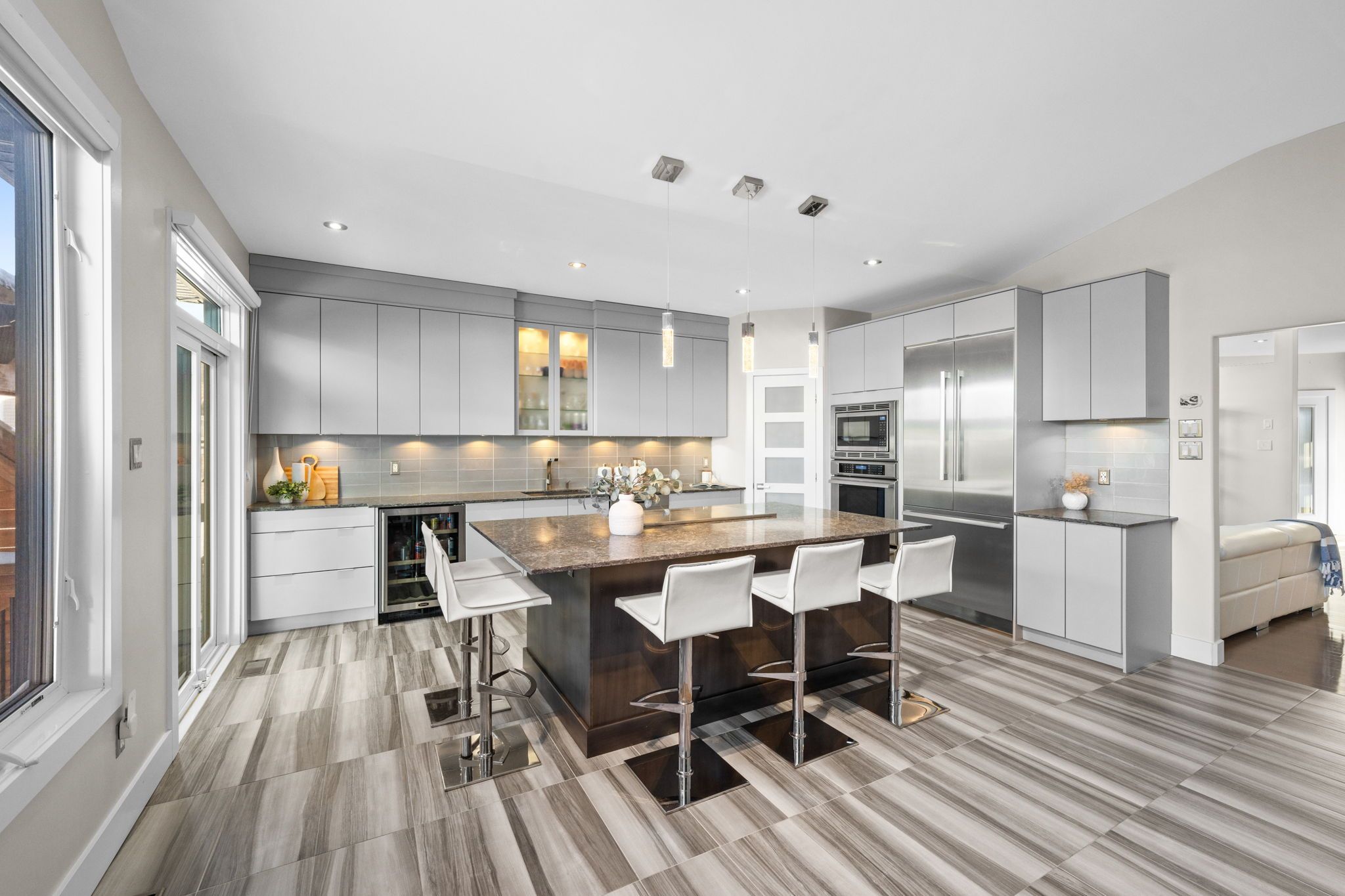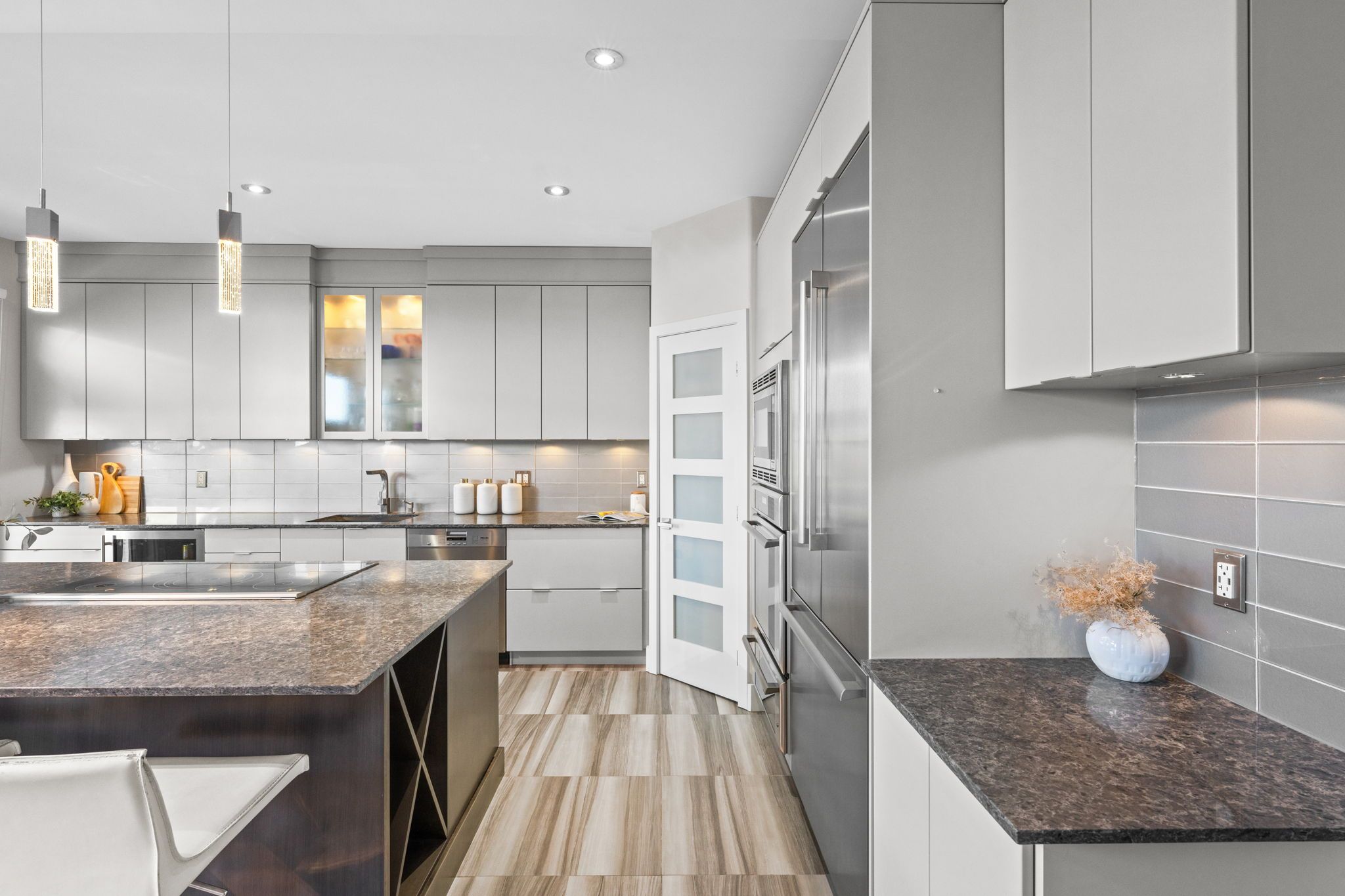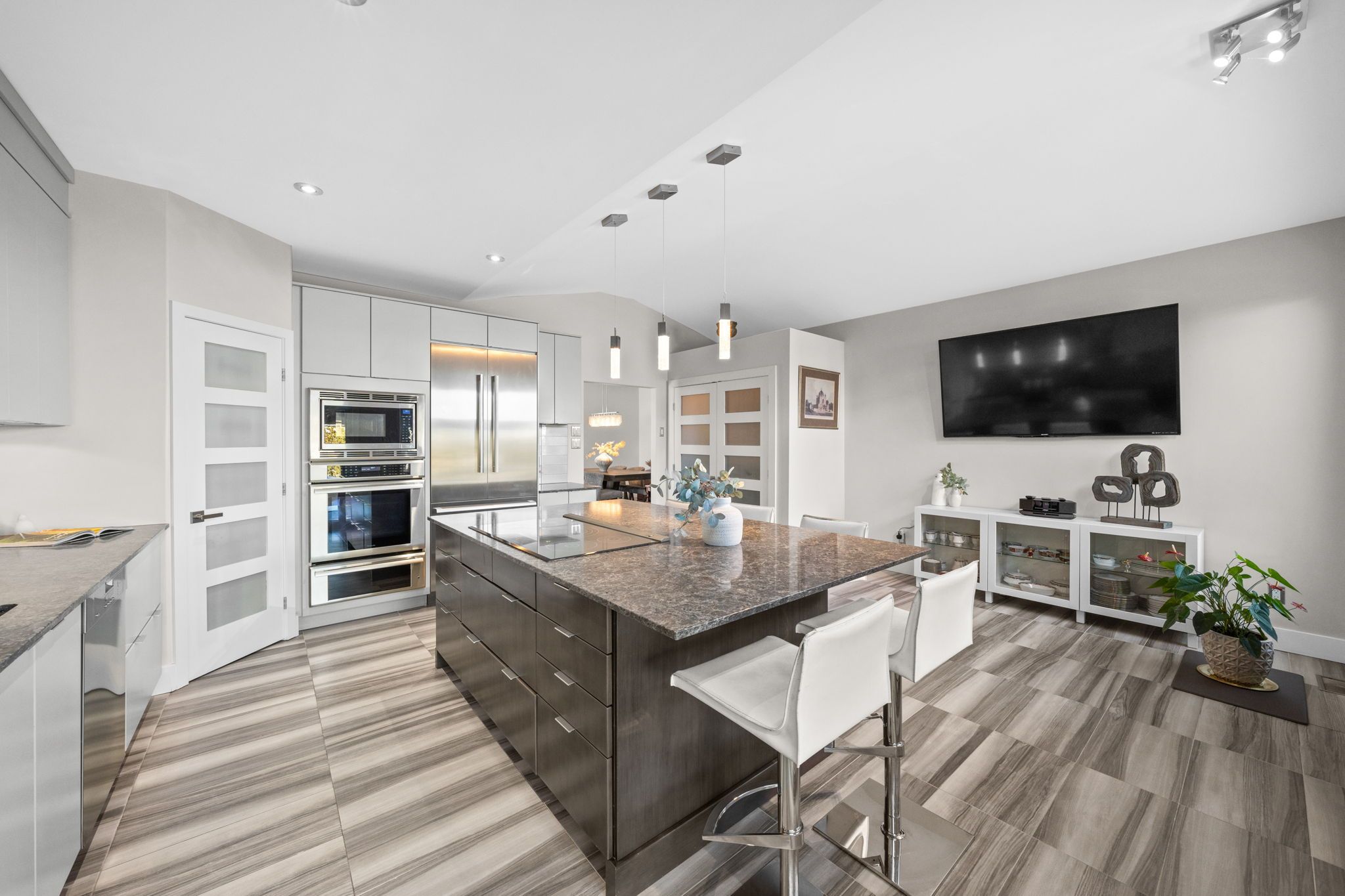 Exquisite custom bungalow in prestigious springridge. A truly one-of-a-kind residence, this fully reimagined custom bungalow showcases uncompromising craftsmanship, refined design, and the finest finishes throughout. Exceptional curb appeal welcomes you with a double driveway and sleek modern walkway leading to an impressive foyer. Hardwood and tile flooring flow seamlessly throughout the home, complemented by custom millwork, designer doors, recessed lighting, and built-ins. Designed for refined living and upscale entertaining, the main level features a sun-filled den (optional main floor third bedroom) with custom built in desk, storage, and bookshelves , an elegant dining area, and a sophisticated living room anchored by a dramatic stone feature wall. The european-inspired chef's kitchen is a true showpiece, offering extensive custom cabinetry, expansive countertops, a walk-in pantry, a large centre island, and premium thermador appliances. The primary suite is a private retreat with bespoke closets and a spa-inspired ensuite bath. A second bedroom, beautifully finished full bathroom, and convenient main-level laundry complete the main floor. The fully finished lower level continues the home's luxurious design, featuring two additional bedrooms, a full bath, an expansive family room (x2), and a dedicated gym. Step outside to a resort-style backyard oasis with a heated in-ground saltwater pool, hot tub, fire pit, pergola, and patio-perfect for entertaining or quiet relaxation. Additional highlights include a front yard lawn sprinkler system and numerous recent upgrades: pool heater (2022), tru north vent garage humidity extractor fan (2022), air conditioner (2022), furnace (2023), and pool pump (2025). Ideally located near scenic walking and biking trails and everyday amenities, this exceptional home offers luxury living without compromise.