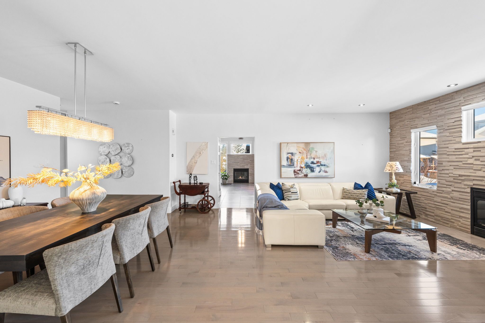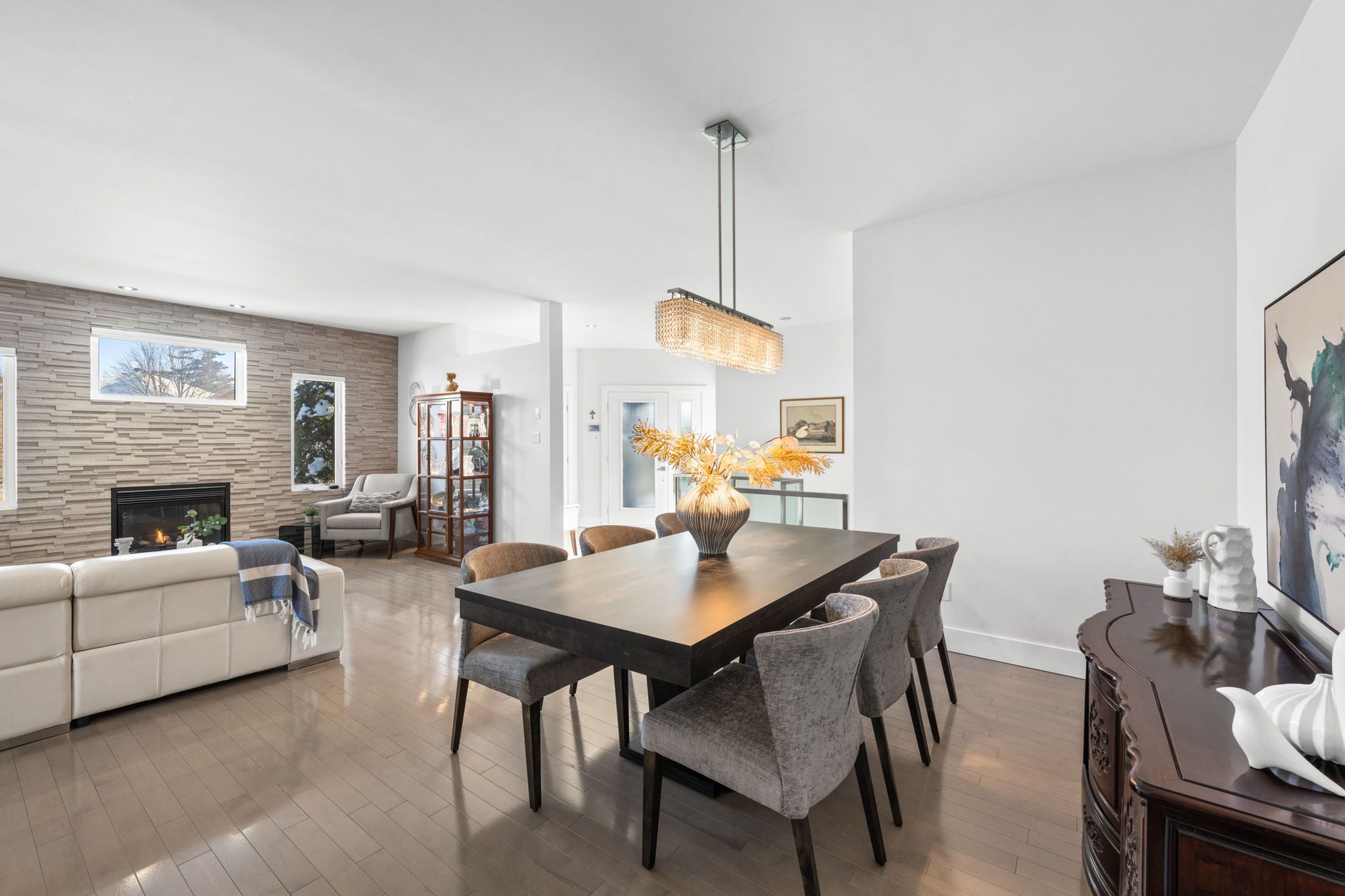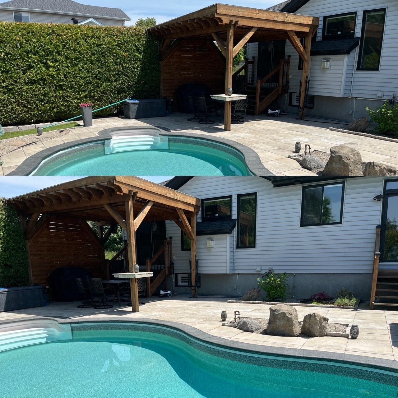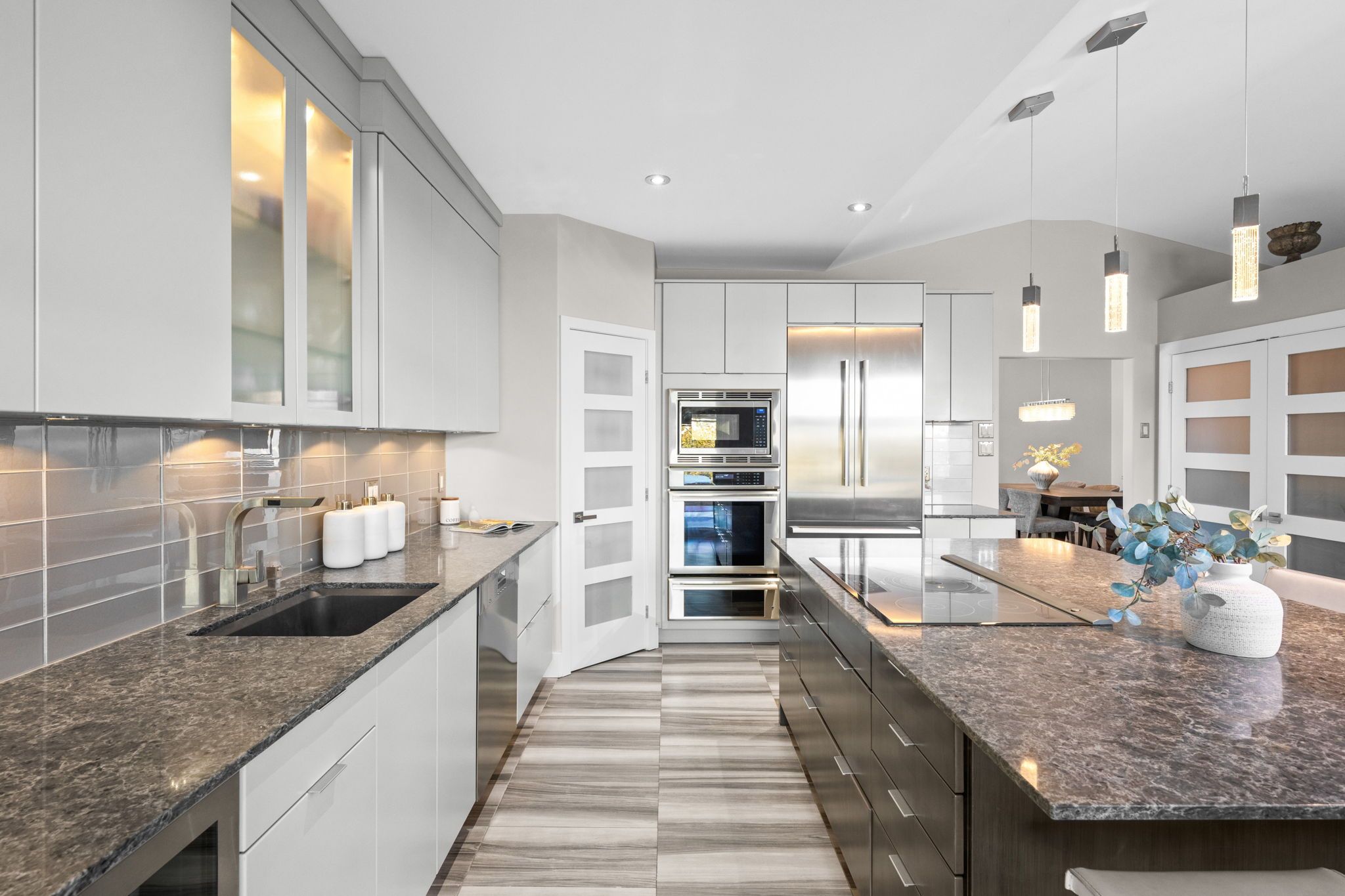 Exquisite custom bungalow in prestigious springridge. A truly one-of-a-kind residence, this fully reimagined custom bungalow showcases uncompromising craftsmanship, refined design, and the finest finishes throughout. Exceptional curb appeal welcomes you with a double driveway and sleek modern walkway leading to an impressive foyer. Hardwood and tile flooring flow seamlessly throughout the home, complemented by custom millwork, designer doors, recessed lighting, and built-ins. Designed for refined living and upscale entertaining, the main level features a sun-filled den (optional main floor third bedroom) with custom built in desk, storage, and bookshelves , an elegant dining area, and a sophisticated living room anchored by a dramatic stone feature wall. The european-inspired chef's kitchen is a true showpiece, offering extensive custom cabinetry, expansive countertops, a walk-in pantry, a large centre island, and premium thermador appliances. The primary suite is a private retreat with bespoke closets and a spa-inspired ensuite bath. A second bedroom, beautifully finished full bathroom, and convenient main-level laundry complete the main floor. The fully finished lower level continues the home's luxurious design, featuring two additional bedrooms, a full bath, an expansive family room (x2), and a dedicated gym. Step outside to a resort-style backyard oasis with a heated in-ground saltwater pool, hot tub, fire pit, pergola, and patio-perfect for entertaining or quiet relaxation. Additional highlights include a front yard lawn sprinkler system and numerous recent upgrades: pool heater (2022), tru north vent garage humidity extractor fan (2022), air conditioner (2022), furnace (2023), and pool pump (2025). Ideally located near scenic walking and biking trails and everyday amenities, this exceptional home offers luxury living without compromise.