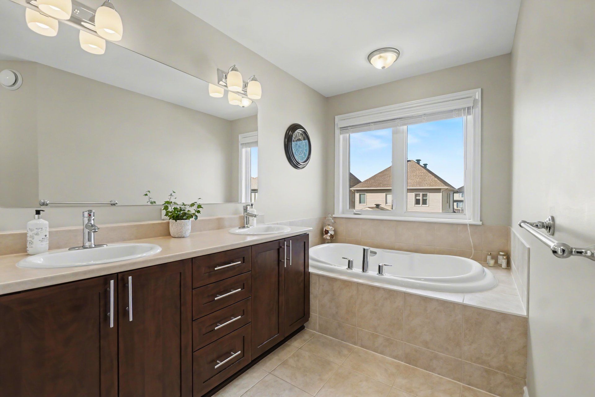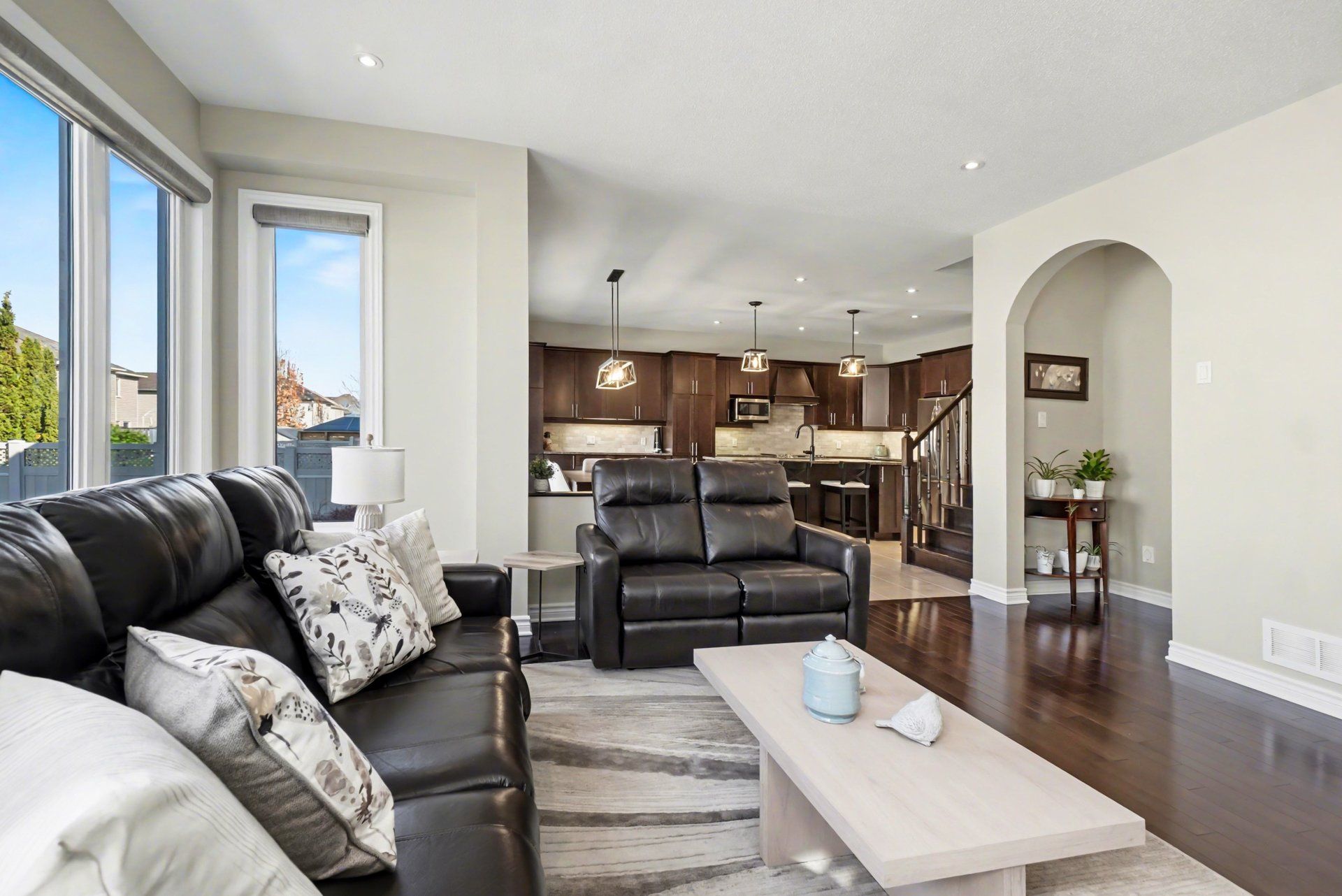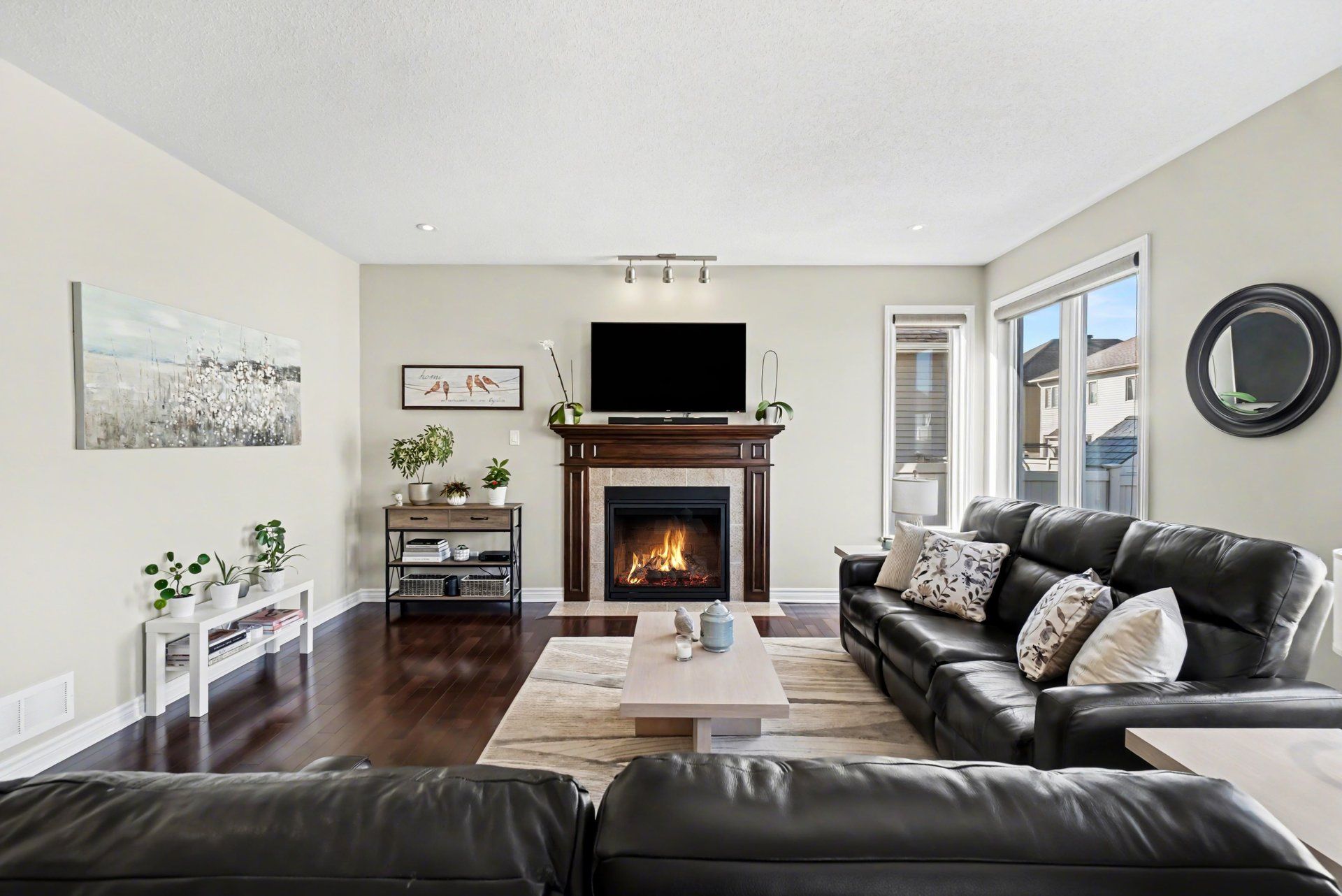 Better than new... Superb detached 4-bedroom, 4 bathroom home with a double-car garage, offering over 3,200 sq. Ft. Of living space, ideally located on a quiet crescent in a desirable neighbourhood with an oversized lot. An interlock walkway welcomes you into this bright, inviting home, filled with natural light throughout the day. The main floor features a tiled foyer, an office near the entrance with hardwood flooring and a door for privacy, a two-piece powder room, an elegant dining room with hardwood flooring and a spacious family room centred around a cozy gas fireplace & pot lights. The extended kitchen offers ample modern cabinetry, granite countertops, a centre island with a sitting area, and a sunny eating area-perfect for everyday living and entertaining. The second level boasts a generous primary bedroom with a sitting area, large windows, a walk-in closet, and a beautiful five-piece ensuite with a roman tub. A media loft area, three additional good-sized bedrooms (two with walk-in closets), and a full bathroom complete this level. The fully professionally finished lower level adds valuable living space with a recreation room that includes an electric fireplace, a gym or play room and a two-piece powder room plus ample storage space. Enjoy outdoor living in the fully fenced huge backyard featuring an interlock patio and gazebo. Ideally located close to transit, schools, parks, shopping, restaurants, and more. Roof shingles 2022, freshly professionally painted in 2024, pvc fence, gazebo, quality custum blinds throughout and much more. Must be seen to be appreciated; this move-in-ready home shows pride of ownership throughout-an opportunity not to be missed.