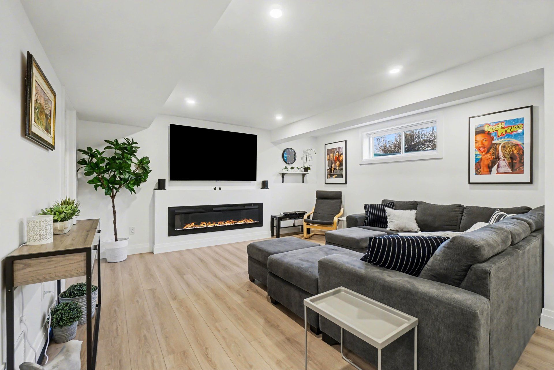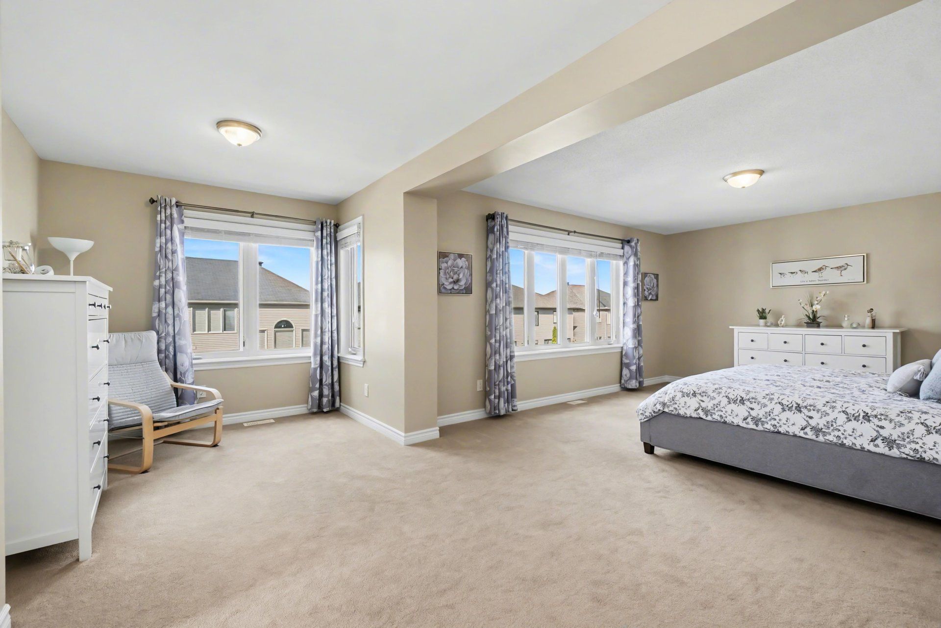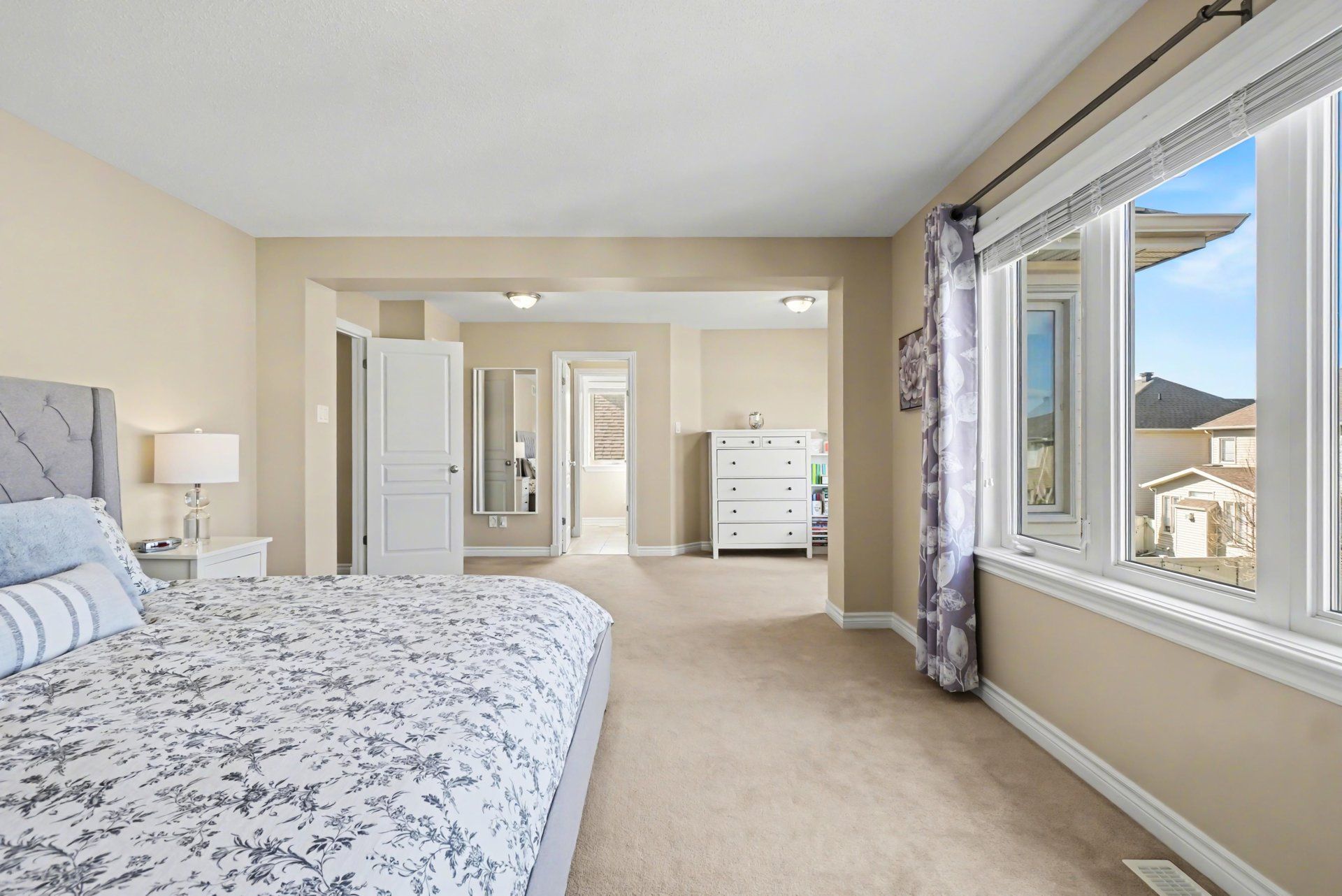 Better than new... Superb detached 4-bedroom, 4 bathroom home with a double-car garage, offering over 3,200 sq. Ft. Of living space, ideally located on a quiet crescent in a desirable neighbourhood with an oversized lot. An interlock walkway welcomes you into this bright, inviting home, filled with natural light throughout the day. The main floor features a tiled foyer, an office near the entrance with hardwood flooring and a door for privacy, a two-piece powder room, an elegant dining room with hardwood flooring and a spacious family room centred around a cozy gas fireplace & pot lights. The extended kitchen offers ample modern cabinetry, granite countertops, a centre island with a sitting area, and a sunny eating area-perfect for everyday living and entertaining. The second level boasts a generous primary bedroom with a sitting area, large windows, a walk-in closet, and a beautiful five-piece ensuite with a roman tub. A media loft area, three additional good-sized bedrooms (two with walk-in closets), and a full bathroom complete this level. The fully professionally finished lower level adds valuable living space with a recreation room that includes an electric fireplace, a gym or play room and a two-piece powder room plus ample storage space. Enjoy outdoor living in the fully fenced huge backyard featuring an interlock patio and gazebo. Ideally located close to transit, schools, parks, shopping, restaurants, and more. Roof shingles 2022, freshly professionally painted in 2024, pvc fence, gazebo, quality custum blinds throughout and much more. Must be seen to be appreciated; this move-in-ready home shows pride of ownership throughout-an opportunity not to be missed.