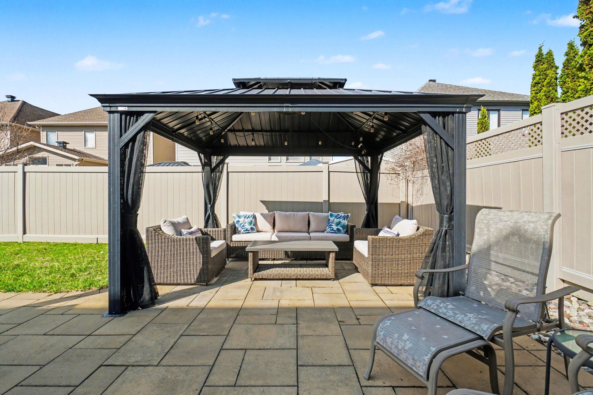 • Large backyard with interlock patio and gazebo for outdoor enjoyment.