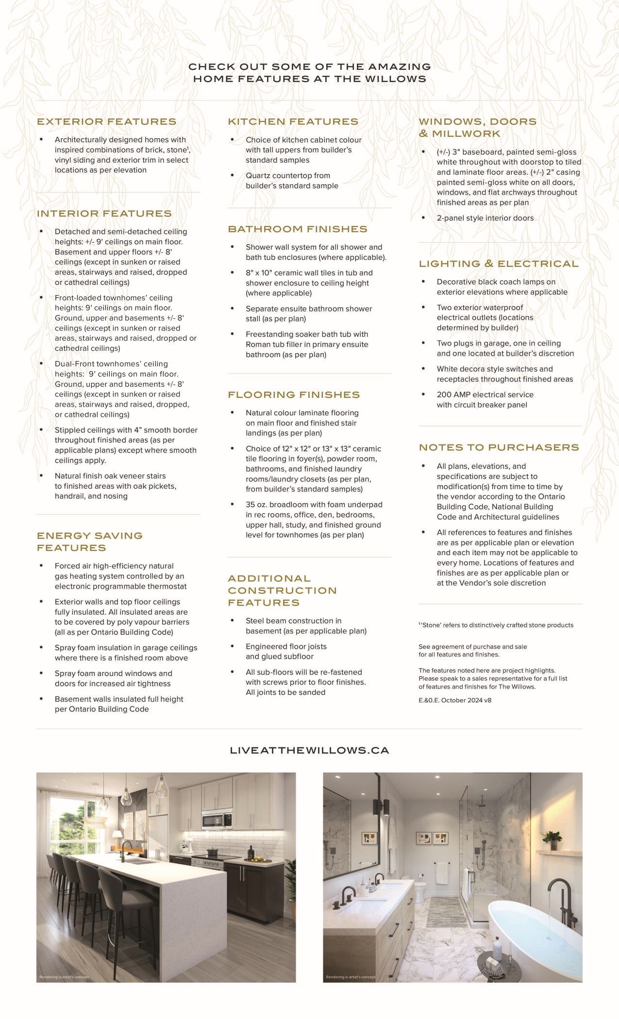 Welcome to the willows, a charming new community in courtice featuring 220 homes surrounded by picturesque green space, developed by the award-winning marlin spring developments. This brand-new 2,168 sq ft, two-story detached home offers a spacious layout with three bedrooms, 2. 5 baths, and impressive 9-foot ceilings on the main floor. The beautifully designed plan offers open-concept kitchen, dining room, and great room, complete with a center island, creating an inviting space perfect for entertaining. The primary bedroom boasts a luxurious 5-piece ensuite, which includes a free-standing tub with a roman tub filler, a separate seamless glass shower with double sinks. Courtice is renowned for its family-friendly atmosphere, offering parks, schools, and a variety of recreational facilities perfect for creating lifelong memories. The builder is offering a 5-piece appliance package which includes a stainless steel fridge, stove and dishwasher and front-loaded white washer & dryer. *optional 4-bedroom plan is offered for this home* 9' foot ceilings. Laminate flooring on main floor, quarts kitchen counters and centre island master ensuite has seamless glass shower, stand alone soaker tub, double sinks.*limited time only* extended deposit structure* only $2,500 per month!