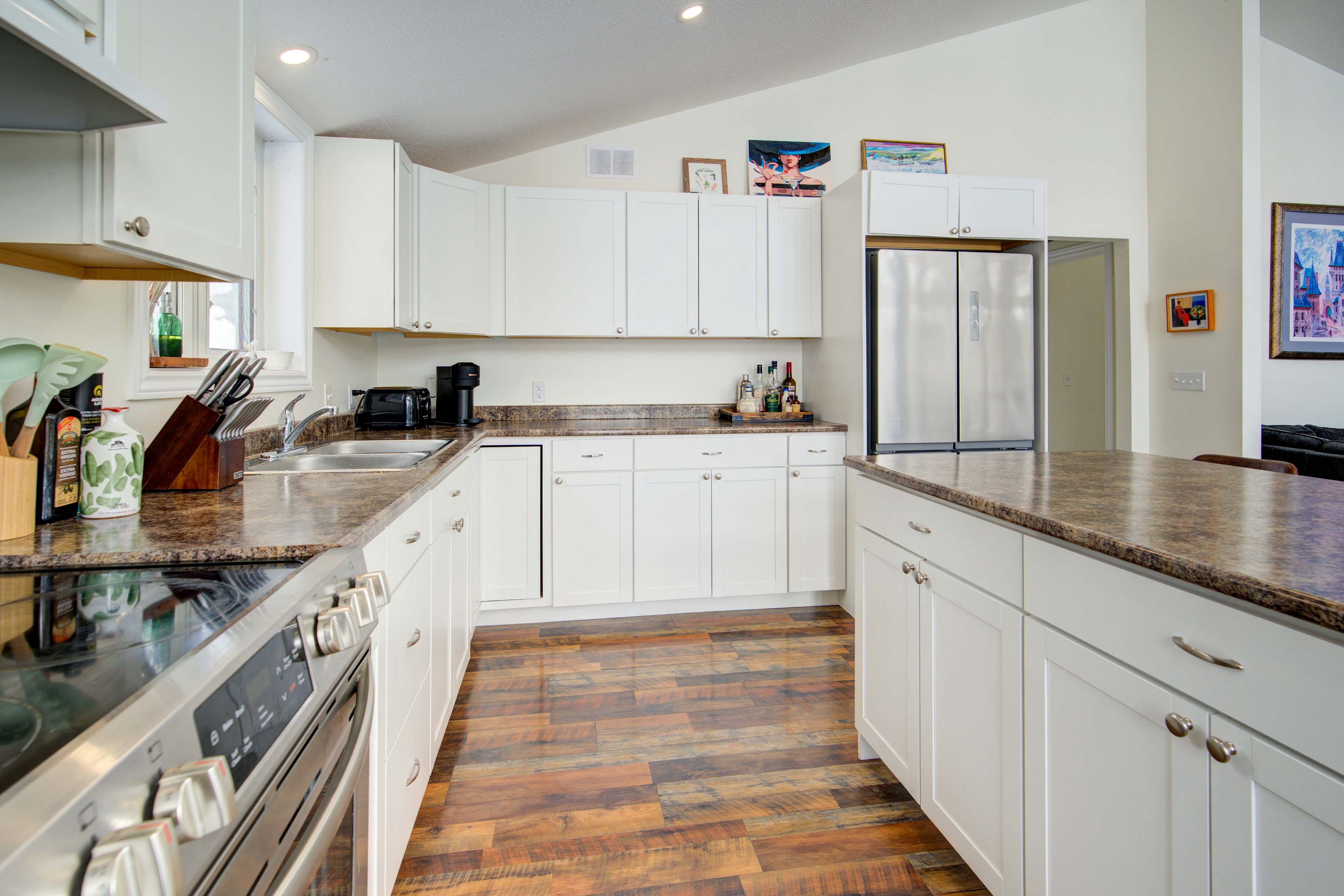 • Updated 4-season cottage with spacious bedrooms and bathrooms on both levels.