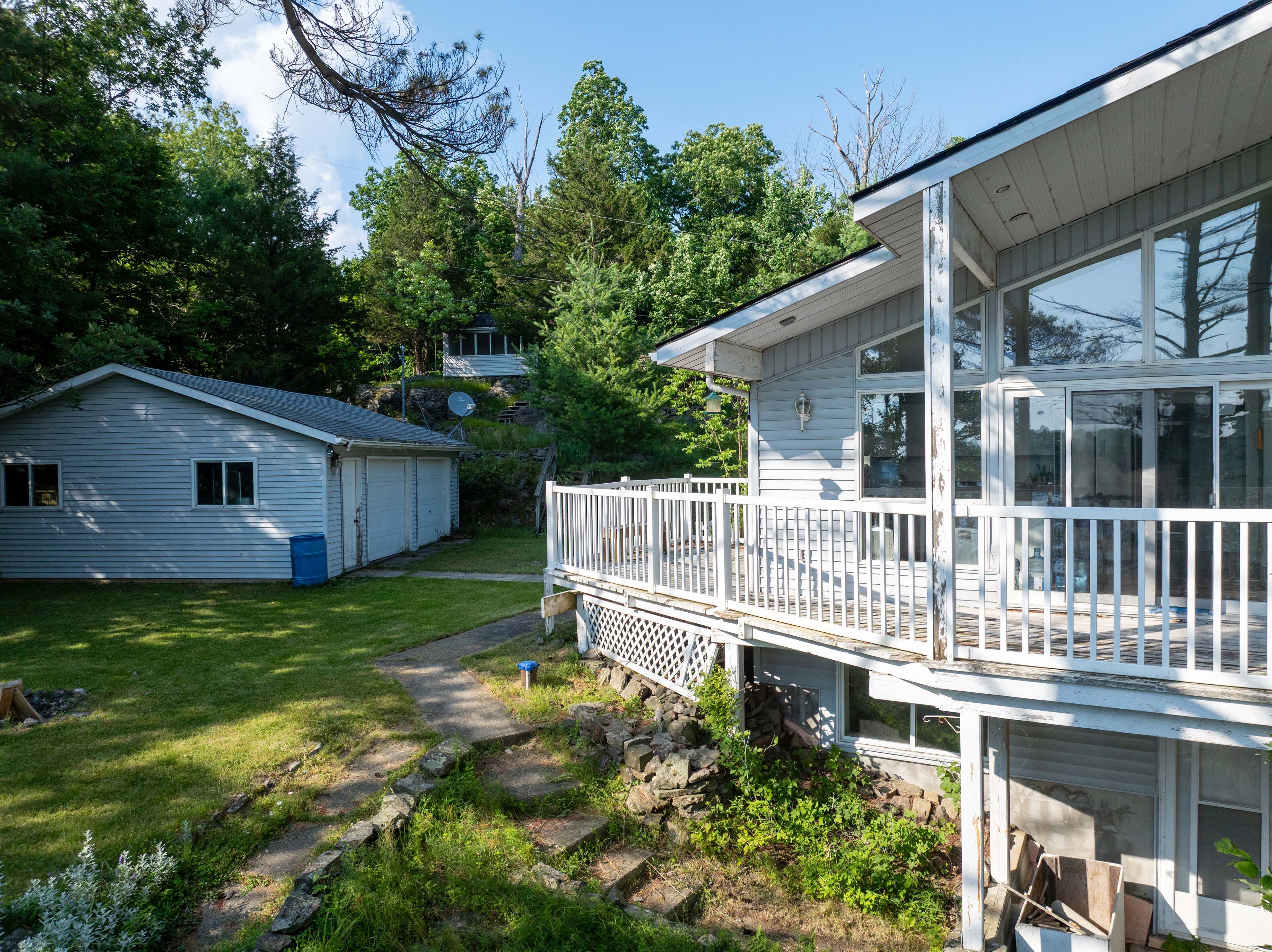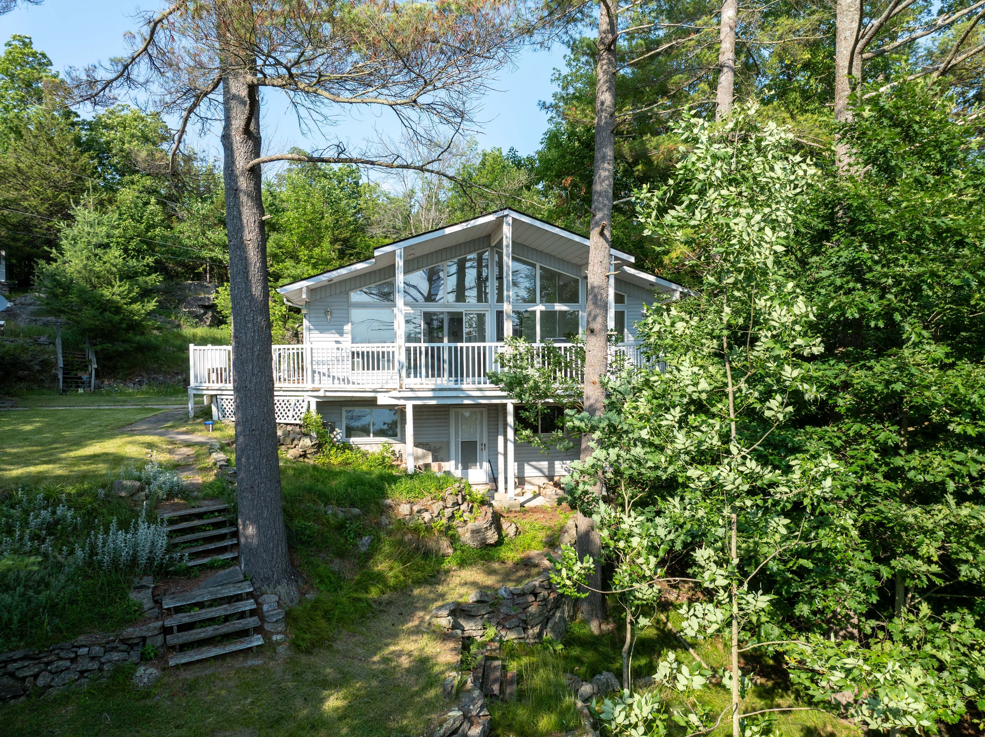 Lakefront retreat on beautiful opinicon lake! This property is located at the end of a private lane and includes a 4-season cottage or home, a 2-car detached garage and an additional building that could be used as a storage shed or bunkie. The lot is 1. 5 acres in size and offers a private setting with elevated westerly views over the lake perfect for enjoying sunsets! The house has been nicely updated and features 1 bedroom on the main level and 3 bedrooms on the lower level as well as a full bathroom on each level. The main level also has cathedral ceilings, a gorgeous wood burning fireplace and a large deck. The main area is open and bright with large windows bringing in the sunshine. In addition to the bedrooms and bathroom on the lower level, there is also a family room, utility room and walkout basement. The home is serviced by a drilled well and septic system and heated with a propane furnace as well as the wood-stove. Opinicon lake is part of the historic rideau canal system and offers great boating, swimming and fishing opportunities. The lake also is home to queens university biological station, james h. Fullard nature reserve and the opinicon resort. This is a fantastic opportunity to own a waterfront property on the rideau system!