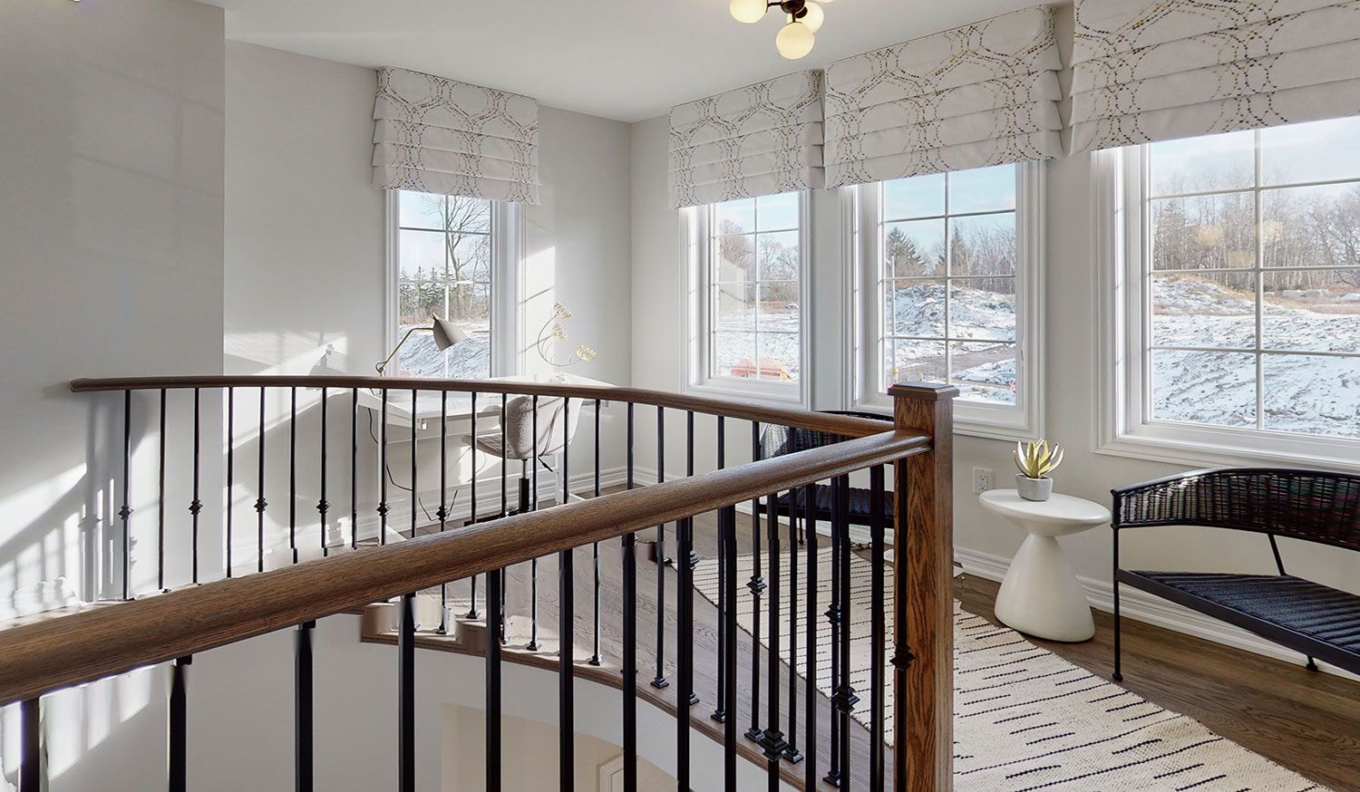 • Main floor features high ceilings and oversized windows for natural light.