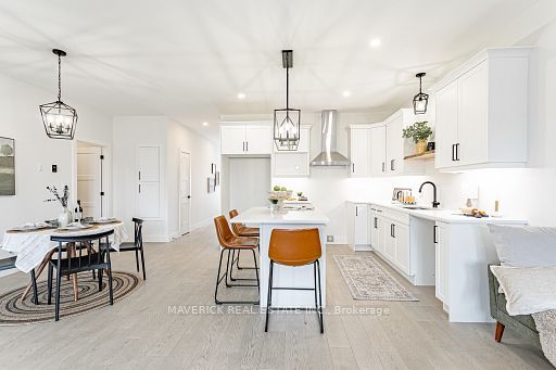 Welcome home to river valley place. Set on a quiet private road this modern bungalow delivers the ease of main floor living with thoughtful upgrades. Nine foot ceilings lift the sightlines and invite natural light, creating a spacious feel for daily life. Enjoy the peace of mind of freehold ownership paired with the convenience of a parcel of tied land condo ownership over the private road. This structure keeps condo fees low at approx sixty dollars per month. The great room flows naturally between living, dining, and kitchen. Three quarter inch wide plank hardwood warms the principal spaces, while ceramic tile in high traffic and wet areas keeps maintenance easy. A tailored feature wall adds modern warmth and refined character without overpowering the room, giving the space a finished, intentional look. The kitchen blends utility and craft. Soft close drawers feel solid and quiet. Live edge open shelving adds artisan texture and everyday convenience for glassware, and greenery. Prep space is generous and clear sightlines keep everyone connected. Upgraded plumbing and layered lighting support bright task work and relaxed evenings with equal ease. Daily chores are simpler in a laundry and mudroom treated with the same care as the kitchen, where live edge shelving and cabinetry create organized, good looking storage. The primary suite is restful and practical, with soft light and sensible storage. Baths continue the theme of upgraded plumbing and lighting. Secondary bedrooms flex for guests, work, or hobbies. Step outside to a ten by twelve rear deck for morning coffee or evening grilling. The fully fenced yard offers privacy, space for pets, and low hassle care. Community comforts include an onsite mailbox and the security of a tucked away setting. Recreation is close at hand with indoor gymnasium style spaces at the nearby recreation centre and future multi use outdoor sports courts, plus quick access to highway 2 for easy connections.