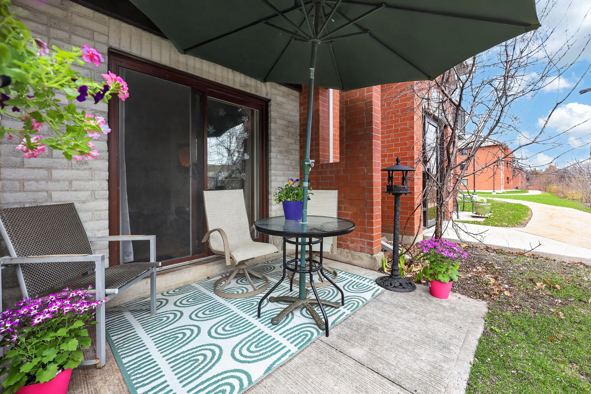 • Private southern-exposure patio, ideal for relaxation and quiet moments.