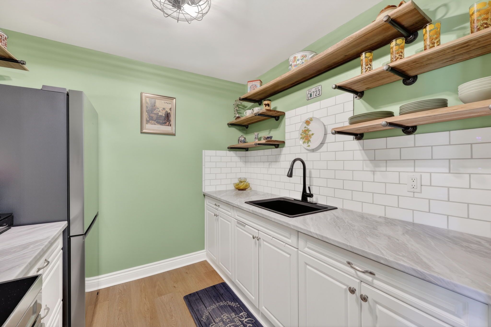 • Stylish updated kitchen with new appliances for modern living.