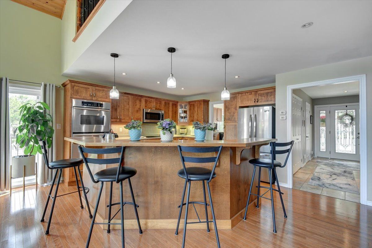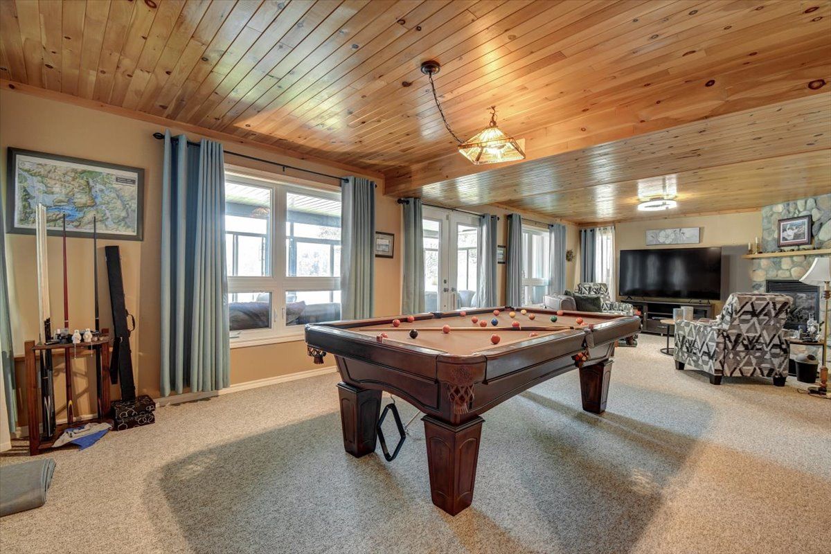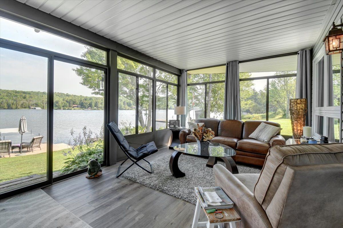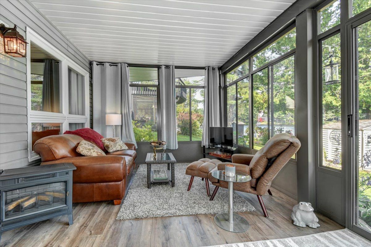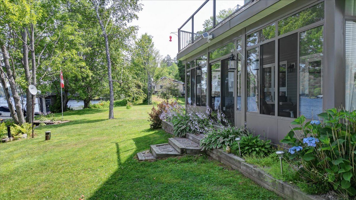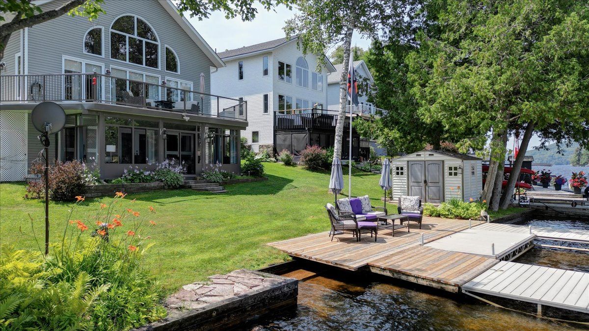 Welcome to 183 fell road, a luxury waterfront residence on beautiful baptiste lake. Located just minutes from bancroft, with direct water access to elephant and benoir lakes, the property offers miles of scenic boating and access to algonquin park. This meticulously maintained four-bedroom, four-bathroom home, on a year round municipally maintained road, combines upscale comfort with timeless design. The open-concept main level features a spacious living, dining area with soaring cathedral ceilings, floor to ceiling windows that capture the incredible lake views, and direct access to the expansive outdoor deck area. The large kitchen is perfect for family gatherings, with beautiful stainless steel appliances and elegant finishes; off the kitchen is a mud/laundry room, a perfect place to drop everything cottage, family and pets. The main floor also features a beautiful private primary suite, complete with dual closets and a luxurious 4-piece ensuite bathroom. Upstairs, an open to below loft area serves as an office/den, while a large bedroom with 3-pc ensuite offers a quite and private retreat. A fully finished walk-out basement with 2 additional bedroom, 4 pc bath, rec room and utility room, offers additional living space and includes a full-width walk out sunroom, ideal for year-round enjoyment with stunning lake views. The property includes a 1-car garage with a cozy rear patio. This home, with quality furnishings and tasteful décor throughout, is offered turn-key. The layout is ideal for hosting family and friends, with ample space and privacy. Excellent swimming, boating, and fishing are just steps from your door. Continually updated and upgraded over the years, this property is the perfect blend of comfort, function, and waterfront lifestyle. Whether you seek a permanent residence, executive retreat, or investment, this baptiste lake one of a kind luxurious property offers unmatched value and year-round appeal.