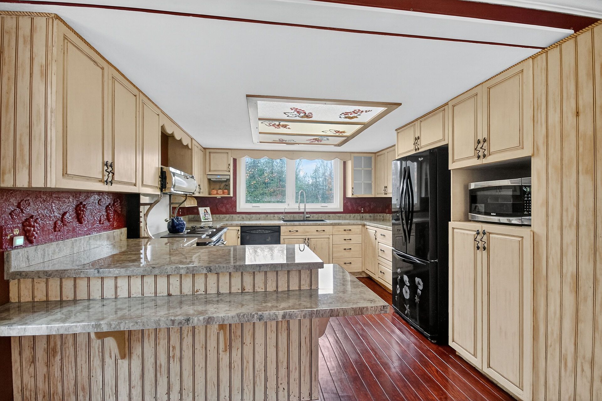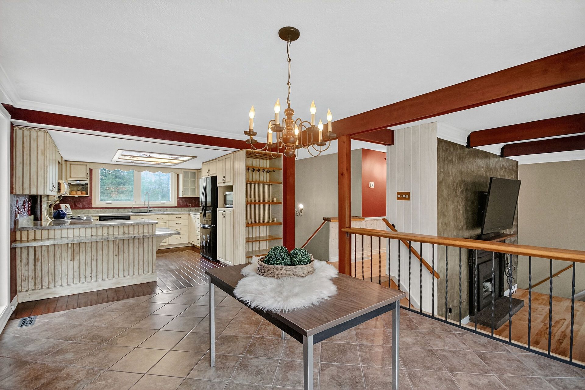Nestled on a serene wooded lot, this charming country home offers a unique blend of eclectic design and modern amenities across multiple levels. Featuring a large country kitchen, you'll find it well-equipped with pull-out cabinets and the vintage appeal of an elmira heritage collection cookstove-perfect for culinary enthusiasts! The home boasts a large dining room providing a warm atmosphere with stunning views of the surrounding woods. The sunken living room is a cozy retreat, leading seamlessly to a screened porch, ideal for enjoying tranquil evenings. With two generously-sized bedrooms, the house also includes renovated bathrooms. The luxurious shower includes a rain shower head that mimics the soothing sensation of a gentle rainfall. Additionally, dual-zone shower heads allow for personalized water temperature and pressure adjustments, creating a spa-like experience right in your home., there are two other bedrooms that offer flexibility and space for family or guests. The informal family room is centred around a welcoming wood stove, creating a perfect spot for gathering during colder months. With convenient access to the garage, the property also presents the potential for an in-law suite or an excellent income opportunity. Whether you're seeking a peaceful retreat or a versatile family home, this property has it all. Located just 10 minutes from ottawa and 10 minutes from carleton place, experience the charm and functionality of this delightful country home today!