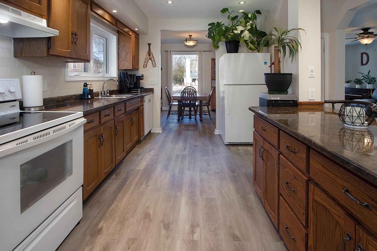 • Bright main floor with a living room, dining area, and updated kitchen.