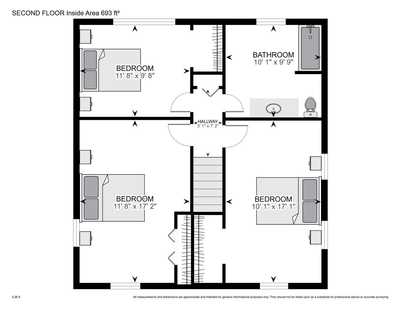 • Three generous bedrooms upstairs with ample closet space.