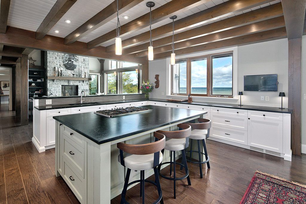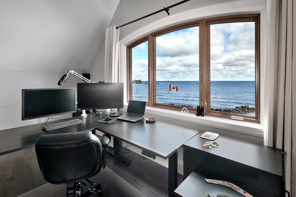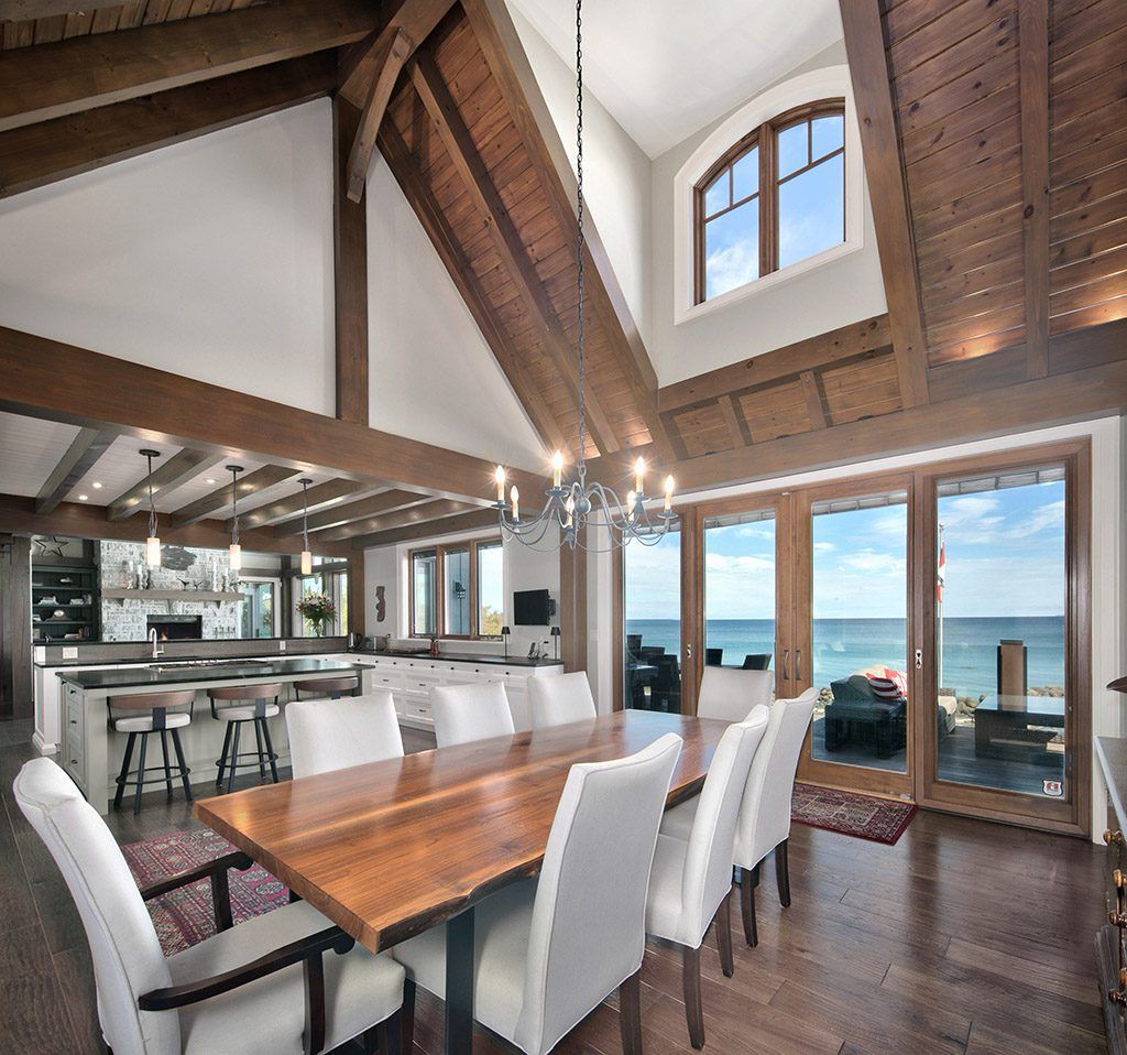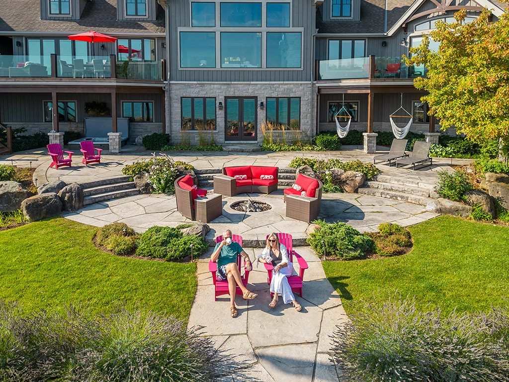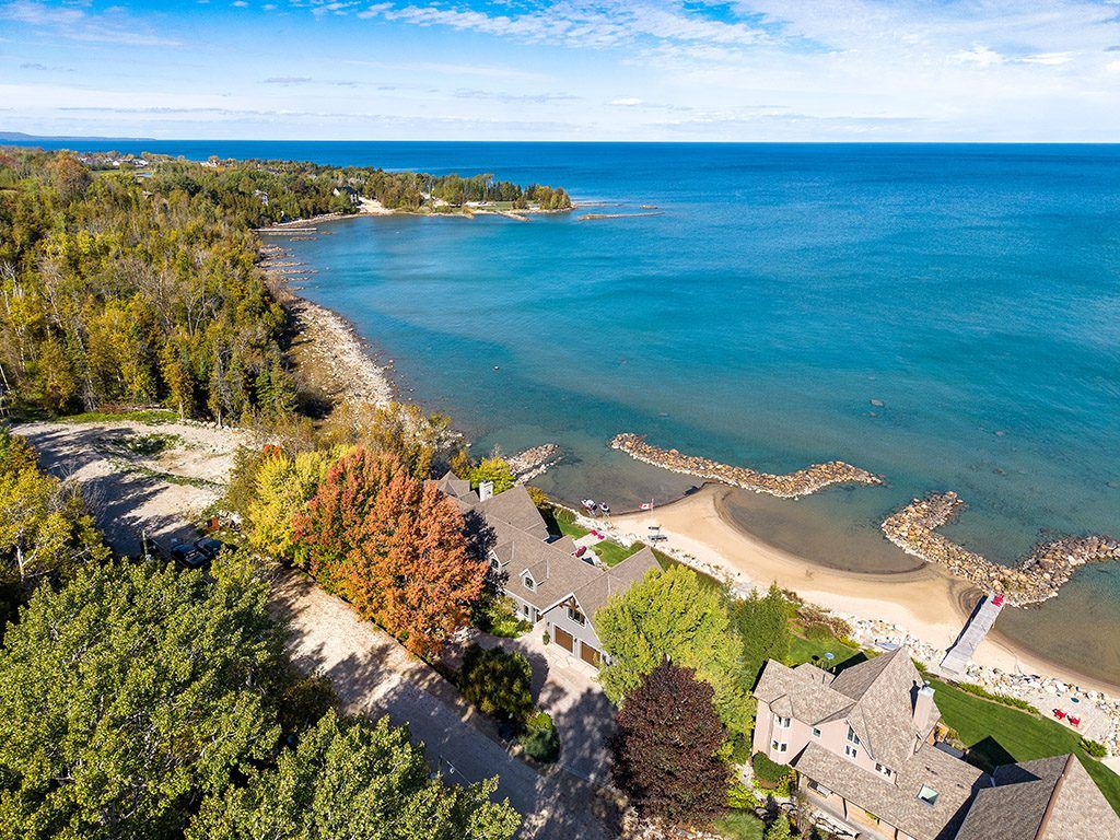 An exclusive 200ft sandy shoreline retreat on lake drive, thornbury. Discover the ultimate waterfront sanctuary, where 200ft of rare sandy beach meets the sparkling blue of georgian bay. In a region known for its rocky shoreline, this remarkable stretch of sand offers an unmatched setting for swimming, paddle boarding, and boating all just minutes from downtown thornbury and nearby private ski and golf clubs. Spanning over 7,500 sq. Ft., this exceptional custom home is designed for gathering family and friends in comfort and style. The vaulted 26ft ceilings in the great room with exposed beams, floor-to-ceiling windows, and a grand rumford fireplace captures the essence of relaxed luxury, framing breathtaking bay views at every turn. The chefs kitchen blends elegance and function with soapstone countertops, high-end appliances, a coffee bar, and a large island for effortless entertaining. It flows seamlessly into the dining area and out to a balcony with glass railings the perfect spot for morning coffee or sunset dinners overlooking the water. The primary suite offers a private wing of serenity with a cozy sitting room and gas fireplace, water-view deck, walk-in closet, and a spa-inspired ensuite with marble finishes and steam shower. Functional touches include a laundry and mudroom with dog wash, and direct access to the 3 level garage with mezzanine storage. Upstairs features two guest bedrooms, two 3-pc baths, a flex space, and a home office with inspiring views. The walk-out lower level extends the living space with heated floors, a recreation room, four bedrooms, and two full baths, opening directly to the patio and beach. Step outside to 200ft of pristine sand, a hot tub overlooking the bay, and total privacy to unwind after a day of golf or skiing. From sunrise paddles to starlit nights by the water, this extraordinary thornbury residence is more than a home its a legacy on the shores of georgian bay.