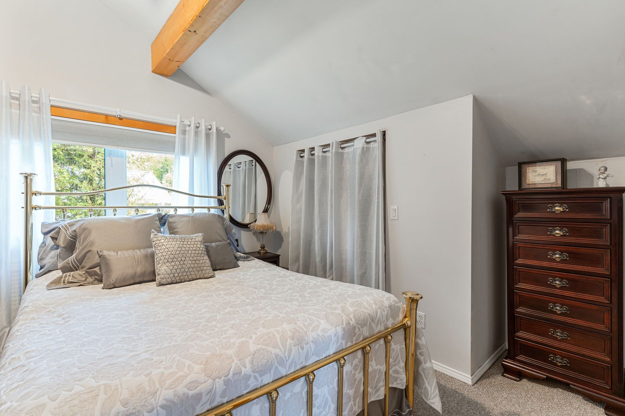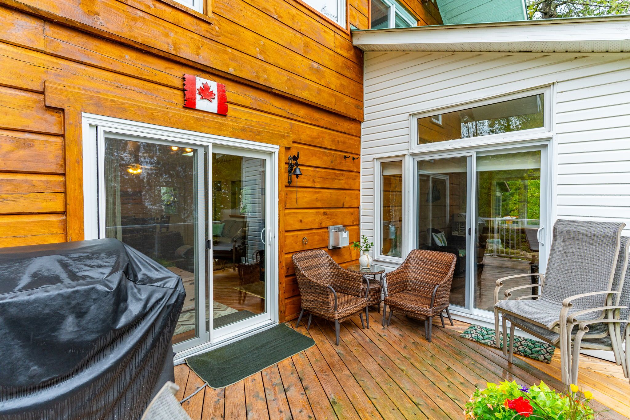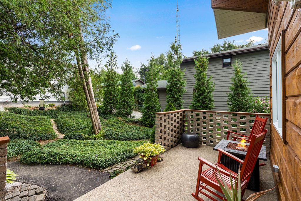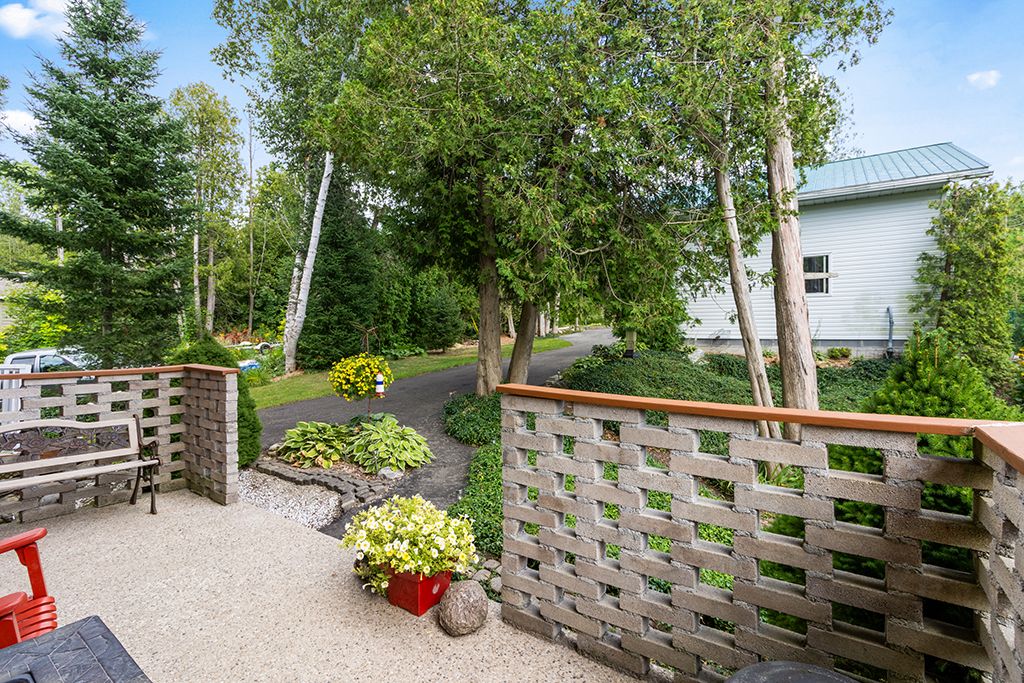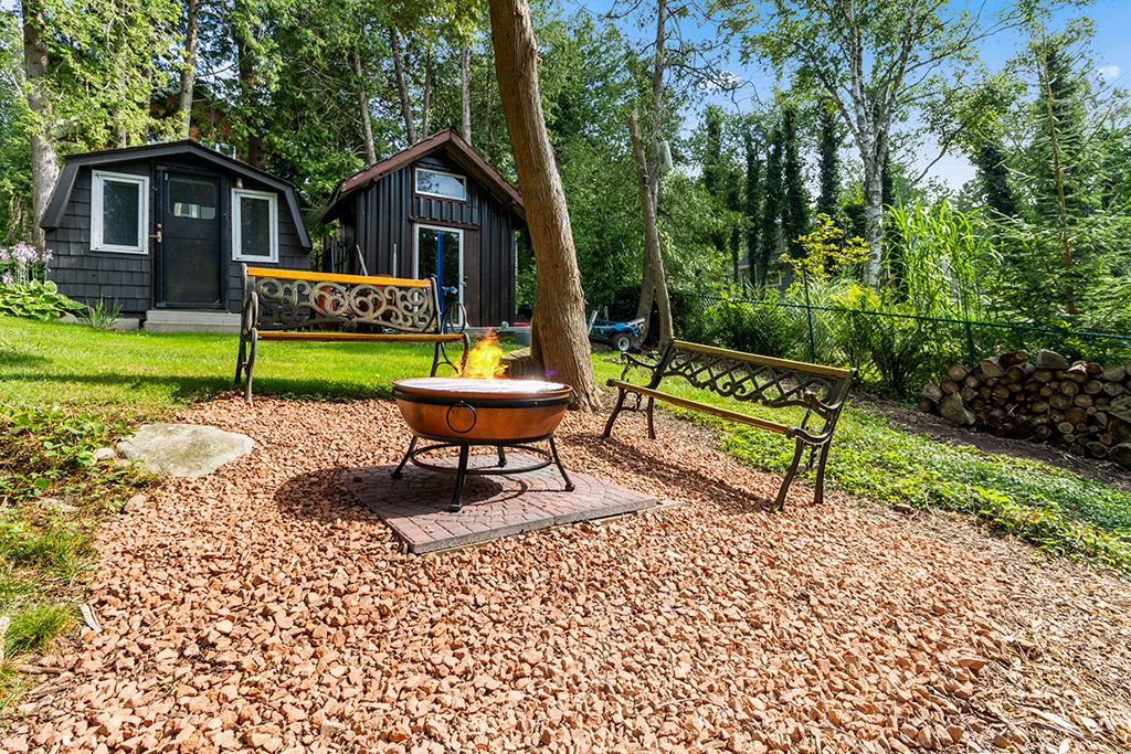 • Private lot with detached garage, garden sheds, and easy water access.