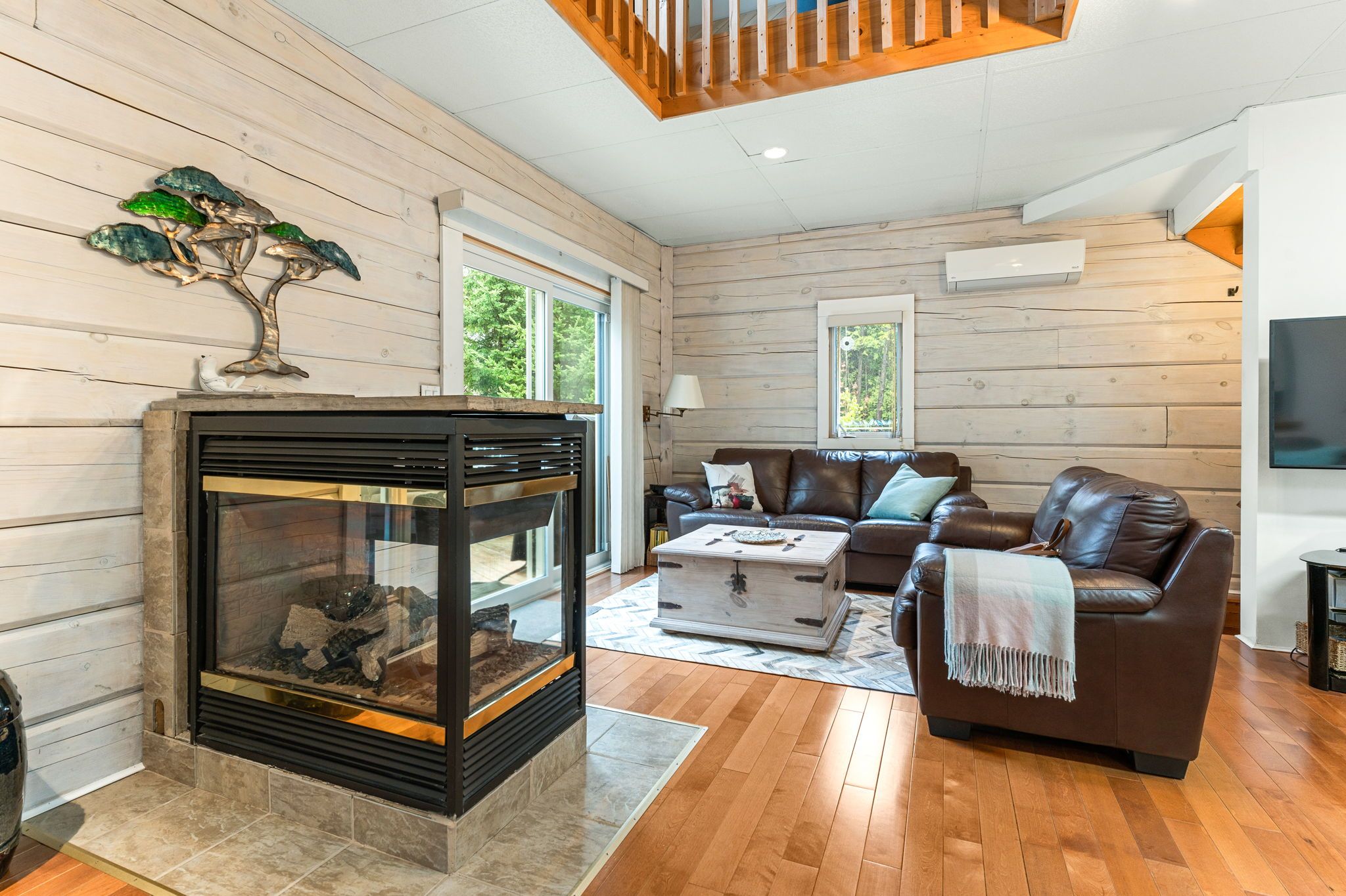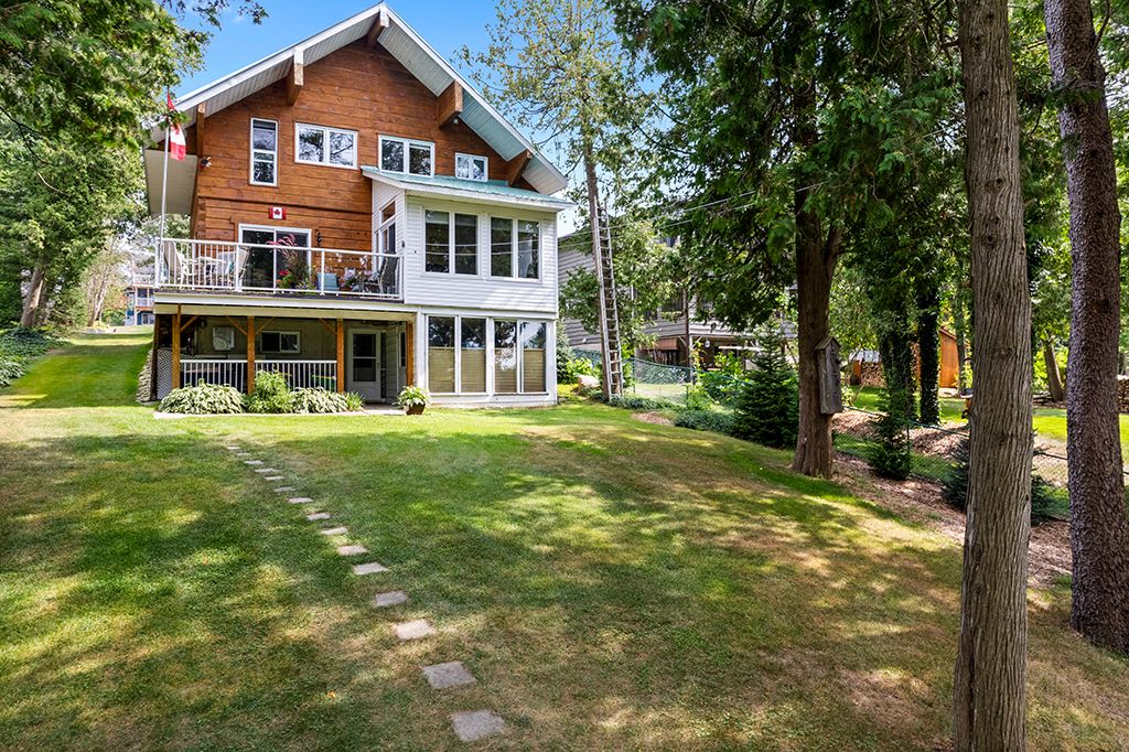 Enjoy the very best of four-season living on georgian bay. This charming log home/cottage sits on 60 feet of pristine shoreline-perfect for boating, fishing, or simply taking in the views from your dock. Inside, you'll find a warm and inviting open-concept main floor featuring hardwood flooring, tumbled tile, and a cozy gas fireplace. Just off the living area, a bright sunroom leads to a large deck-ideal for morning coffee or evening cocktails. The main level also offers a spacious kitchen and a large 3-piece bath with convenient laundry. Upstairs, a loft-style walkway overlooks the living space below and leads to two bedrooms and a 4-piece bath, all complemented by stunning views of the bay. The walk-out basement adds flexibility with an additional 1 or 2 bedrooms, second kitchen, and 3-piece bath-perfect for extended family, guests, or potential income. Comfort is covered year-round with efficient heat pumps on both the main and lower levels, along with two gas fireplaces. Notably, this home enjoys both municipal water and natural gas-a rare combination. Set on a private, well-treed lot, the property includes a 20' x 24' detached 2-car garage with workshop and loft, offering plenty of storage for vehicles, a boat, or recreational gear. Two garden sheds and a convenient canoe/kayak house near the shoreline make outdoor living easy and organized. At the water's edge, a large deck provides front-row seats to those iconic georgian bay views. The bay is deep enough to moor your boat at the included docking. This isn't just a property-it's the kind of place where memories are made. Waterfront, privacy, and space for everyone... The full package.