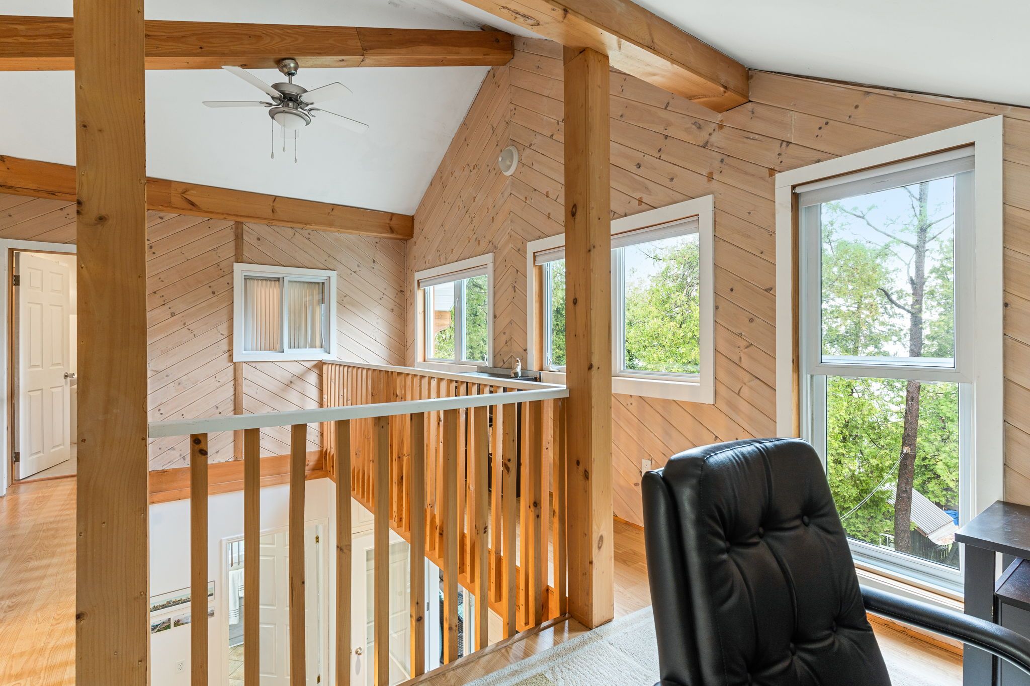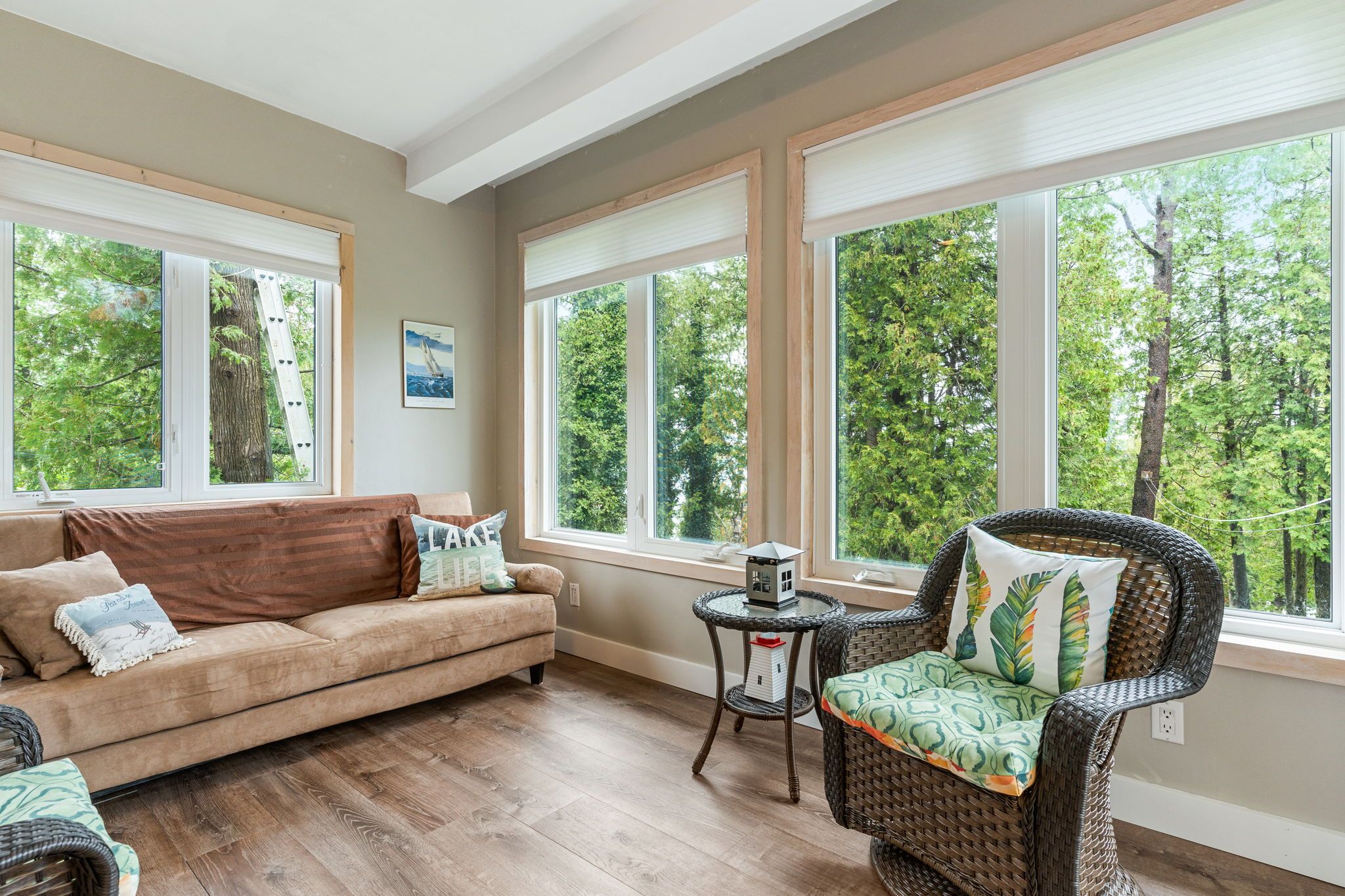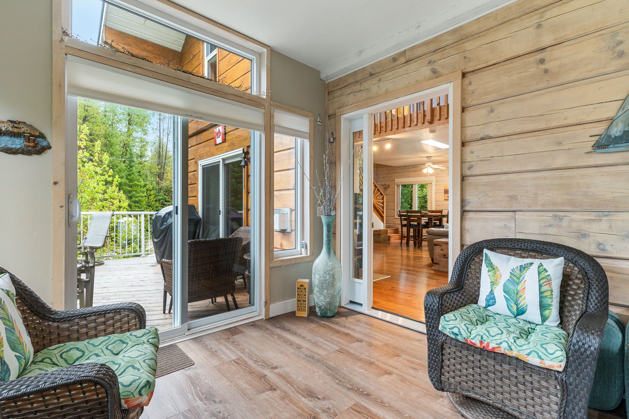 • Bright sunroom leads to a large deck for relaxation and views.