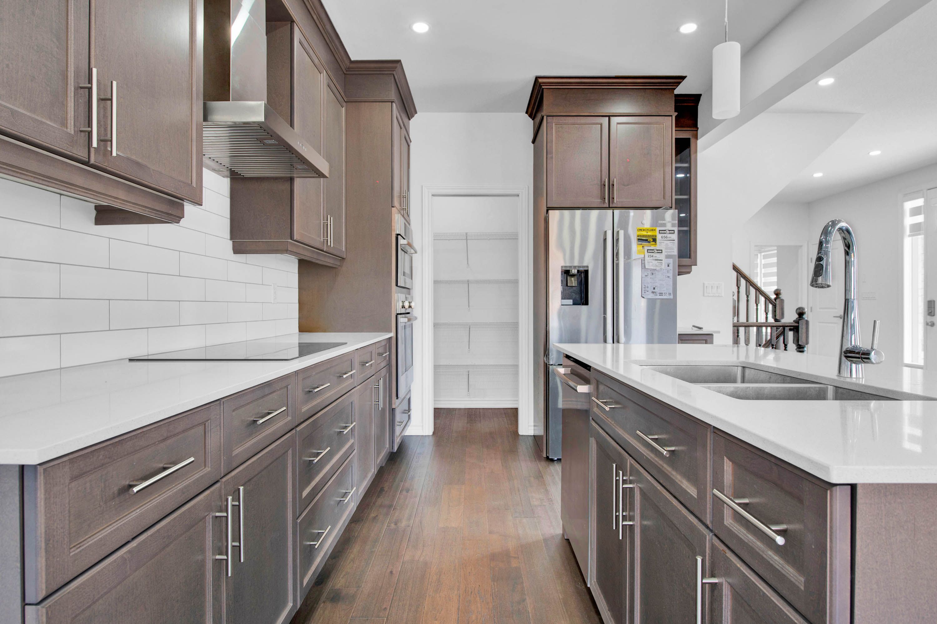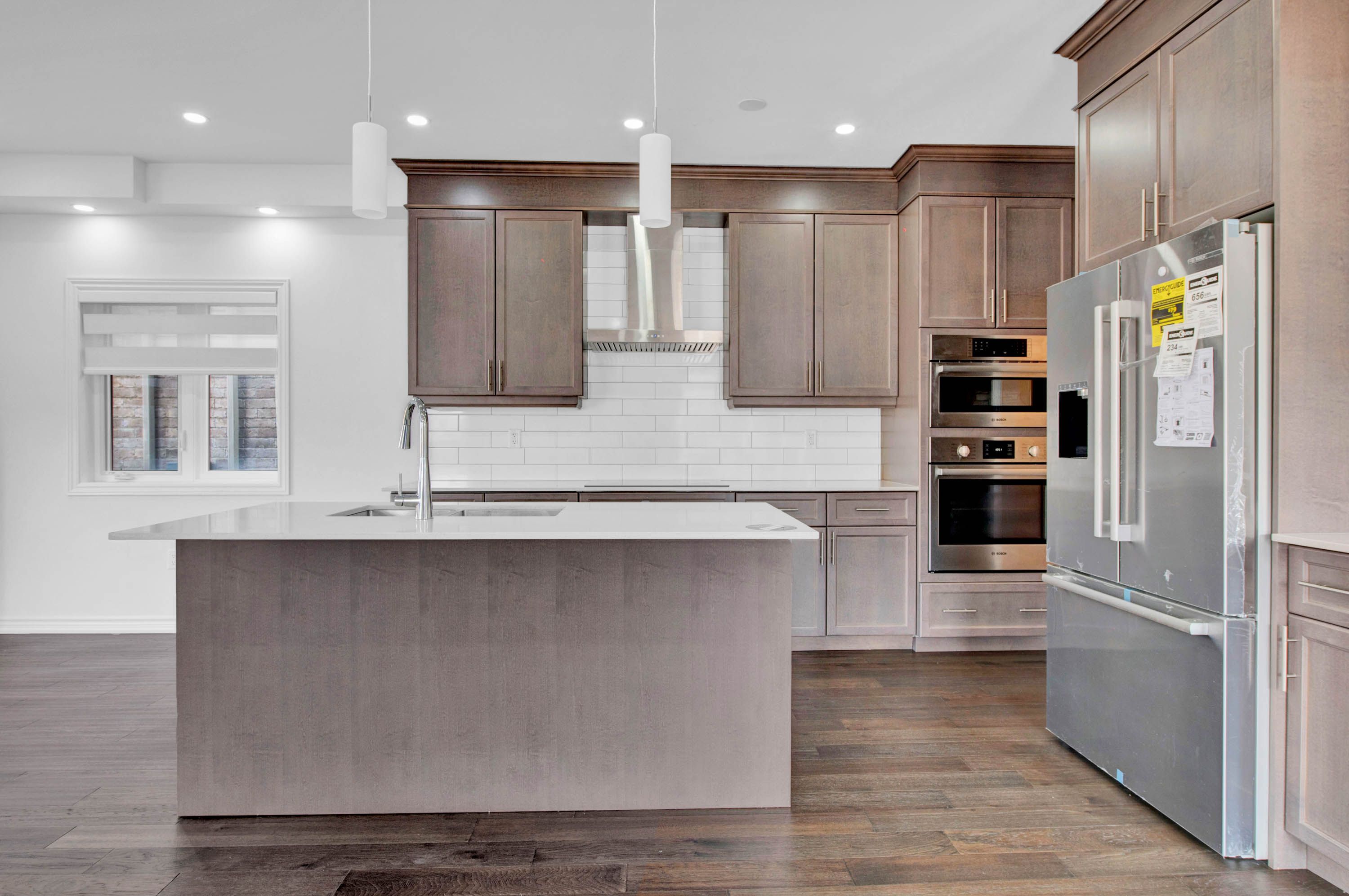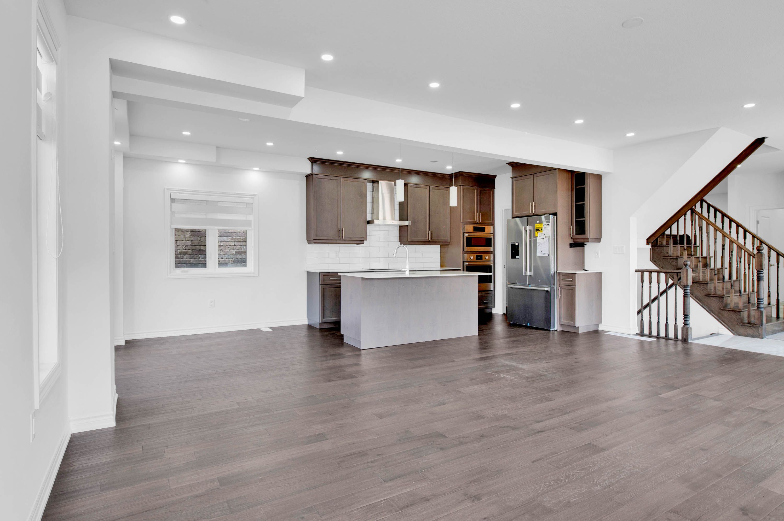 • Open-concept design with hardwood floors and Bosch appliances.