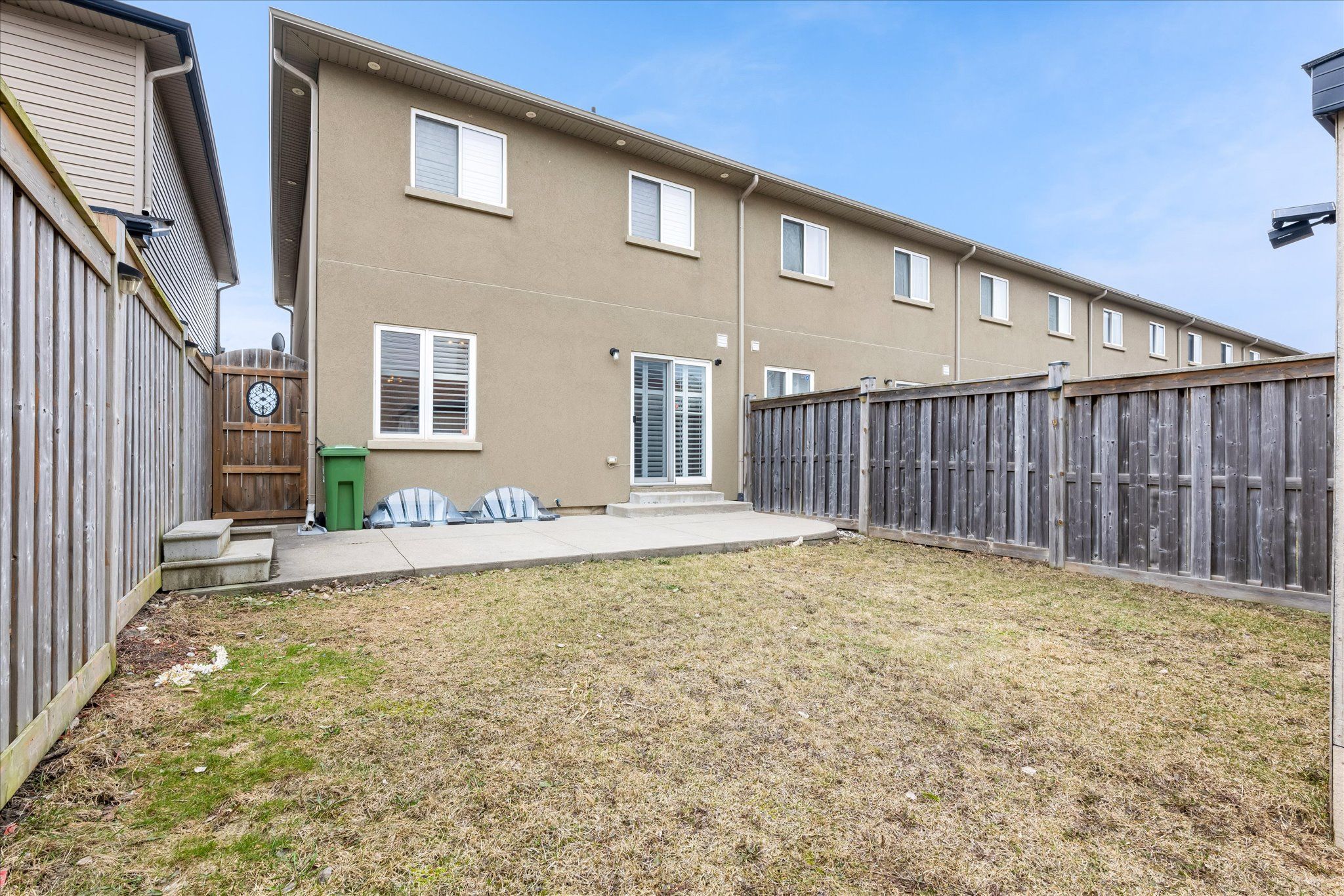 Welcome to this luxurious, bright, and beautifully appointed end-unit townhome, ideally located in the highly sought-after and family-friendly upper stoney creek community. Filled with natural light and showcasing numerous upgrades throughout, this home has been freshly painted and features elegant custom shutters on every window. The main floor offers a practical open-concept layout with a modern kitchen complete with a stylish backsplash, stainless steel appliances, under cabinet lighting and a large island. A hardwood staircase leads to both the second floor and the finished basement, while hardwood flooring adds warmth and elegance to the main floor. The generous primary bedroom features his-and-hers walk-in closets and a 3-piece ensuite. In total, the home offers three bedrooms plus a versatile office/optional fourth bedroom and four bathrooms, providing ample space for families or those working from home. Additional highlights include a finished basement, direct access to the garage, and approximately 1,600 square feet of above-grade living space, plus the finished lower level. Built in 2012, this well-maintained property is conveniently located close to schools, shopping, highways, and all essential amenities. Don't miss this exceptional opportunity to own a stunning home in one of upper stoney creek's most desirable neighbourhoods. The home is currently vacant and ready for immediate occupancy.