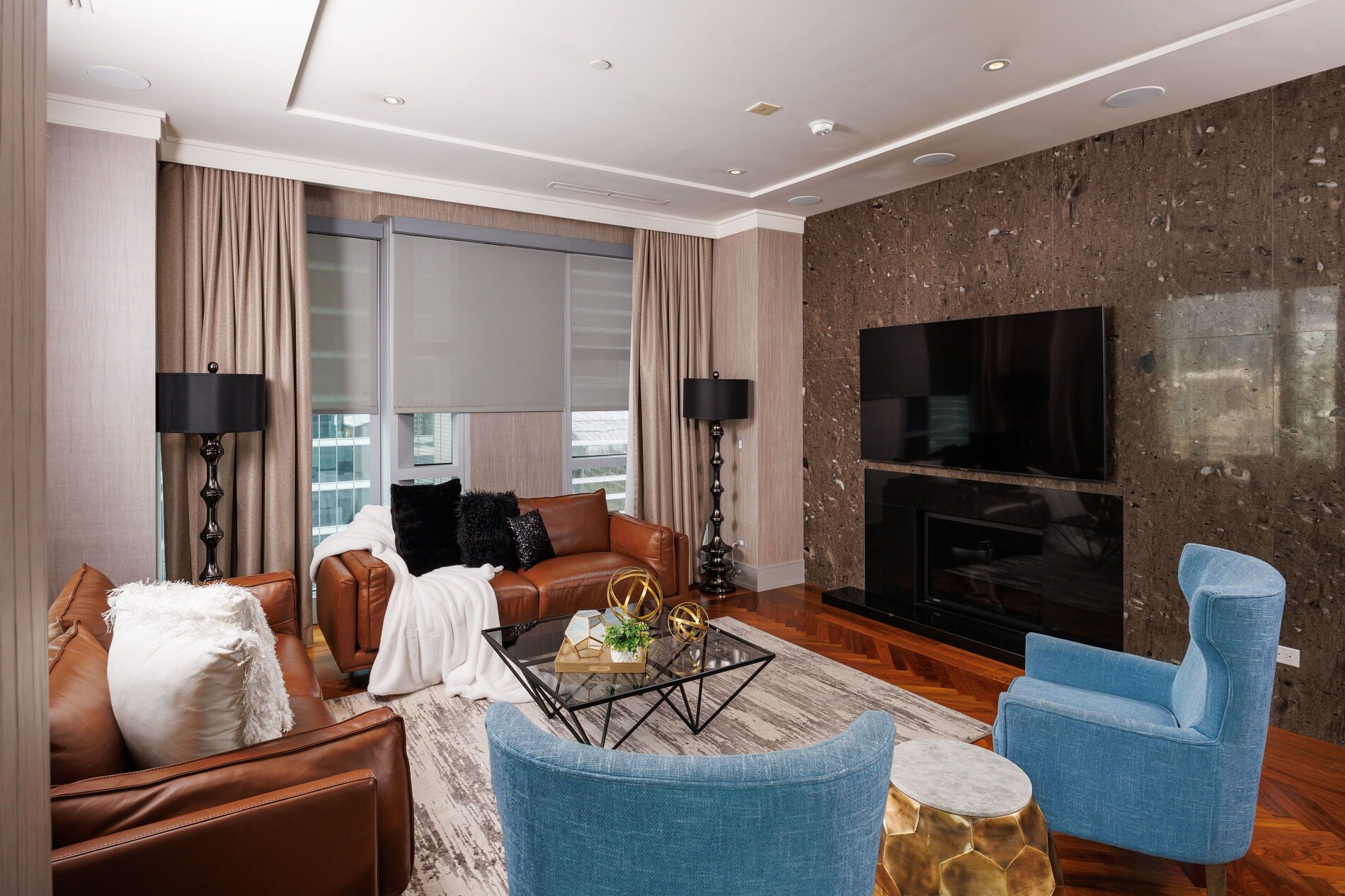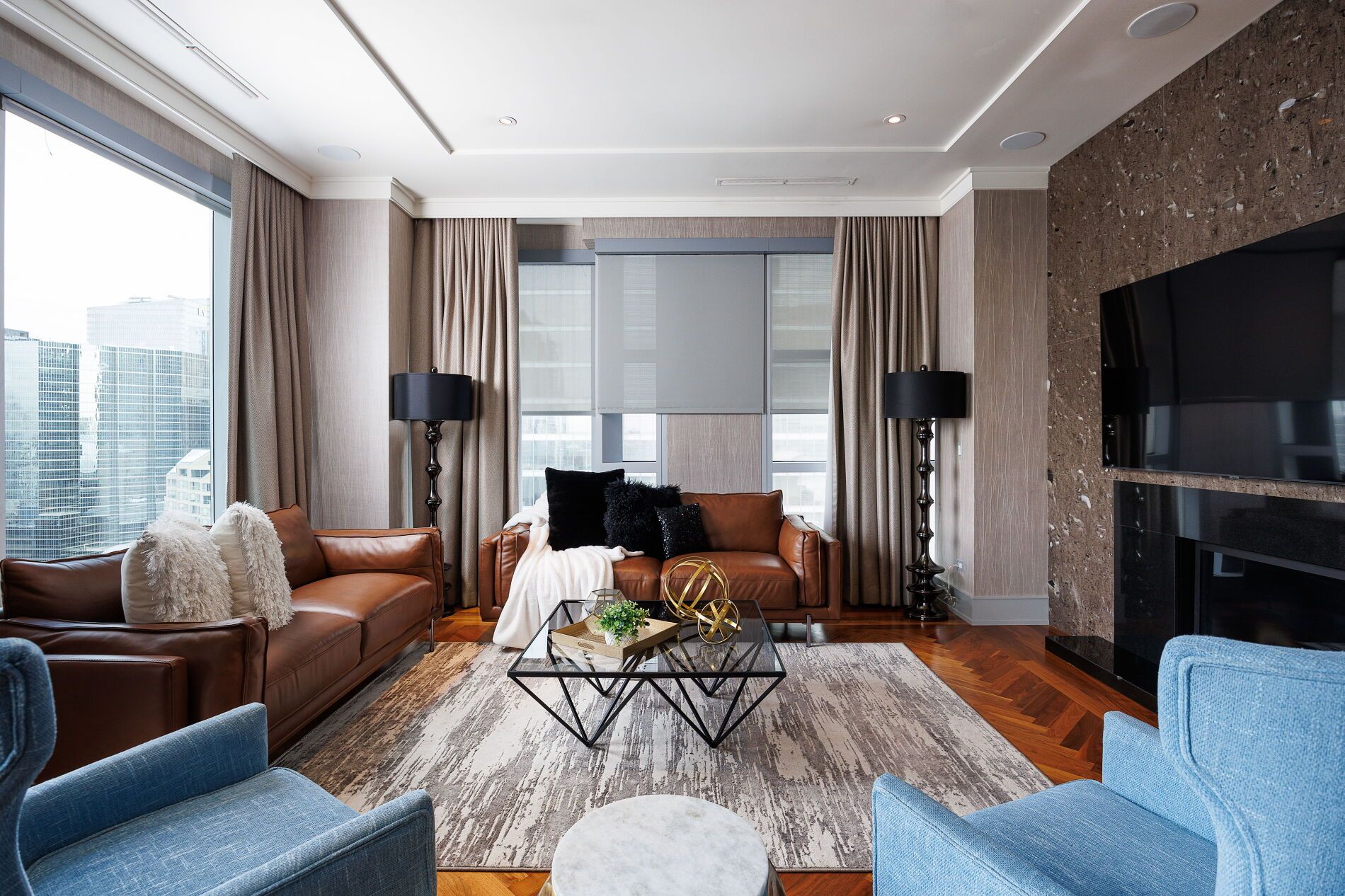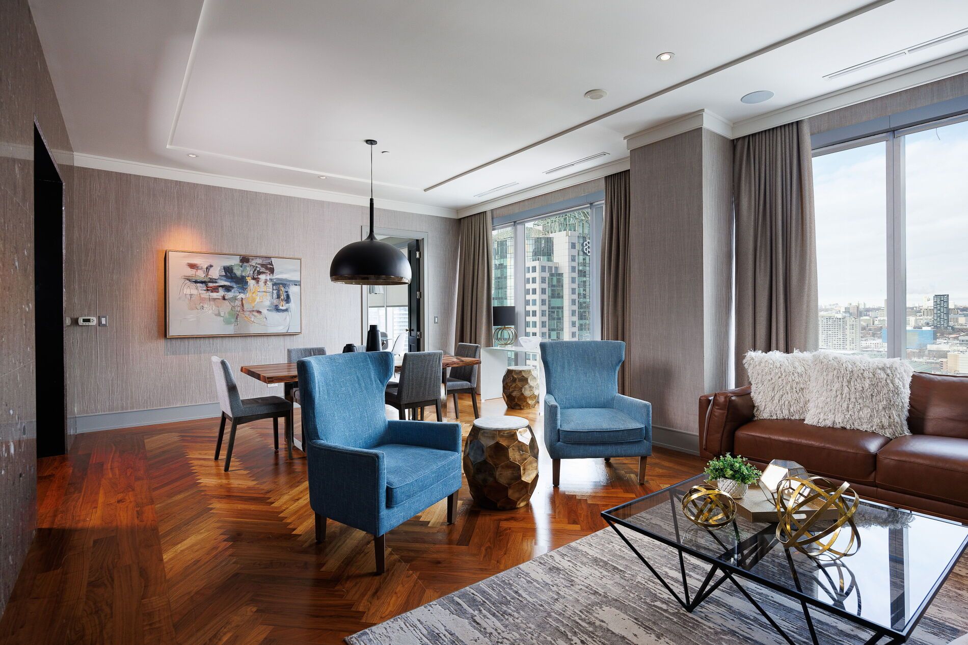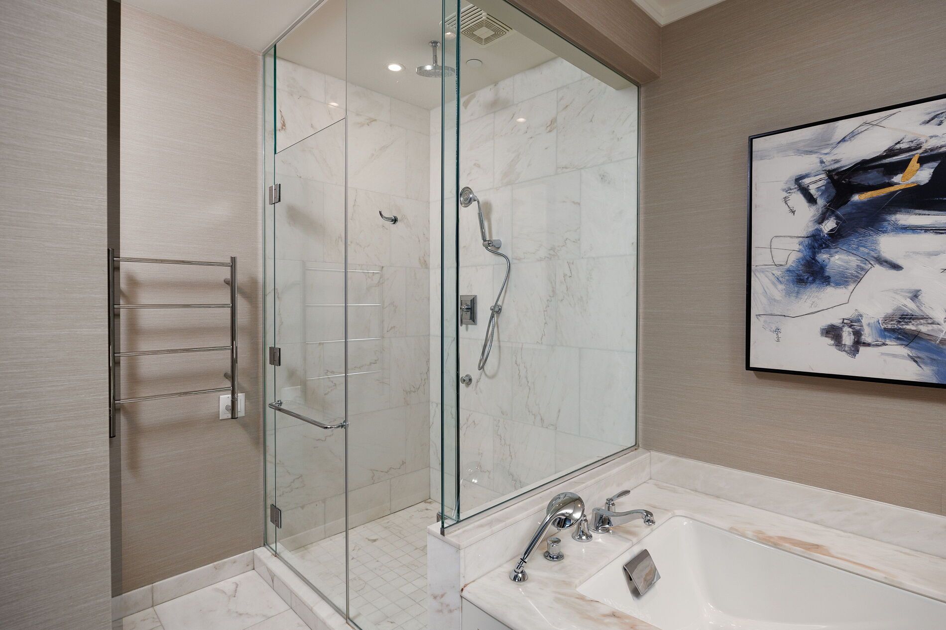 Experience unparalleled luxury and privacy with direct private elevator access to this remarkable executive suite. From the moment you step inside, you'll be captivated by breathtaking city skyline views and an abundance of natural light. This one-of-a-kind residence is adorned with layers of designer finishes, including elegant herringbone floors, a marble-faced gas fireplace, textured walls, custom lighting, and bespoke window coverings. The open-concept, 1675 sqft layout is ideal for entertaining, seamlessly connecting to a high-end chefs kitchen complete with an eat-in breakfast area. Indulge in the world-class amenities of the ritz-carlton residences, including a 24-hour concierge, valet, porter services, a state-of-the-art fitness centre, luxury spa, and an indoor pool. Welcome home to elevated living at its finest.