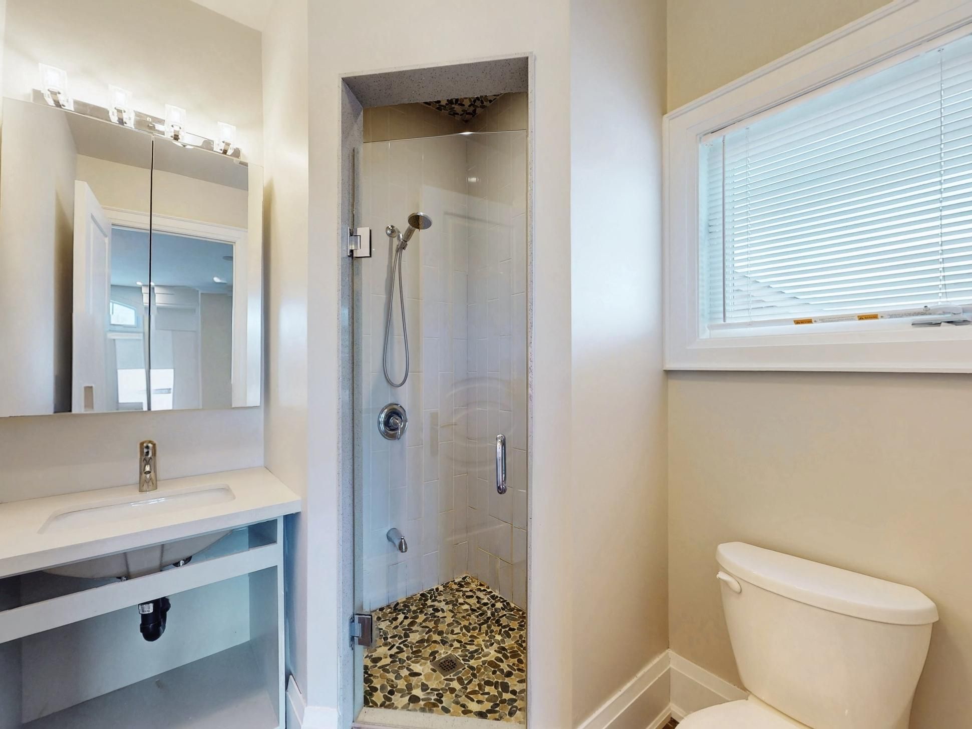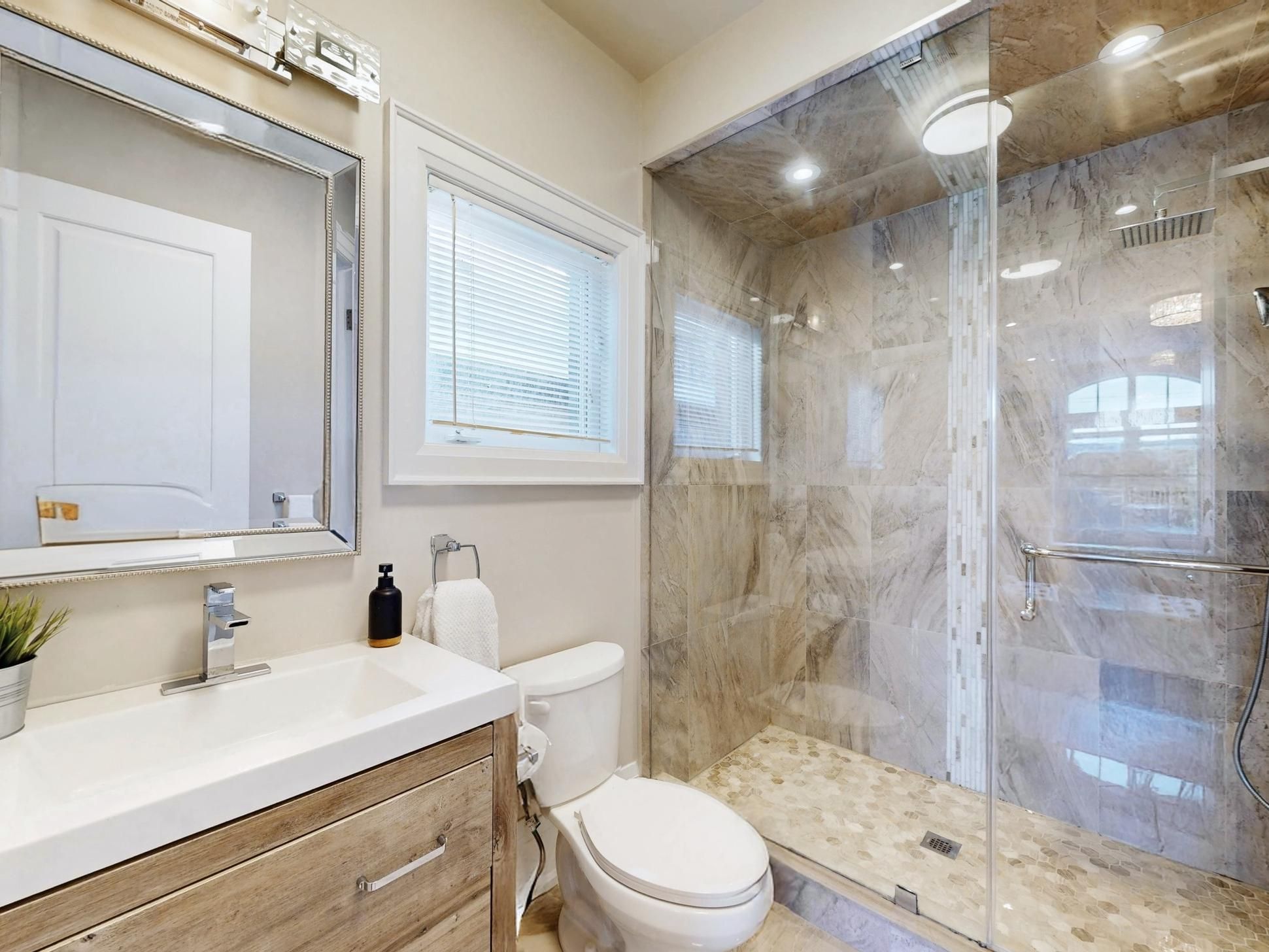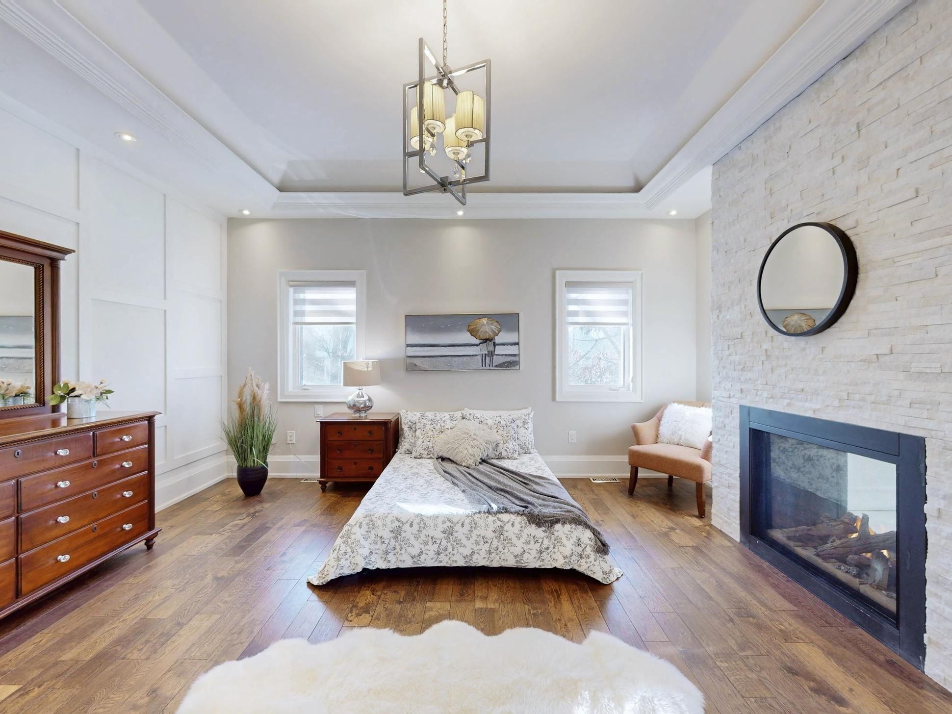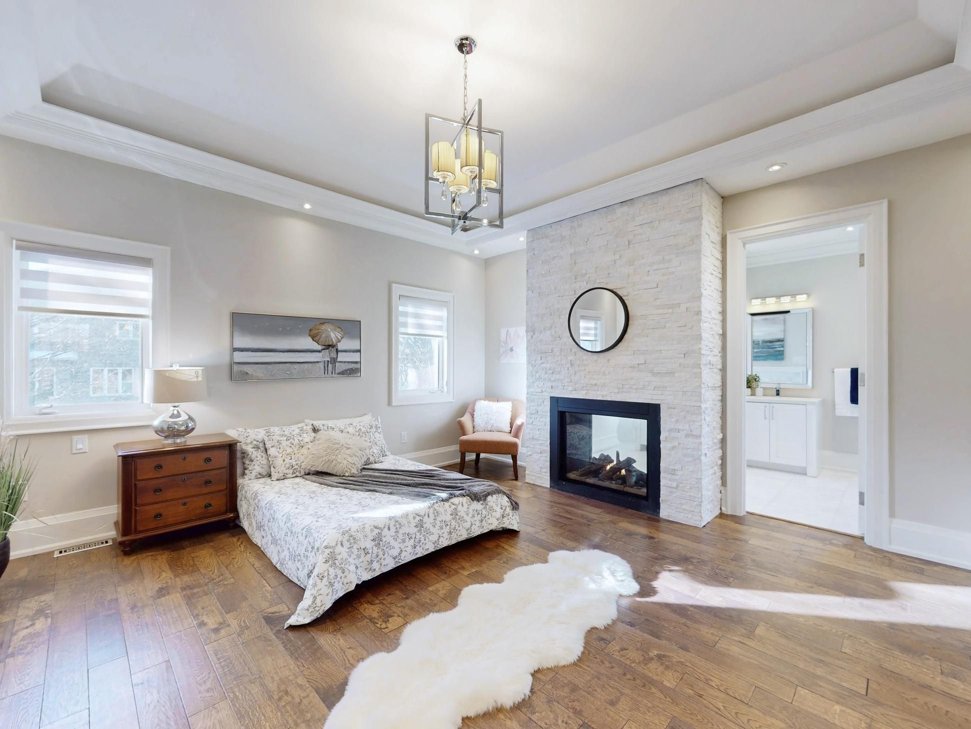• Upper level includes primary suite with a two-sided fireplace and walk-in closet.