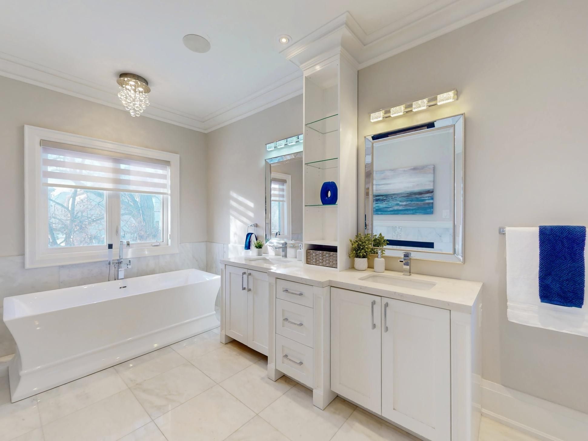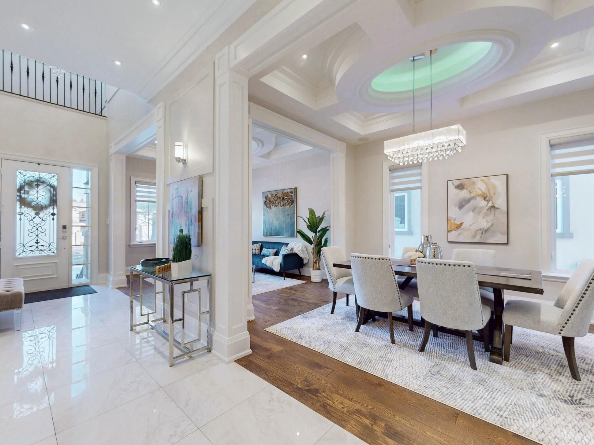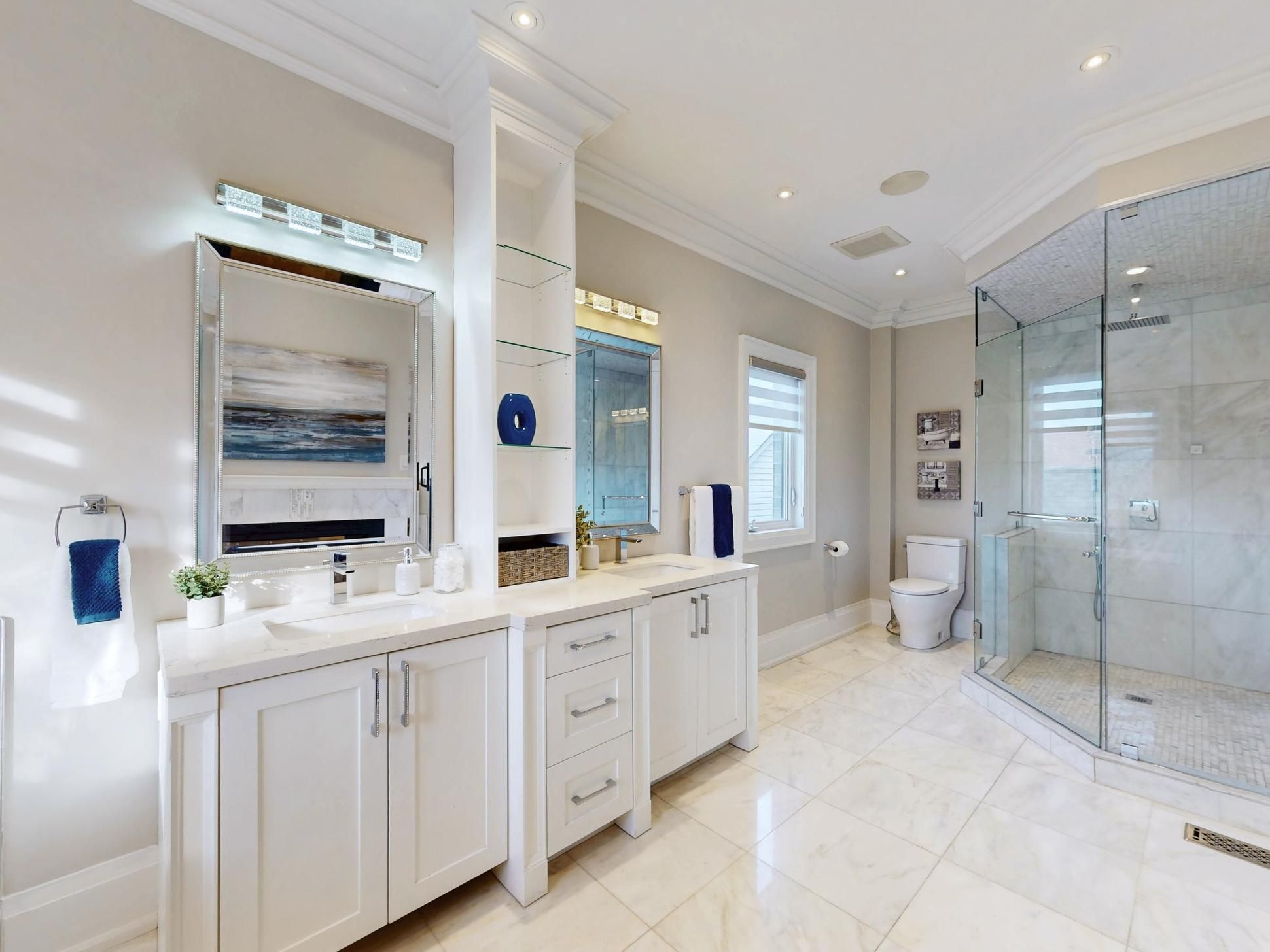 Exceptional custom-built luxury home in pickering's prestigious dunbarton community! This rare 5+3 bedroom, 8 bathroom residence offers 6,000 + sq ft above grade plus a 3,660 sq ft walk-up basement on a 49 x 152 ft lot. Built with a limestone exterior, it features led lighting, built-in speakers, smart-home rough-ins, and hardwood on the main & second floors. The main level boasts 12 ft ceilings, open-concept living/dining, a spacious family room overlooking the backyard, a private office, and an oversized chef's kitchen with a massive island. The upper level features a stunning primary suite with a two-sided fireplace and a custom walk-in closet, plus ensuites in every bedroom. The fully finished walk-up basement offers potential for two in-law suites, each with it's own entrance, plus a secondary kitchen and secondary laundry.