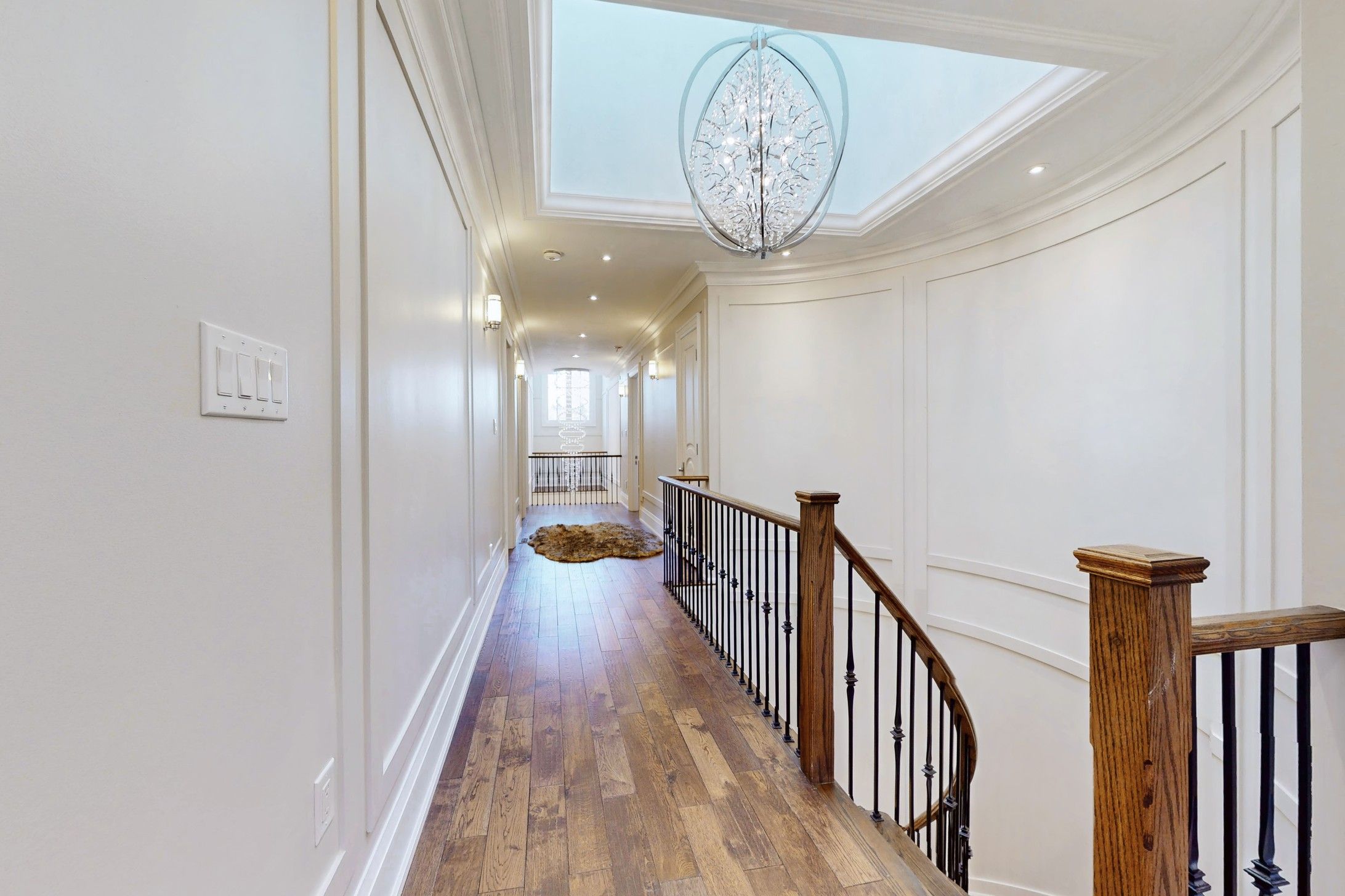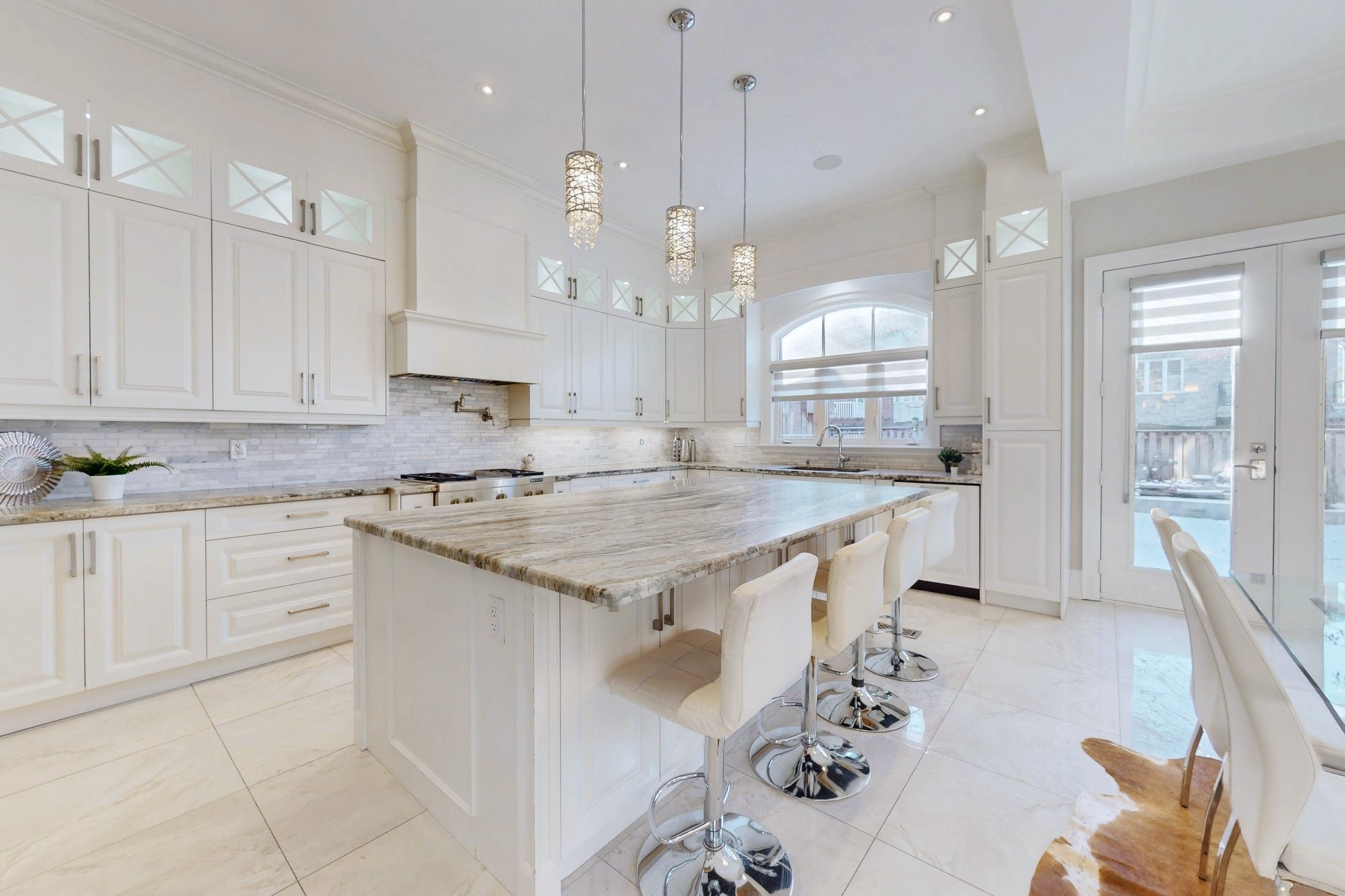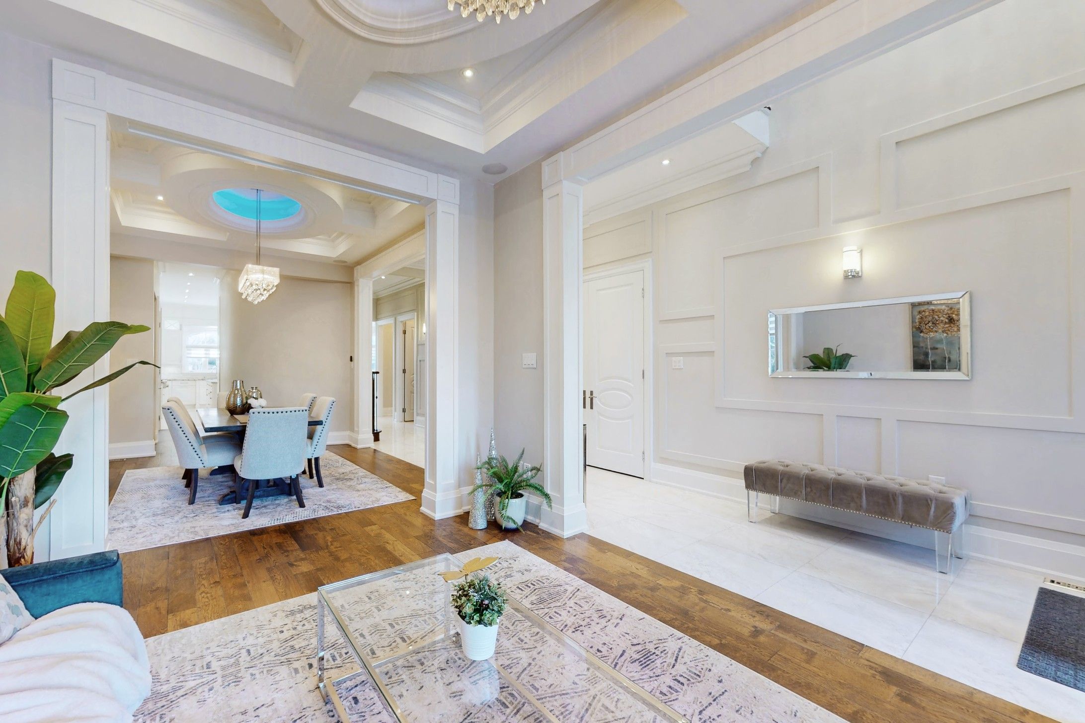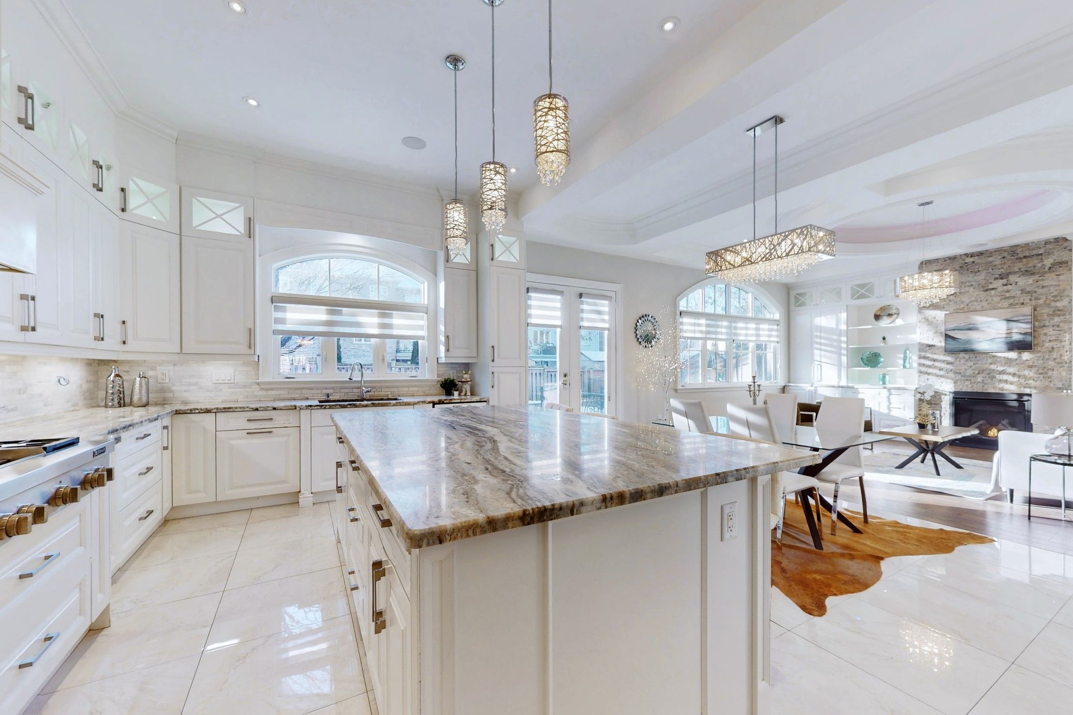 Exceptional custom-built luxury home in pickering's prestigious dunbarton community. This rare 5+3 bedroom, 8-bathroom residence offers over 5,000 sq ft of luxurious space plus a fully finished walk-up basement, situated on a premium 49 x 152 ft lot. Featuring an elegant limestone exterior, the home is thoughtfully designed with led lighting, built-in speakers, smart-home rough-ins, and hardwood flooring throughout the main and second levels. The main floor boasts 11 ft ceilings, an open-concept living and dining area, a spacious family room with backyard views, a private office, and an oversized chef's kitchen with an impressive centre island, ideal for entertaining. The second level showcases a breathtaking primary retreat complete with a two-sided fireplace, spa-inspired ensuite, and a custom walk-in closet. All additional bedrooms feature private ensuites, offering ultimate comfort and privacy. The walk-up basement provides excellent in-law or income potential, with the possibility of two separate suites, each with its own entrance, plus a secondary kitchen and laundry. A truly exceptional home offering luxury, space, and versatility in one of pickering's most sought-after neighbourhoods.