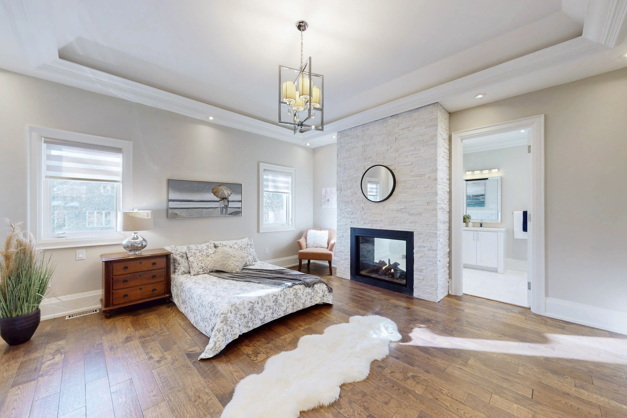• Luxurious primary retreat with a spa-inspired ensuite and fireplace.