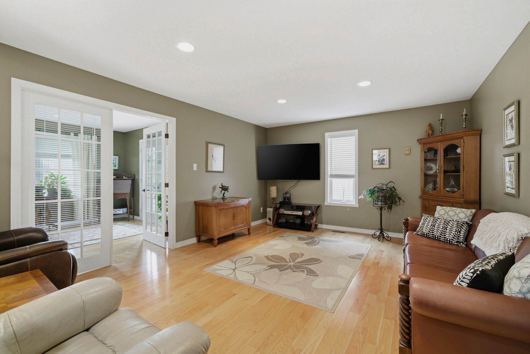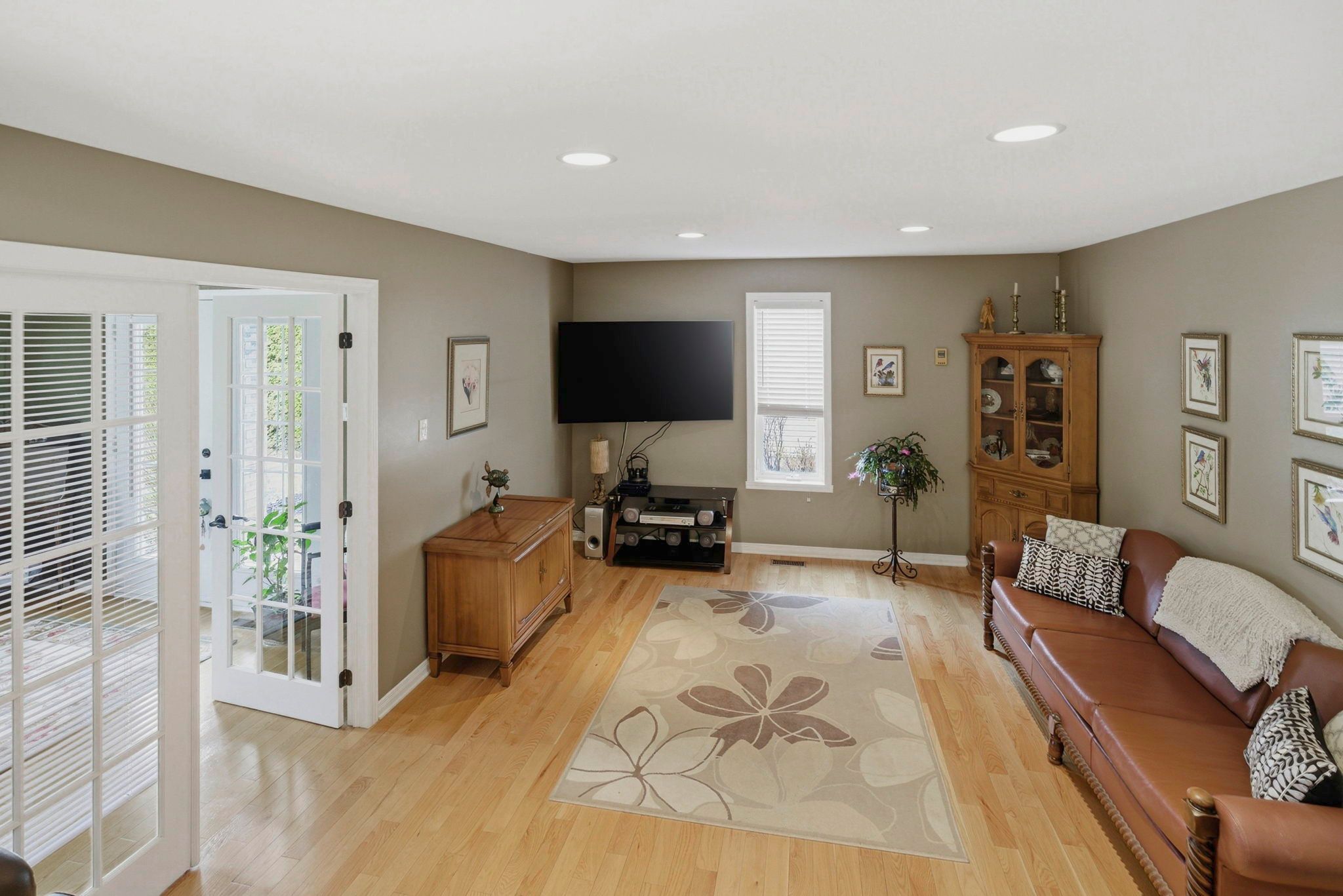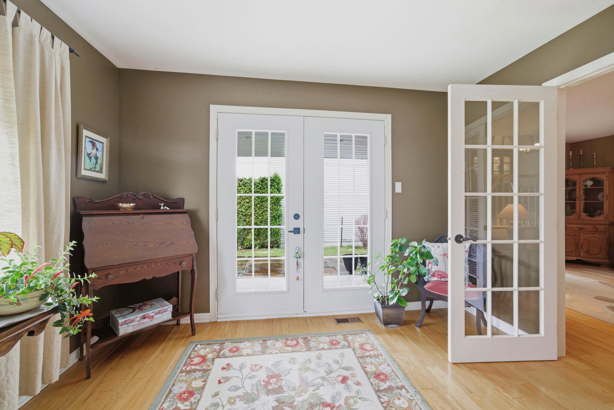 • Bright four-season sunroom overlooks a spacious private backyard.