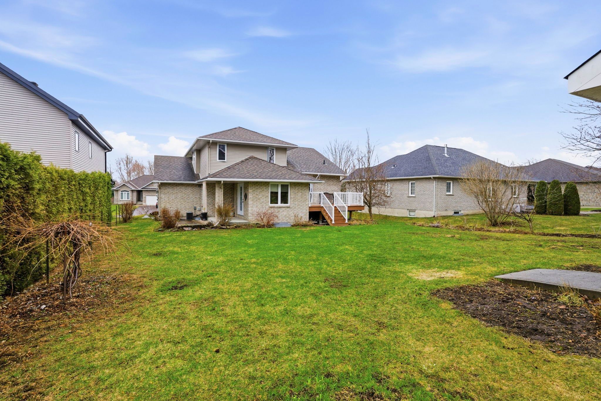Welcome to this beautifully maintained 2-storey 3+1 bedroom side split, perfectly positioned on a manicured lot in one of the area's most established subdivisions. Just steps from the st. Lawrence river lifestyle and minutes to cornwall, this home offers the ideal balance of community charm and everyday convenience. Inside, you're greeted by a warm and inviting living room featuring a gas fireplace and soaring vaulted ceilings. The formal dining area with a built in china cabinet flows seamlessly into a gourmet kitchen complete with a breakfast island-designed for both entertaining and everyday living. The spacious family room opens through elegant french doors to a bright four-season sunroom, creating a perfect retreat to relax year-round while overlooking the private backyard. Upstairs, you'll find three generously sized bedrooms with ample closet space, along with a beautifully appointed 5-piece bathroom featuring a tiled soaker tub and separate shower. The partially finished basement adds versatility with a recreation room, a fourth bedroom or home office, a 3-piece bathroom with laundry, plus utility and additional storage space. Step outside and enjoy the outdoors -complete with a rear composite deck, stone patio, and a large garden shed-all set within a spacious backyard perfect for the growing family. Additional features include a double car garage, paved driveway, natural gas furnace, central a/c, municipal services, and reliable power supplied by cornwall electric. Ideally located just 10 minutes to cornwall, 50 minutes to montreal, and close to the waterfront trail, golf and country club, and endless recreational amenities. A place where everyday living feels just a little more exceptional. As per seller direction allow 24 hour irrevocable on offers.