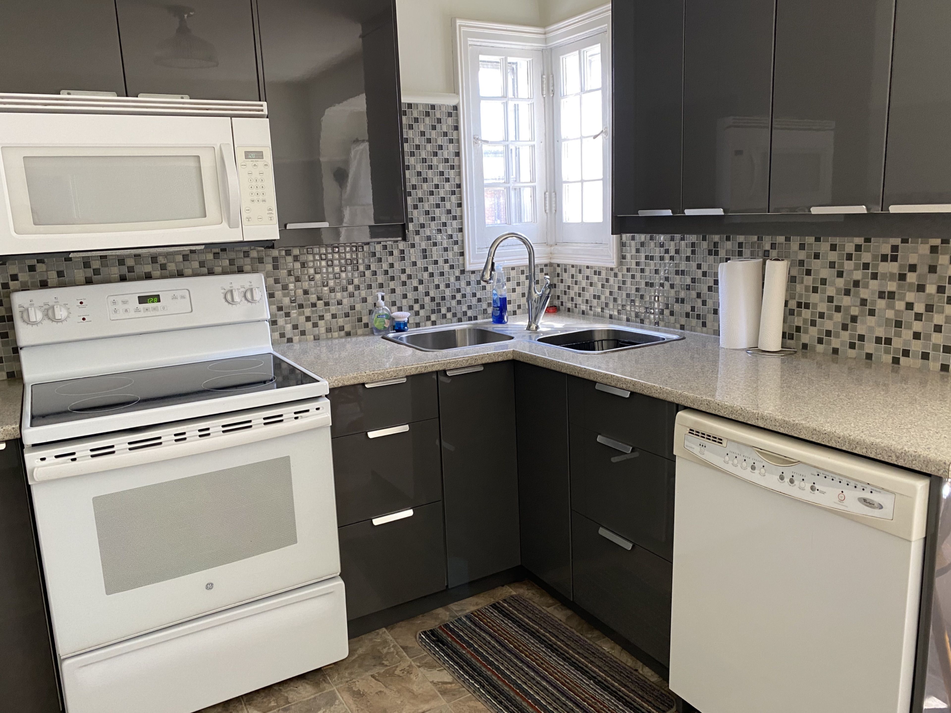 • Functional kitchen with a bright breakfast sitting area.