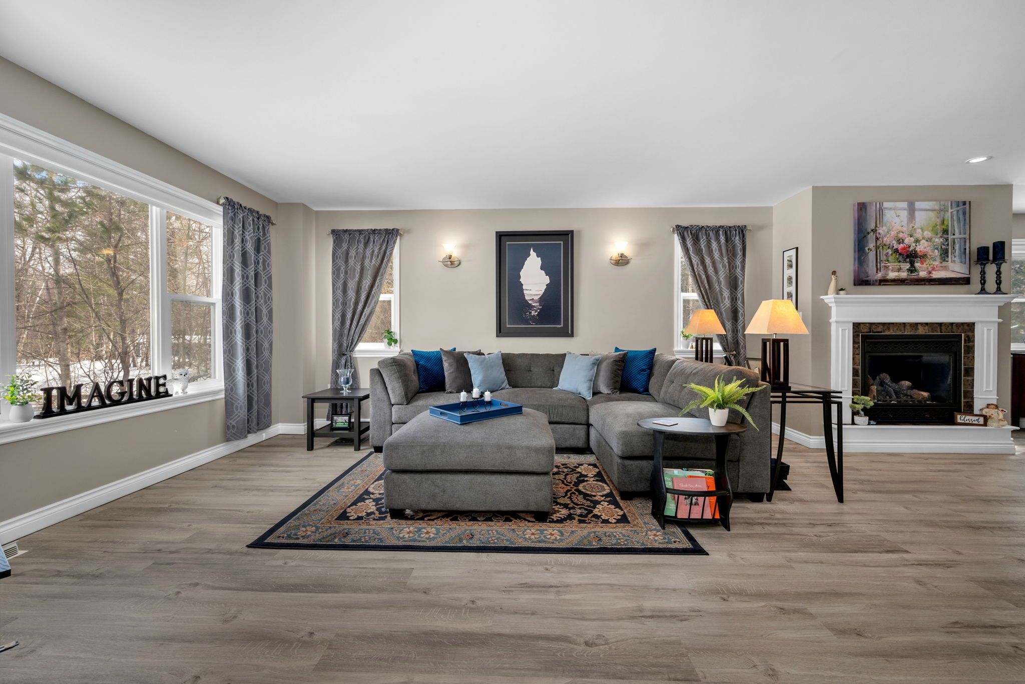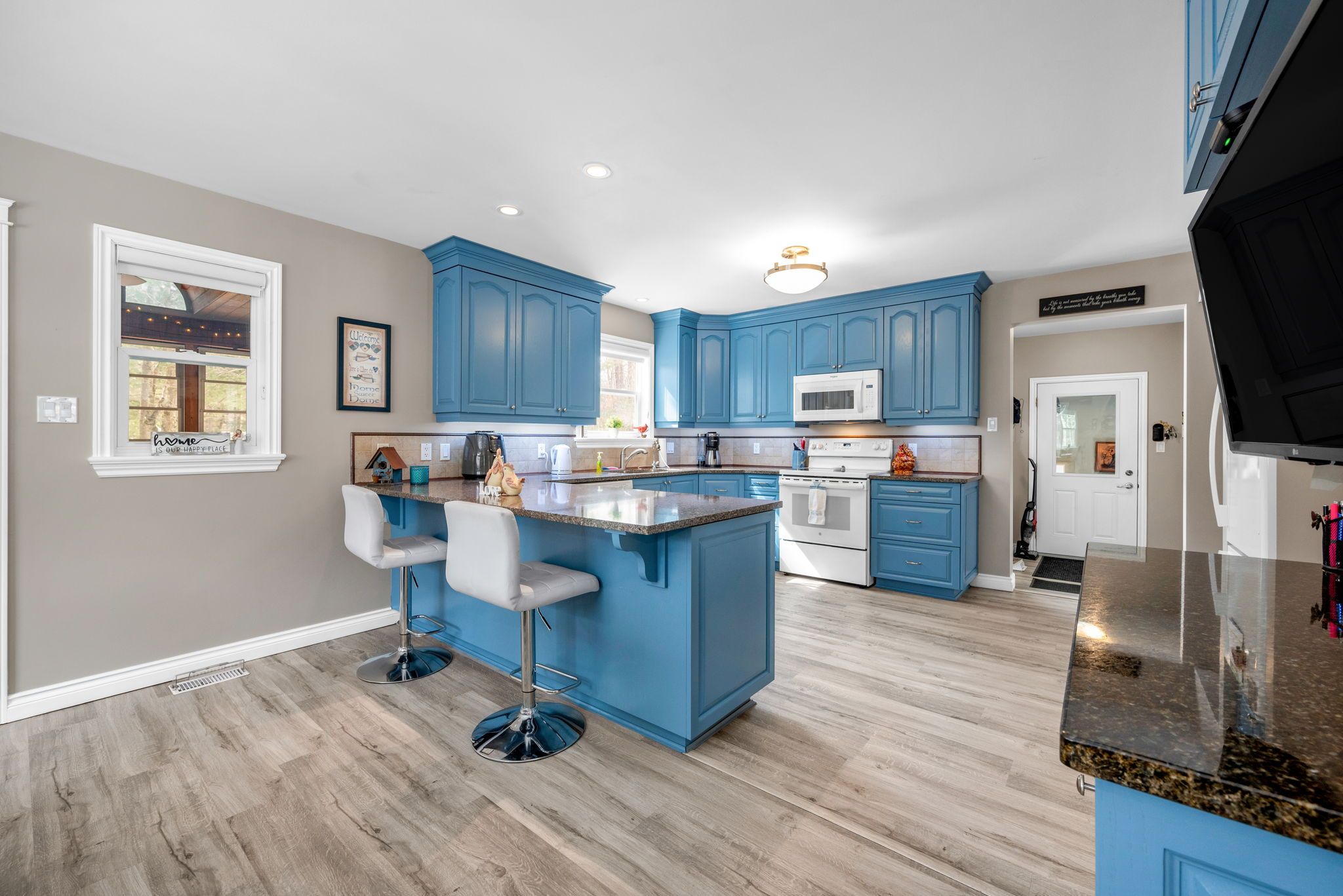 • Bright and spacious layout with a stunning kitchen and natural gas fireplace.