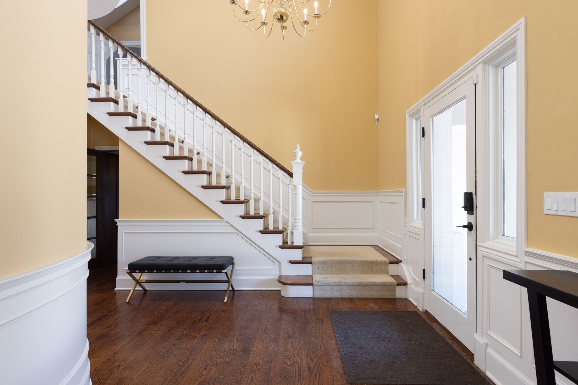 • Grand foyer with 18-ft ceilings, leading to a light-filled living space.