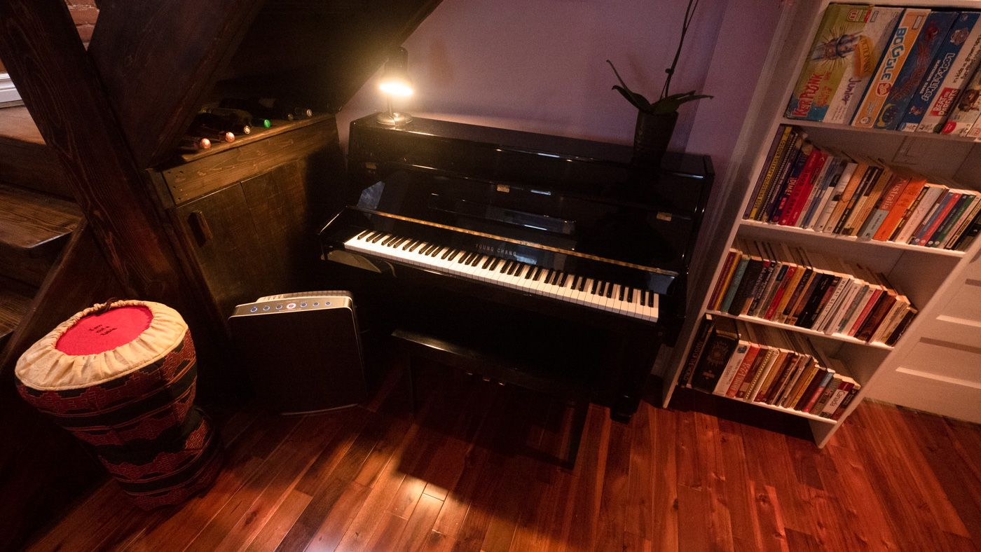 • Exposed brick and wood floors add character and charm.