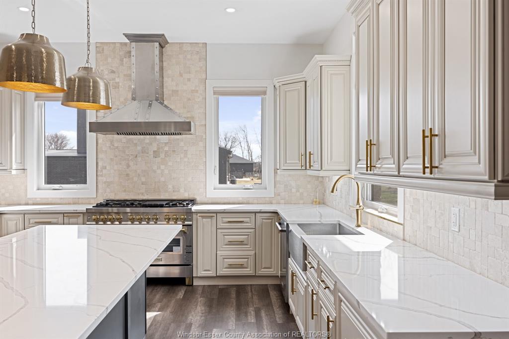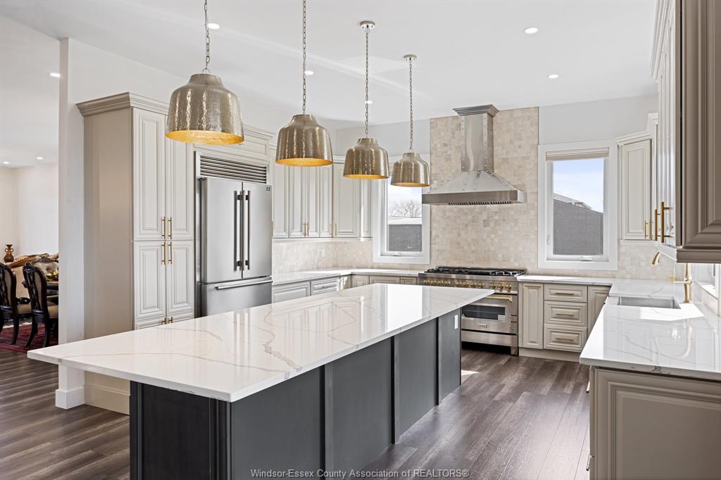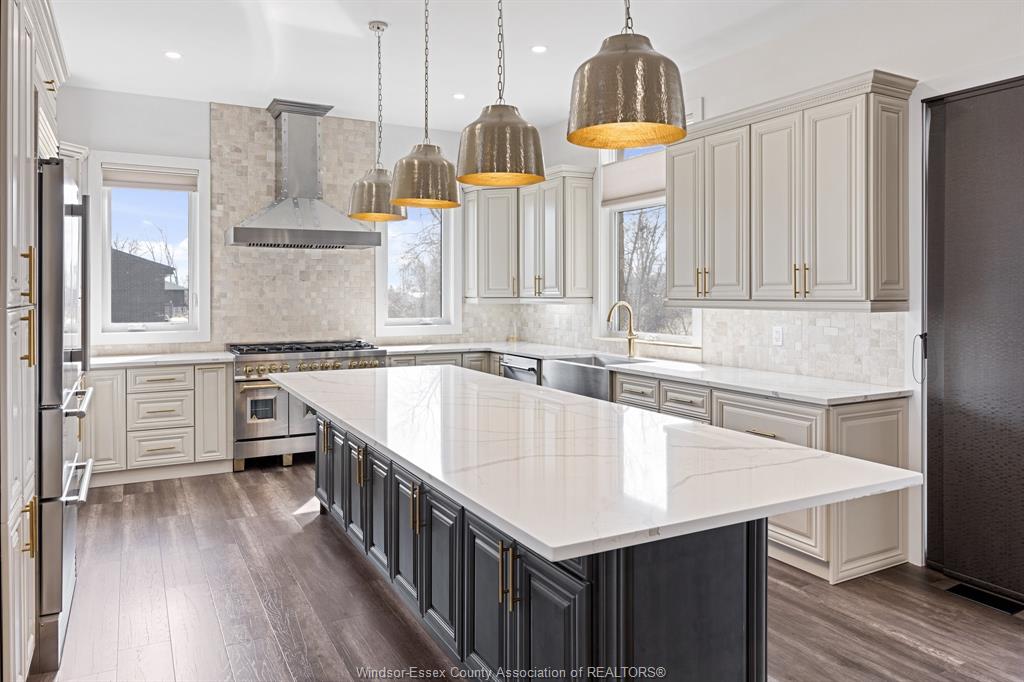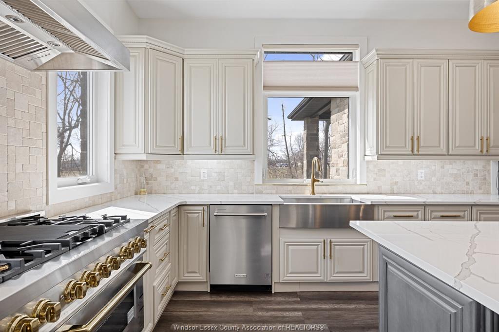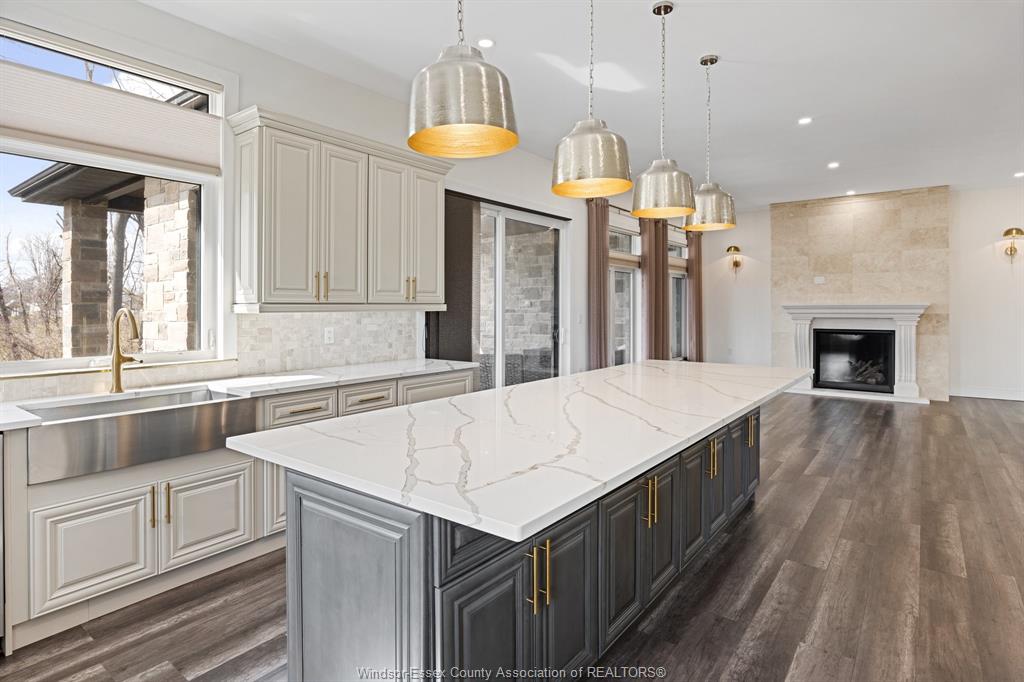Welcome to 184 grandview ave - a custom-built ranch (2022) on an impressive 81 x 161 ft lot in one of kingsville's most prestigious neighbourhoods. Offering over 2, 800 sq ft on the main floor plus a fully finished walkout lower level, this home is ideal for large or multi-generational families. The open-concept layout features 10-ft ceilings, large windows, and expansive living and dining areas. The chef's kitchen offers quartz counters, custom cabinetry, and a large island overlooking the family room with gas fireplace. The walkout lower level includes 4 bedrooms, second kitchen, family room, full bath, and grade entrance. Situated on a premium lot in a highly desirable area offering strong long-term value. Close to trails, wineries, and the waterfront.