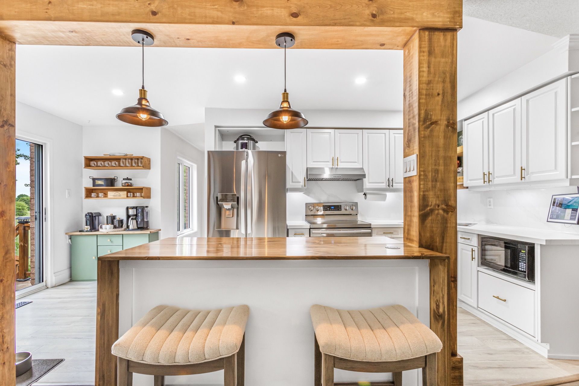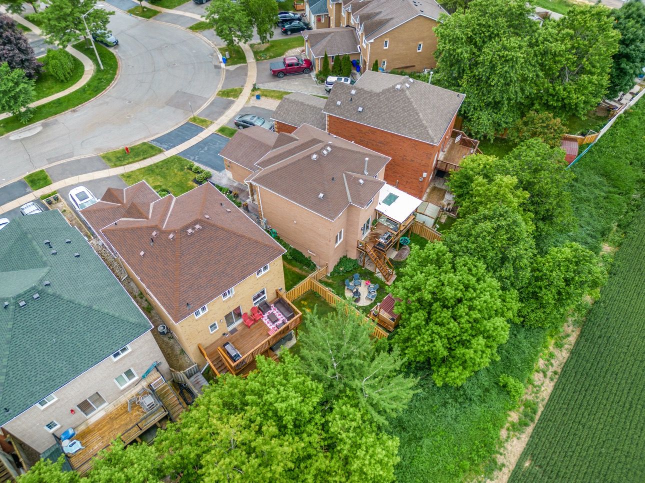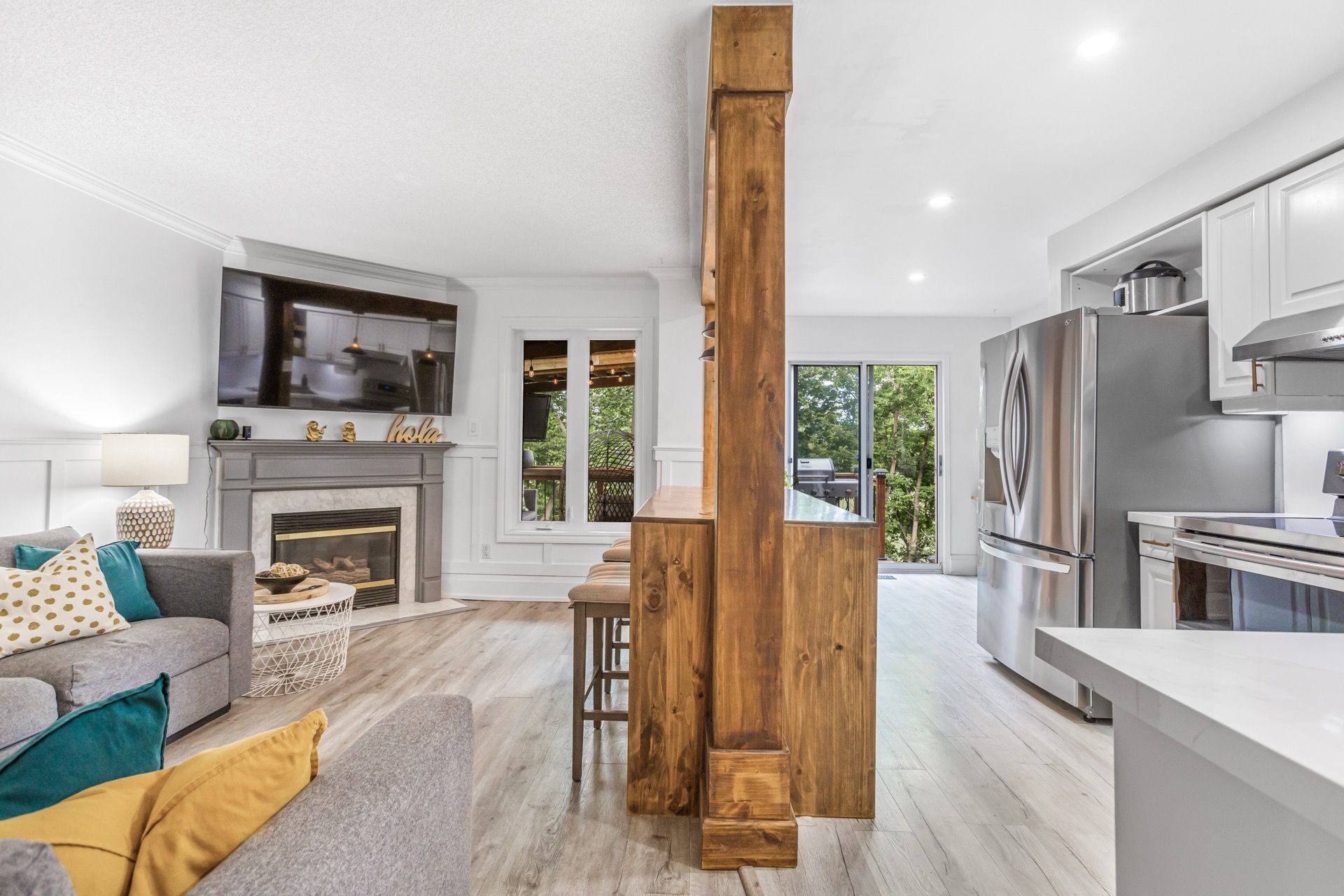 **watch virtual tour** nestled in one of orangeville's most desirable family neighbourhoods, this beautifully upgraded 4-bedroom, 4-bath detached home backs onto a serene park - offering privacy and tranquility with no rear neighbours. Just steps to island lake school and the hospital, and moments from hwys 9 & 10, its a commuter's dream! The open-concept main floor features a spacious eat-in kitchen with quartz countertops, custom cabinetry, and a walkout to a covered deck. The cozy family room offers a gas fireplace and custom maple beam accents. Convenient main floor laundry and inside access to the garage add to the homes functionality. Upstairs, find generously sized bedrooms, including a primary suite with a renovated ensuite and custom-built closets. The fully finished walk-out basement includes a kitchenette, entertainment wall, and custom murphy bed - perfect for guests or extended family. Extensive updates throughout: new flooring, lighting, custom carpentry, wainscoting, and more. Move-in ready with impeccable attention to detail inside and out! Extensive exterior upgrades include front and rear landscaping, a custom firepit area with clubhouse, interlock with a front seating area, and outdoor lighting. The deck was fully rebuilt with new railings, stairs, foundation, and tv wiring. Inside, enjoy a redesigned kitchen with added cabinetry, a coffee bar, and stainless steel appliances. A wall was removed to improve flow, and a kitchen island added. Additional main-floor updates include upgraded powder room, custom storage bench, stair railings, and accent walls.