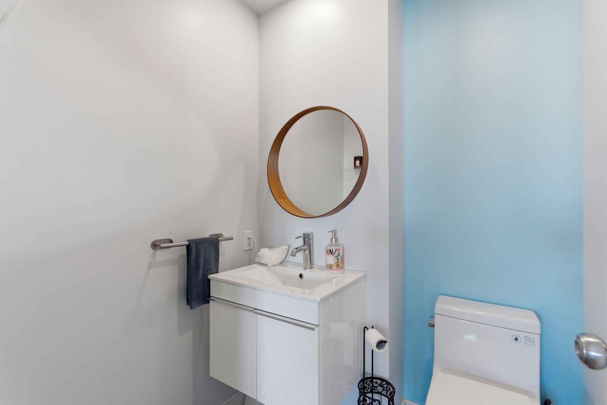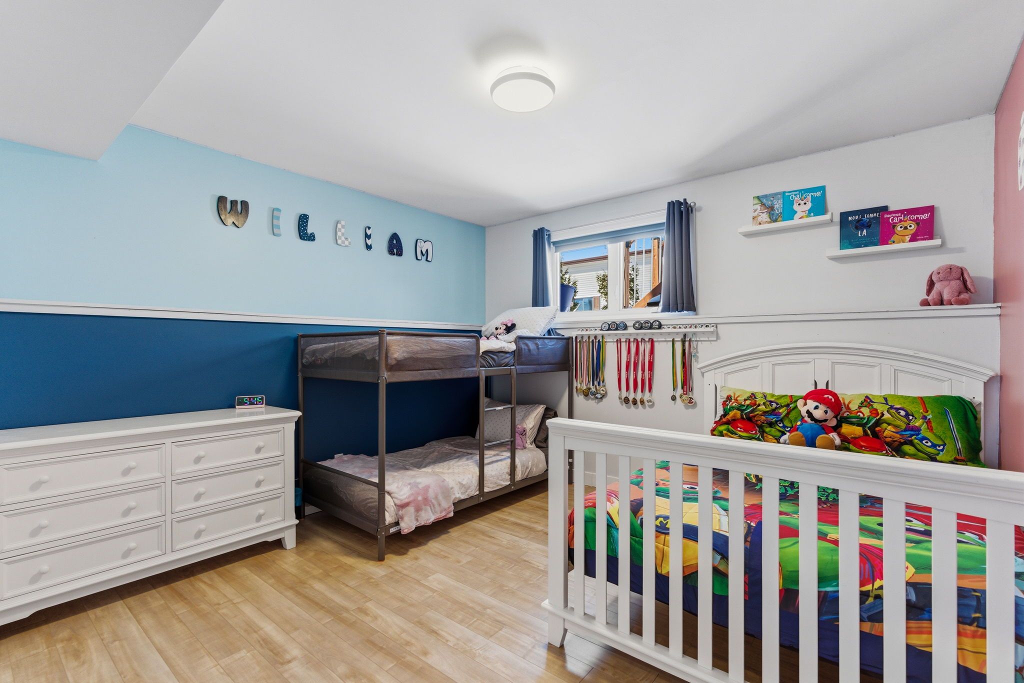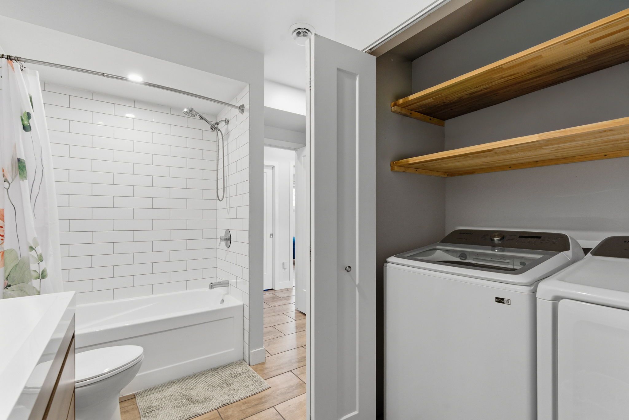 • Two spacious bedrooms with oversized closets and a full bathroom downstairs.