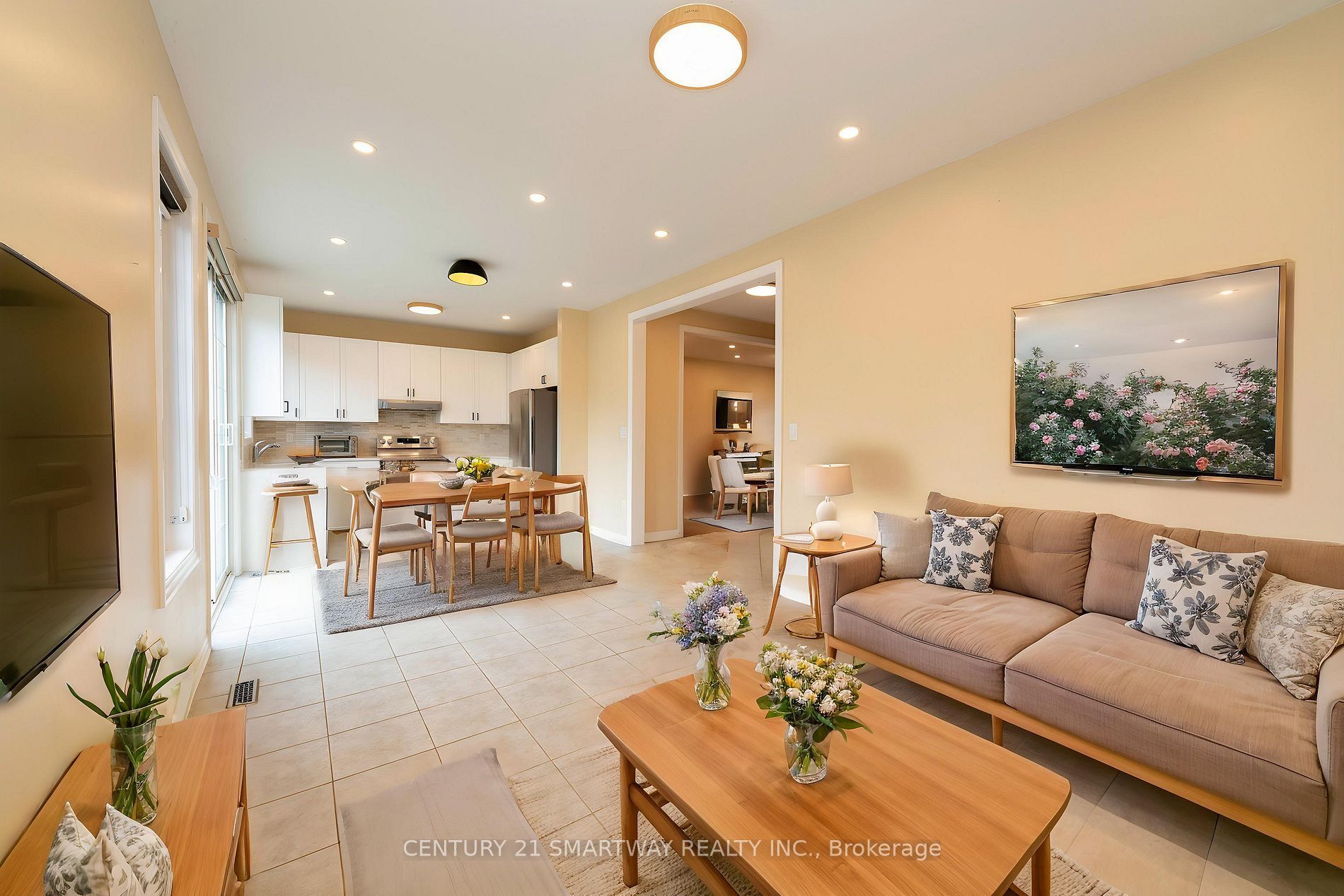 • Spacious open concept main floor with modern kitchen and family room.