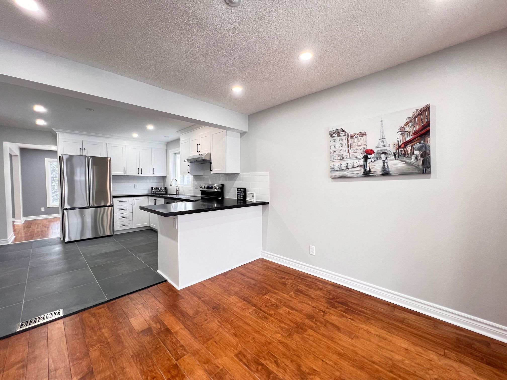 Welcome to 184 pinetrail cr, ideally located in the heart of centrepointe. This beautifully renovated detached family home features hardwood flooring throughout and a spacious breakfast area with a charming bay window. The gourmet kitchen boasts luxurious quartz countertops, a large sink, a breakfast bar, and brand-new stainless steel appliances, including a fridge, stove, hood fan, and dishwasher. The main floor family room offers a cozy fireplace, perfect for relaxing evenings. The dining room overlooks a private, southwest-facing backyard surrounded by mature hedges, complete with a large deck ideal for entertaining family and friends. Main floor laundry room. Upstairs, the spacious primary bedroom includes his and her closets and a four-piece ensuite, while the second bedroom features a walk-in closet. 3rd bedroom with large window. Main bathroom with lighted mirror and quartz counter top. The fully finished lower level offers in-law suite with a recreation room, an additional bedroom, a full bathroom, and ample storage space. Conveniently located with quick access to shopping malls, recreation centers, entertainment, library, theatre, and public transit-just 10 minutes to downtown. New furnace.