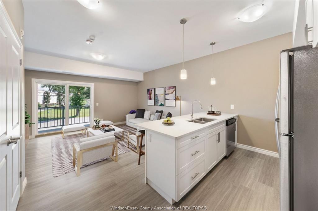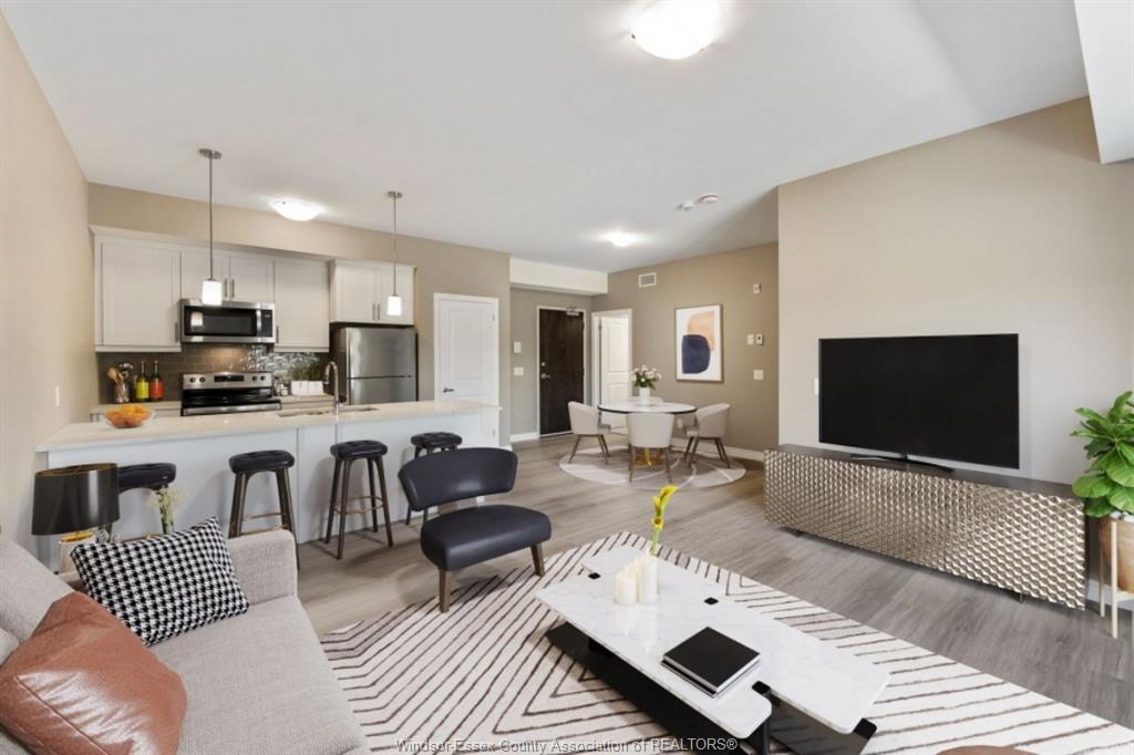 Experience luxury living in this 4y village south condominium. This 2nd-floor, 1,200 sqft unit in a boutique 3-storey building offers 2 spacious bedrooms and 2 full bathrooms. Featuring an open-concept kitchen with contemporary cabinetry, quartz countertops, and an upgraded premium stainless steel appliance package, this home blends modern style with functionality. Enjoy hard-surface flooring throughout, a generous primary suite with walk-in closet and ensuite, in-suite laundry, and a private balcony with metal railing. Building amenities include elevator, accessible parking, and visitor parking. Price includes water, water heater, one parking space, and exterior/grounds maintenance. Conveniently located with a bus stop at division & woodward, walking distance to devonwood conservation area, and just minutes from the new battery plant, amazon warehouse, schools, parks, shopping, restaurants, highway 401, and airport.