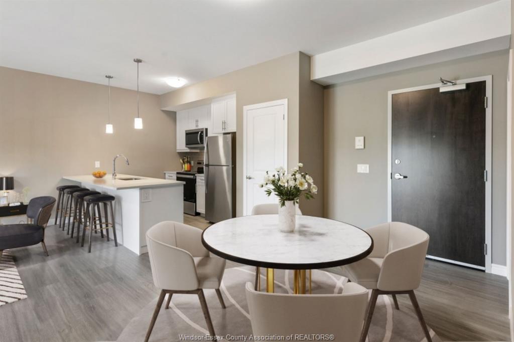 Experience luxury living in this 4y village south condominium. This top-floor, 898 sqft unit in a boutique 3-storey building offers 1 spacious bedrooms and 1. 5 bathrooms. Featuring an open-concept kitchen with contemporary cabinetry, quartz countertops, and an upgraded premium stainless steel appliance package, this home blends modern style with functionality. Enjoy hard-surface flooring throughout, a generous primary suite with walk-in closet and ensuite, in-suite laundry, and a private balcony with metal railing. Building amenities include elevator, accessible parking, and visitor parking. Price includes water, water heater, one parking spot #13, and exterior/grounds maintenance. Conveniently located with a bus stop at division & woodward, walking distance to devonwood conservation area, and just minutes from the new battery plant, amazon warehouse, schools, parks, shopping, restaurants, highway 401, and airport.