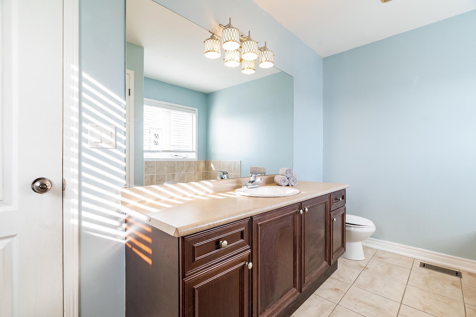 Top 5 reasons you will love this home: 1) from the moment you step inside, the main level's 9' ceilings and rounded corners, create a refined, contemporary ambiance, alongside the gleaming, rich hardwood floors in the living room complementing the elegant wrought-iron railings, infusing warmth and character throughout the space 2) beautifully designed kitchen featuring granite countertops, stainless-steel appliances, under-cabinet lighting, pots & pans drawers, and an extra-deep pantry for exceptional storage, plus a walkout to the upper deck with stairs leading to the yard, perfect for entertaining or relaxing outdoors 3) retreat to the upper level family room, offering a dramatic cathedral ceiling, a cozy gas fireplace, and matching cathedral windows that flood the space with natural light, creating a versatile area ideal for a media room, home office, extra bedroom, or a creative space 4) discover the private primary bedroom featuring dual closets for effortless organization and an ensuite featuring a relaxing soaker tub and a separate shower 5) peacefully set just moments from parks, beaches, and top-rated schools, delivering comfort, timeless elegance, and everyday convenience into one truly remarkable package. 1,855 above grade sq. Ft. Plus an unfinished basement.