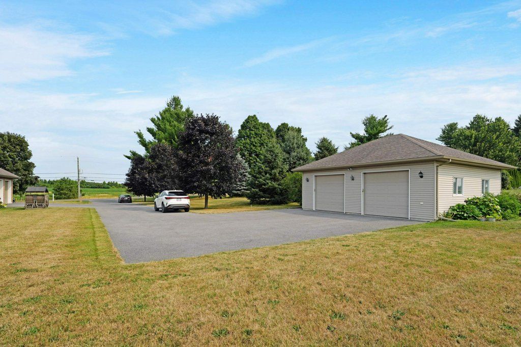 Minutes east of cornwall, this beautifully maintained executive bungalow offers the perfect balance.... Quiet country living and convenient access to town. This home was built by a master builder and has been meticulously cared for. The main level offers over 2,700 square feet of well-designed living space, creating a layout that is both comfortable and functional. The kitchen provides plenty of cabinetry/granite counter-tops, with access to a dining room and a bright sunroom overlooking the rear yard . The living room offers a warm and inviting atmosphere highlighted by a cozy fireplace. The main floor features three bedrooms, including a spacious primary bedroom with a walk-in closet and ensuite bath. There are 2 other good sized bedrooms on the west wing of the house with a 4pc bath. A two-piece powder room and laundry area are situated just off the mudroom with access to the oversized attached double garage and access to the basement. The basement is unfinished that offers excellent potential for additional bedrooms,( there is a rough-in for a bath) and extended living space. The exterior is equally impressive with its all-brick construction designed for long-term peace of mind and easy maintenance. The rear yard has a large patio area with a fire pit creating a perfect setting for relaxing or entertaining family and friends. Set on approximately 1 acre the property also features an extensive paved driveway and beautifully landscaped grounds. There is a detached oversized garage/loft for additional "toys" and storage.