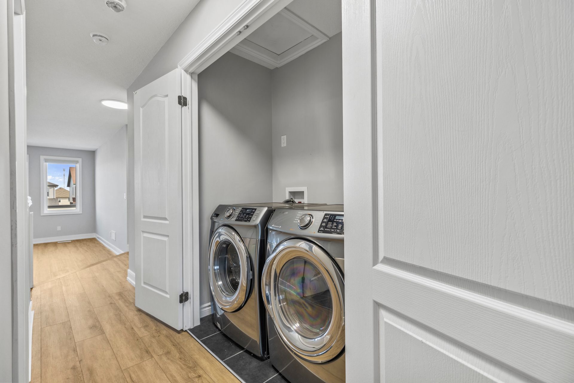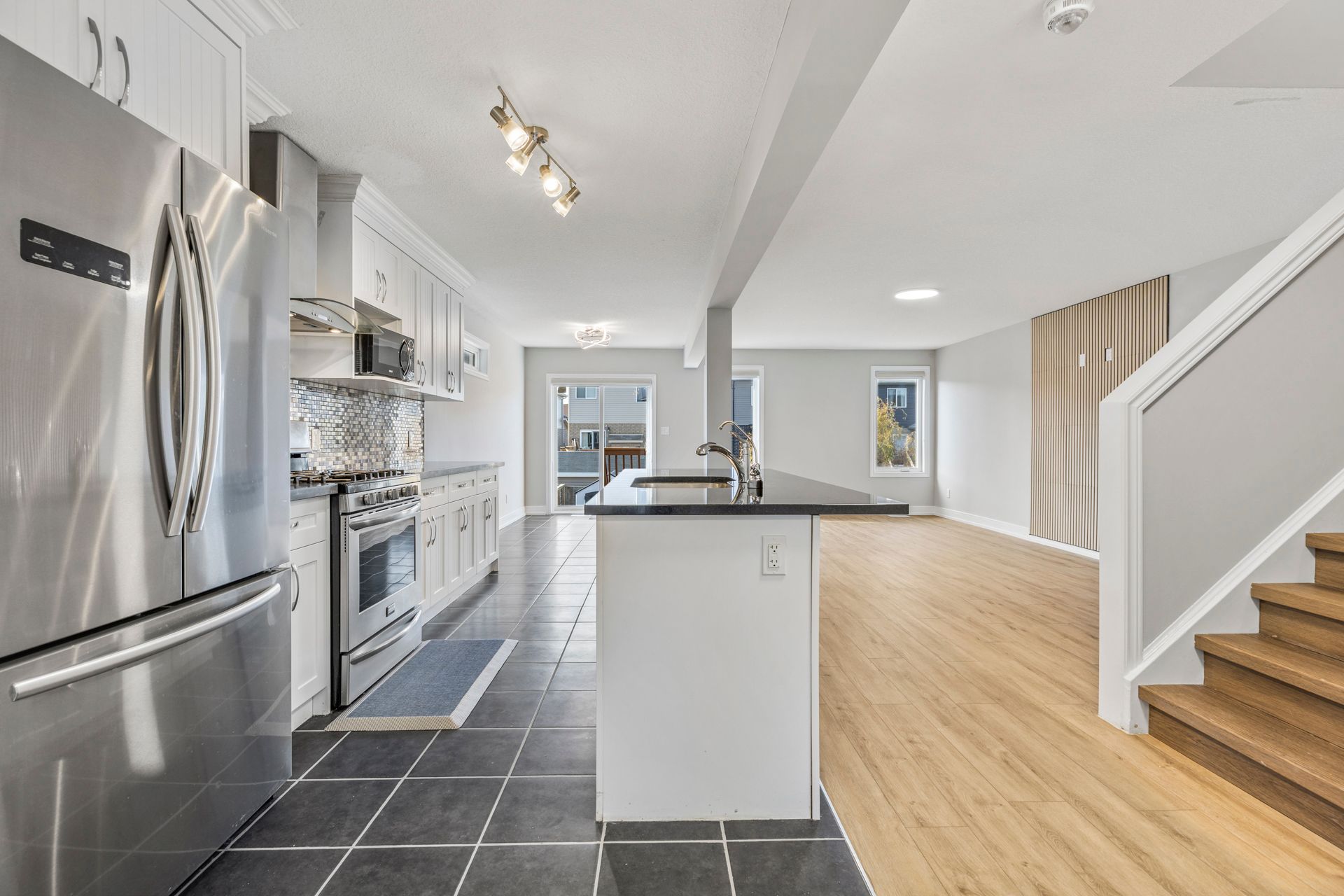 This immaculate 2-storey, 3-bedroom home includes a family room on the second level. It features a 1. 5 car garage. The open-concept main level kitchen offers a centre island and a pantry, with loads of cupboards and counter space. There is a second-floor laundry room. The home features vinyl flooring throughout, large windows, lots of storage space, and good-sized bedrooms. The master bedroom has a 4-piece ensuite and a walk-in closet. Patio doors lead to a large patio area, a big deck, and a huge backyard. Look out unfinished basement. The property is freshly painted and comes with lots of inclusions.