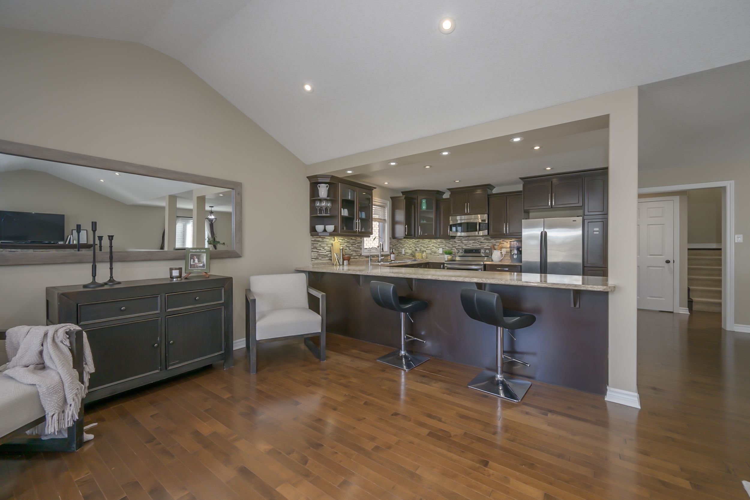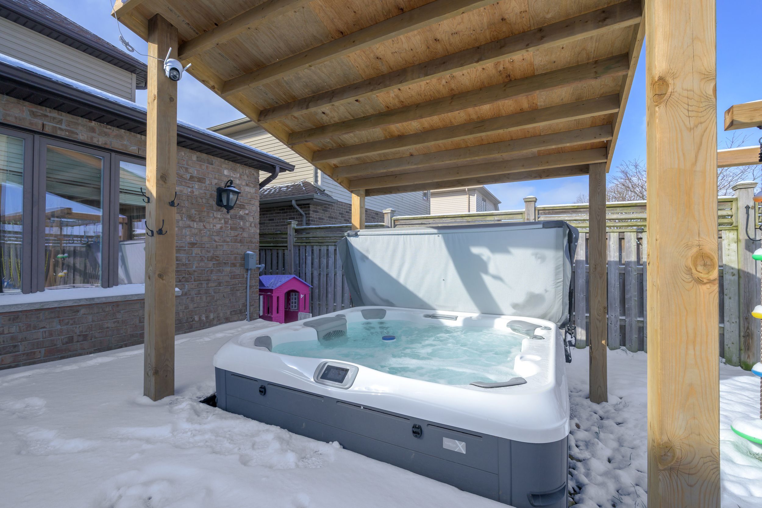 This beautifully designed 4-bedroom, 4-bathroom home offers the perfect blend of comfort, function, and space for growing families. Just 2 blocks away from stoney creek ps and walking distance to mother theresa ss and the ymca, living here makes life easier! From the moment you step inside, you'll appreciate the natural flow across three fully finished levels. The main floor has a bright and inviting open-concept living and dining space with a cozy fireplace and a secondary eating area that could also serve as an office or kids' zone. The wrap around kitchen offers ample cabinetry in addition to a large peninsula that doubles as an eating area, and has stainless steel appliances. The living space overlooks the backyard and flows out onto the deck. There is also a brand new hot tub with a covered gazebo so that you can relax and unwind after a busy day. The area behind the home is open space which provides even more privacy! On the 2nd level you'll find three spacious bedrooms, including a luxurious primary ensuite with a walk-in closet. The finished basement provides extra living space with a large family room centered around the gas fireplace, as well as an additional bedroom (with a large window) and full bathroom which makes it ideal for guests or a teen retreat. Further highlights include main-floor laundry, a double garage with inside entry. Located in sought-after stoney creek neighbourhood, this home checks all the boxes for comfort, space, and functionality. Nearby there is exciting commercial development, bringing a new grocery store and many other great businesses and shopping nearby. Don't miss your chance to make it yours!