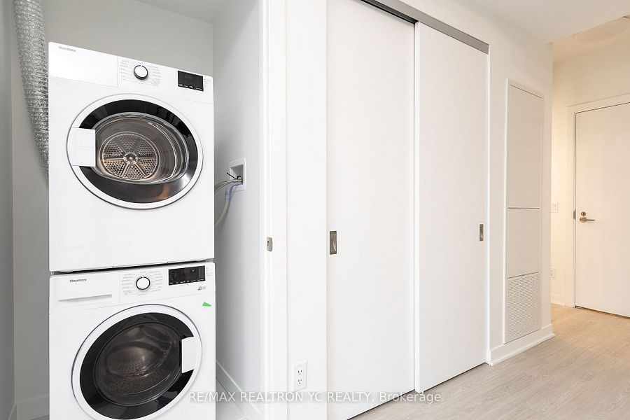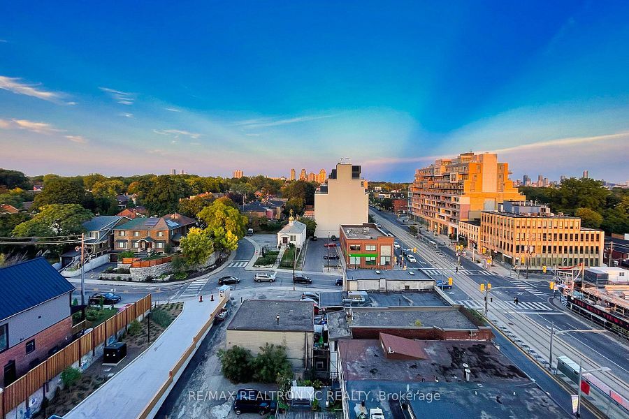 Welcome to the vibrant st. Clair west neighbourhood! This condo offers a practical and well-designed layout with unobstructed east-facing views. Featuring9-foot ceilings and laminate flooring throughout, the unit provides a bright and modern living space. The contemporary kitchen is equipped with built-in appliances, seamlessly flowing into a spacious living area with access to a large private balcony. The primary bedroom includes a private ensuite bathroom for added comfort and convenience. Ideally located with no frills, ttc streetcar access, and lcbo conveniently situated within the building. Move-in ready and perfect for urban living!