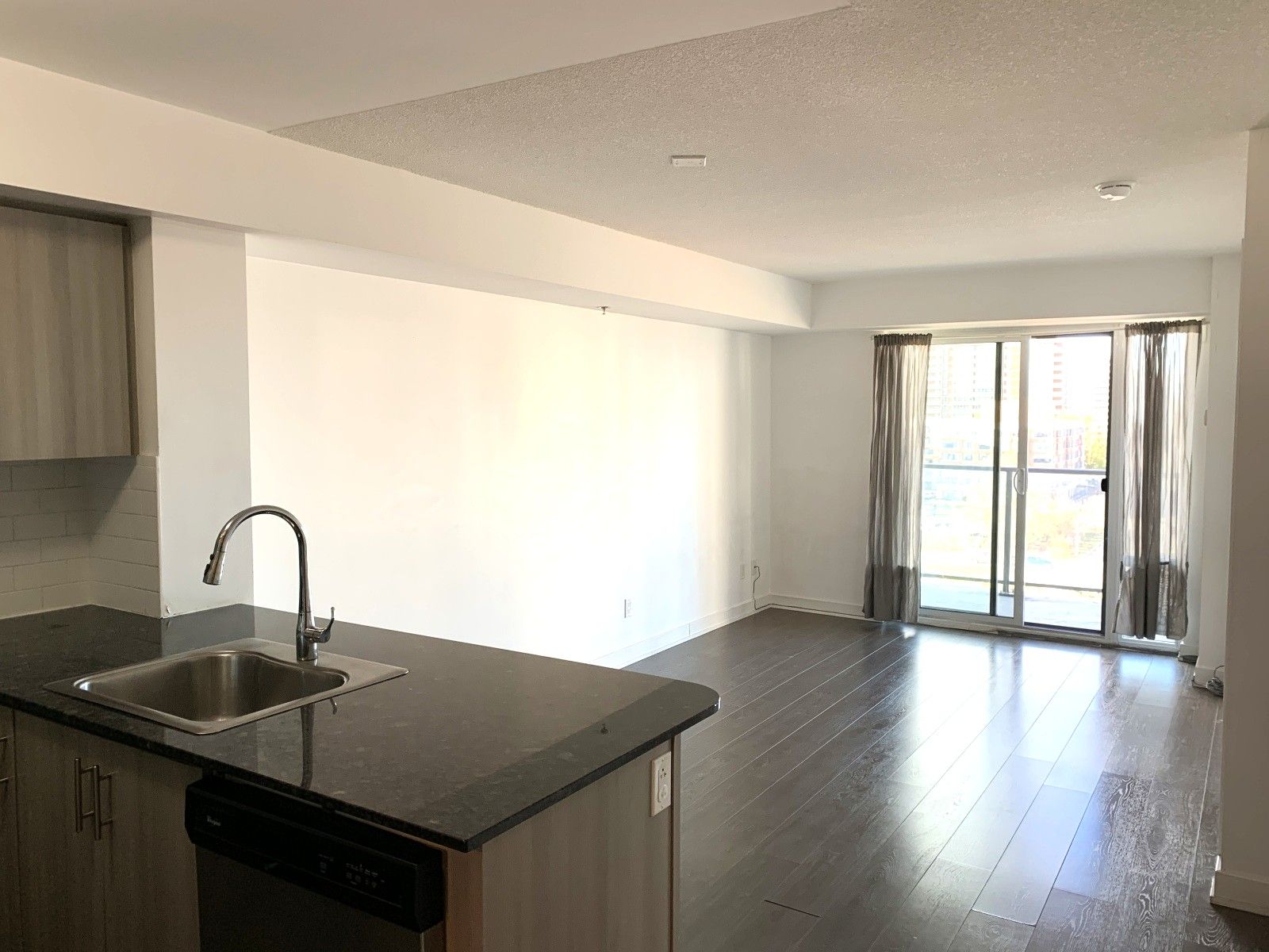 Excellent location! Luxury 1 bedroom + 1 den w/2 bath room. A very practical floor plan. Lots of natural light, laminate floor thru-out but bedroom. Modern kitchen w/granite counter top and s/s appliances. Conveniently located close to shopping: walmart, no frills supermarket etc. Library, schools, public transit. Minutes to hwy 401, 404, dvp & go station.